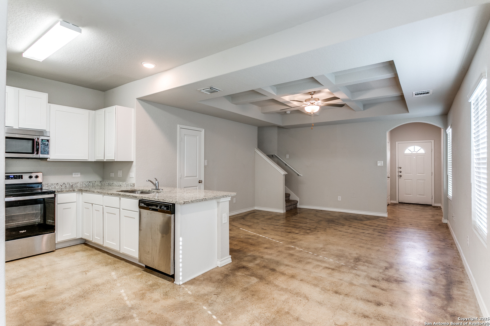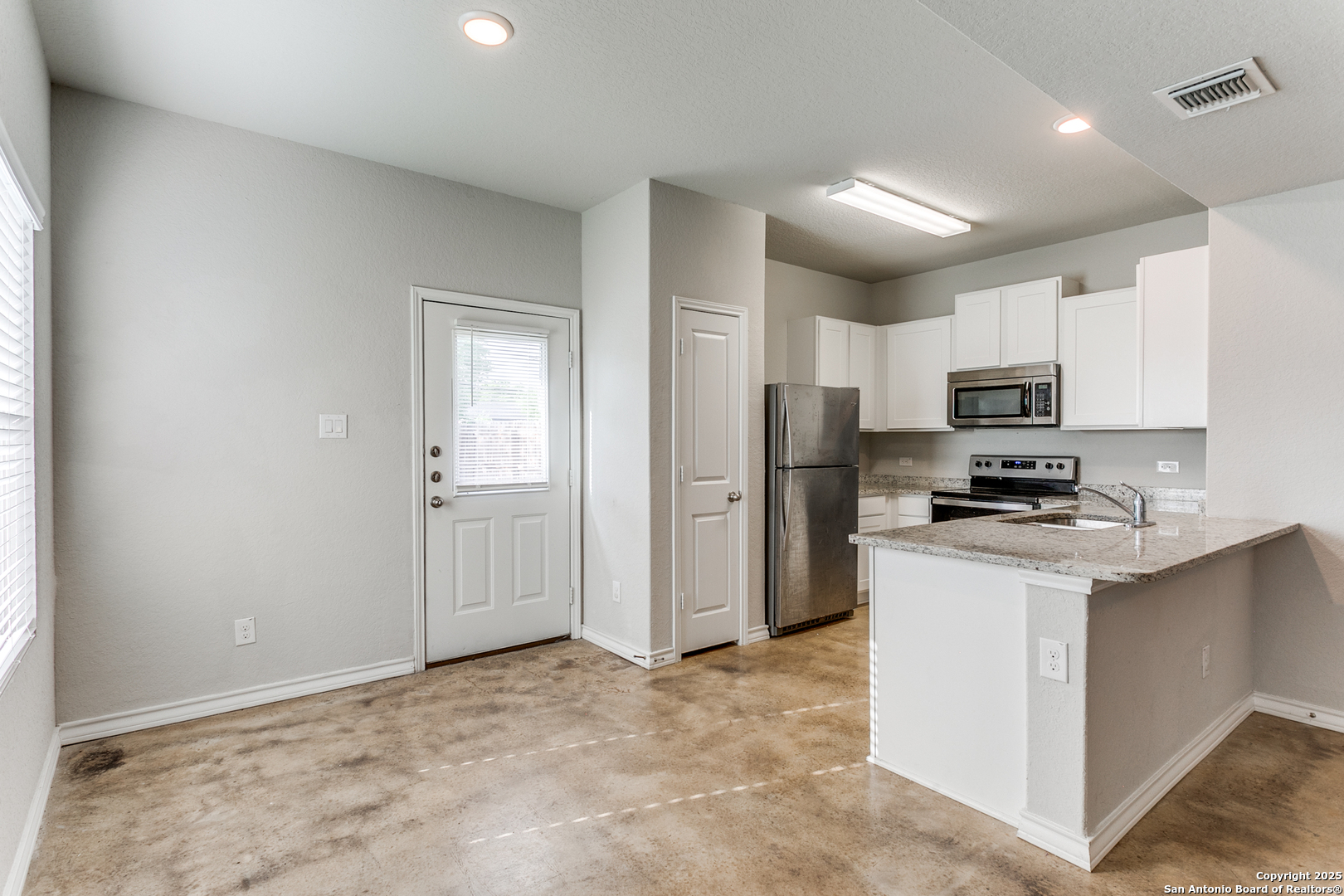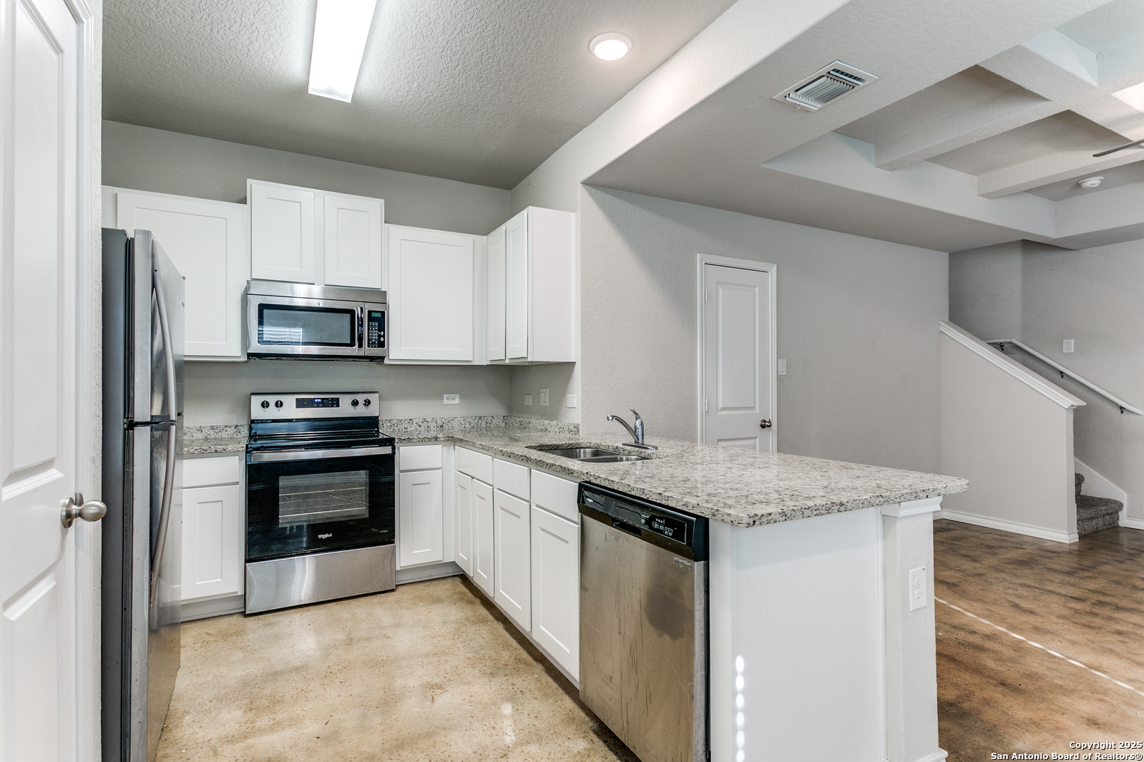 Awesome investment opportunity! Check out this amazing duplex in Northeast San Antonio- each unit has 3 bedrooms, 2.5 baths, a one-car garage, and a private fenced backyard. Downstairs, you'll find a welcoming entry that opens up to a spacious living area and a kitchen/dining combo with cool stained concrete floors and tall 9-foot ceilings. The kitchens come with stainless steel appliances, granite countertops, and stylish shaker cabinets. Upstairs, the master suites have their own bathrooms and walk-in clo