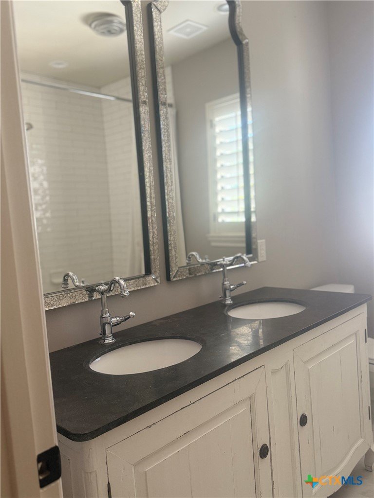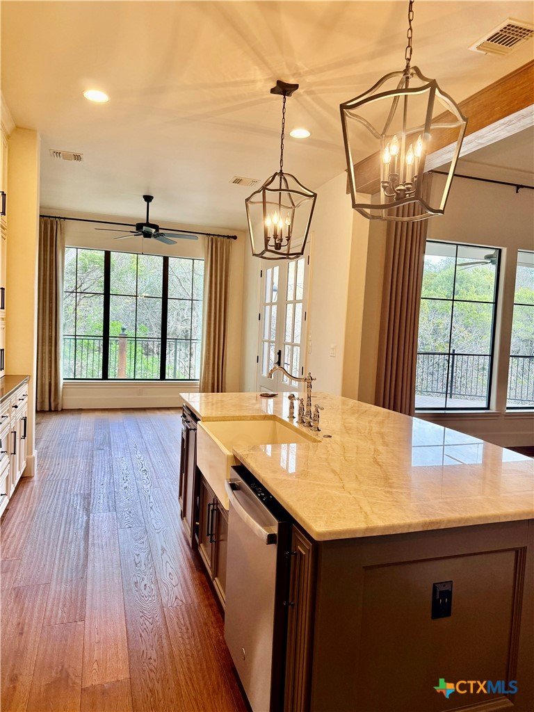 Luxury Lease on "THE HILL" and inside the loop. Traditional Hill Country home with a French flair, this home is Absolutley Stunning. Statement kitchen : Old Chicago Brick backsplash, Thermador Gas Range, Wine fridge, Built in Refrigerator, Abundance of Custom Cabinets. Bright Primary and Primary Bath w/separate vanities, Garden tub and large Separate Shower. Primary Closet is oversized with built in Dressers. 2 Living and Dining Areas. Lots of Storage. Plantation Shutters and Beautiful Hardwood flooring. Oversized Deck feels like you are in a "Tree House". On the exterior under the Home is a 750 ft room that would be a perfect shop or used for additional storage. Close to Landa Park, Downtown New Braunfels and easy access to Loop 337. NBISD