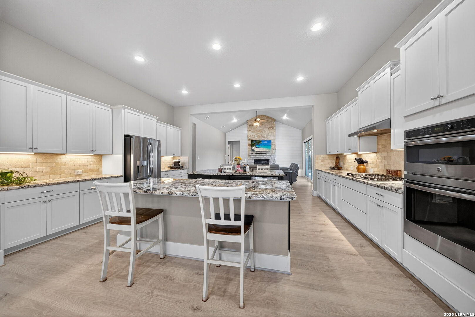Luxury Hill Country Living on 4.7 Acres with Private Pond & Well. New Flooring installed March 2026. Experience the best of Texas living in this stunning 4-bedroom, 4.5-bath custom home-all en suite bedrooms-in a serene, private setting. Built in 2017, this single-story masterpiece offers 3,229 square feet of thoughtfully designed space with an open floor plan, polished concrete floors throughout, and soaring ceilings that flood the home with natural light. The heart of the home features a spacious living area with a cozy fireplace and an entertainer's dream kitchen-complete with double oversized islands. The refrigerator conveys, and a pool table is also available, making move-in easy and fun. Step outside to enjoy the covered back patio with its own fireplace, perfect for relaxing evenings. Notably, this property includes the only active permitted water well in the neighborhood and an aerobic septic system-rare features that provide both value and self-sufficiency. Additional highlights: Oversized 2-car garage with 8 ft doors. One-owner home with meticulous care Spacious double lot with plenty of room for outdoor living and recreation. Don't miss this exceptional opportunity to own a slice of the Hill Country with modern comfort and piece of hill country land.
