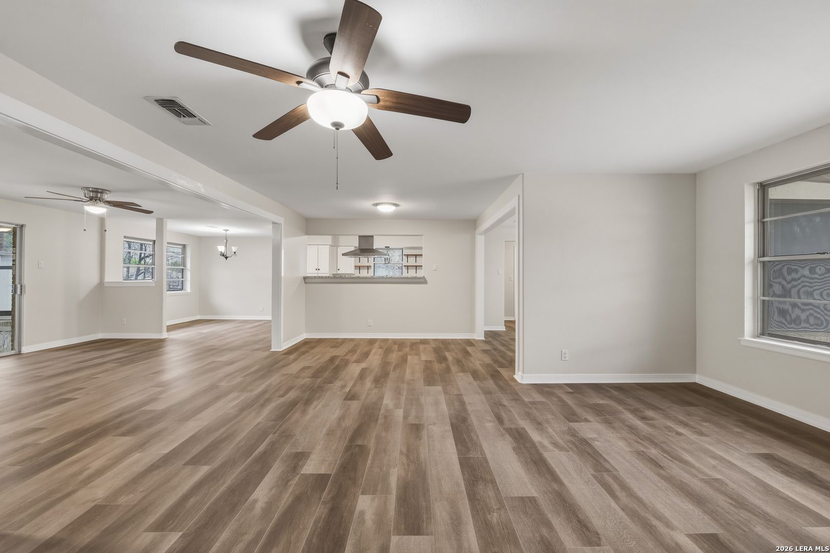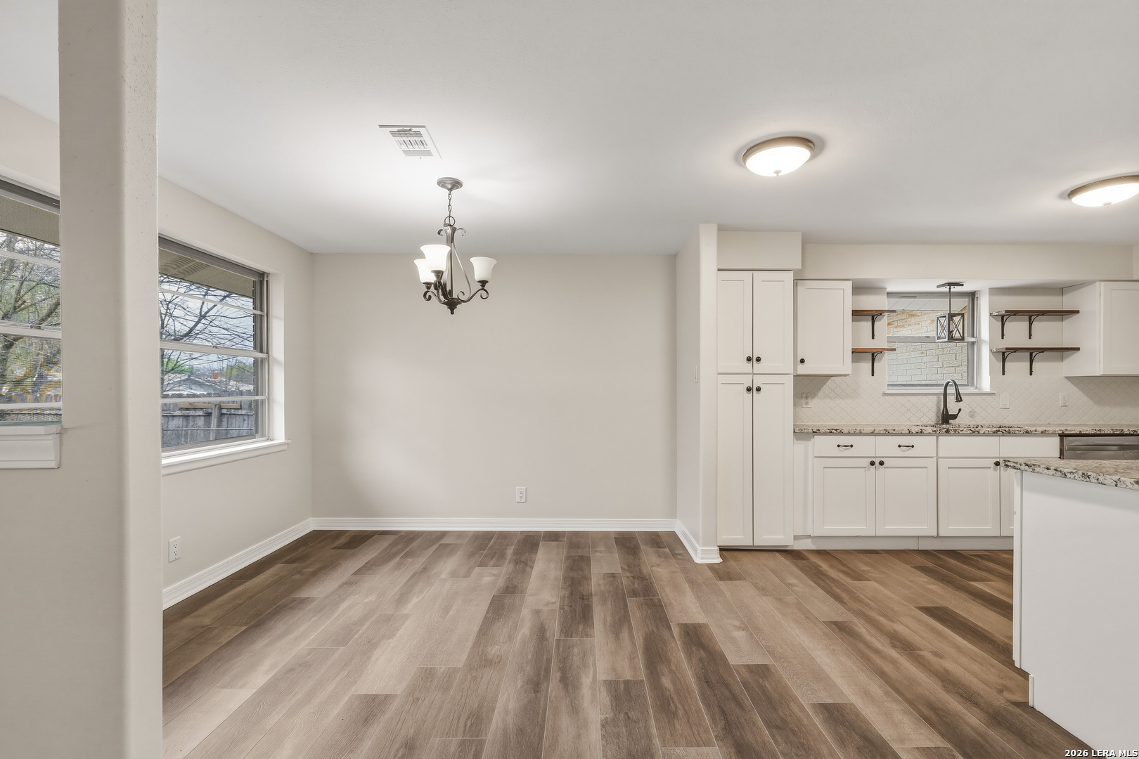 Experience the perfect blend of classic charm and contemporary upgrades in this stunning one-story Windcrest retreat. Situated on a quiet, tree-lined street, this 4-bedroom, 3-bath home features a fully remodeled chef's kitchen and stylish new luxury vinyl flooring throughout. Two distinct living areas offer plenty of space for relaxation, including a cozy fireplace for quiet evenings. An extra flex room for an office or storage as well. Outside, the property boasts a substantial workshop, a side-entry garage, and convenient alley access.