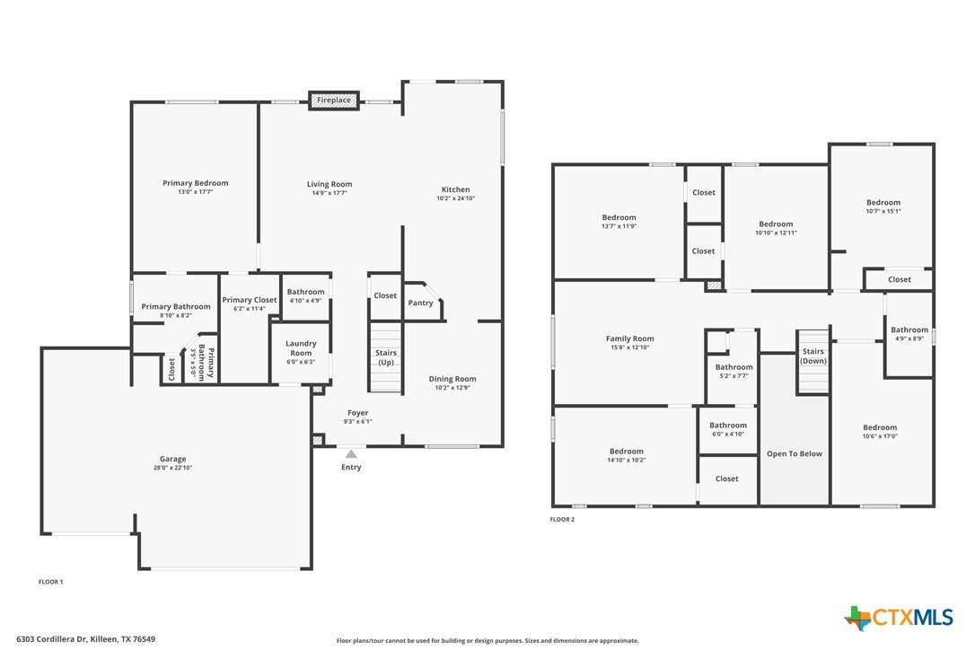 Spacious 5-Bedroom 3.5 Bath Home with Game Room – Over 2,800 Sq. Ft. in Killeen! Welcome to 6303 Cordillera, an impressive two-story home offering more than 2,800 sq. ft. of comfortable living space. This 5-bedroom, 3.5-bath property features a well-designed layout perfect for everyday living and entertaining. The first floor includes a generous living room with an electric fireplace, formal dining area and kictchenete, large kitchen with abundant cabinet and counter space, kitchenette, and convenient half bath. The primary suite is also located on the main level and features a walk-in closet, double vanity, and a shower/tub combo. A first-floor laundry room adds convenience. Upstairs, you’ll find four spacious secondary bedrooms, two full bathrooms, and a large game room offering flexible space for recreation or relaxation. This beautiful home combines space, comfort, and functionality—all in a great location near schools, shopping, and amenities. Schedule your showing today!
