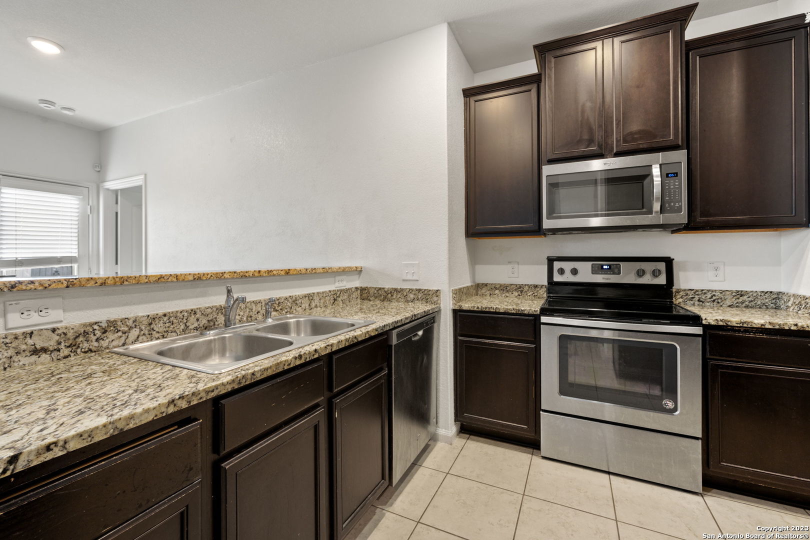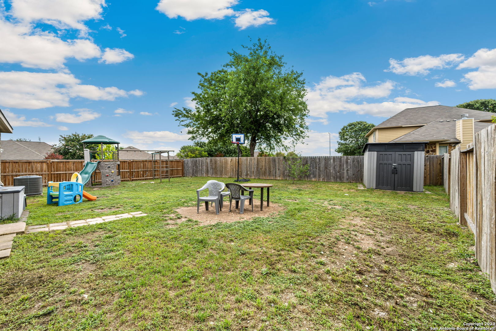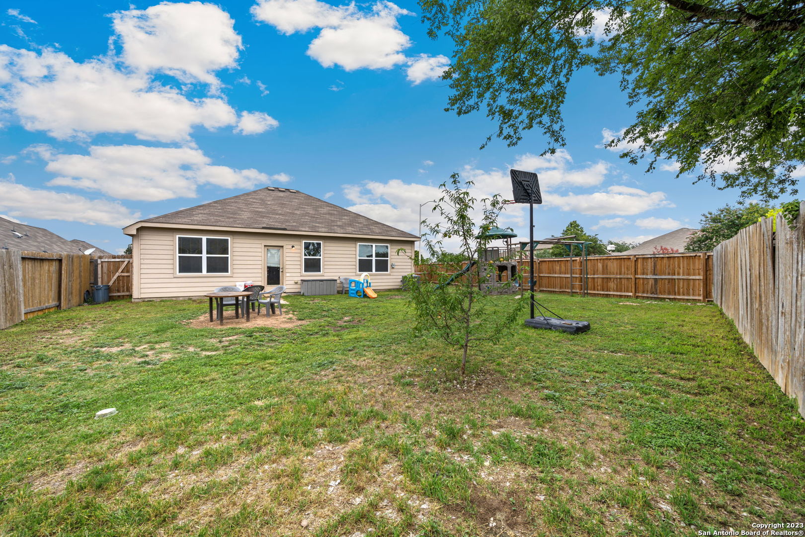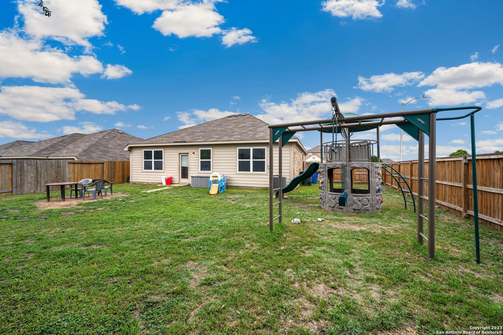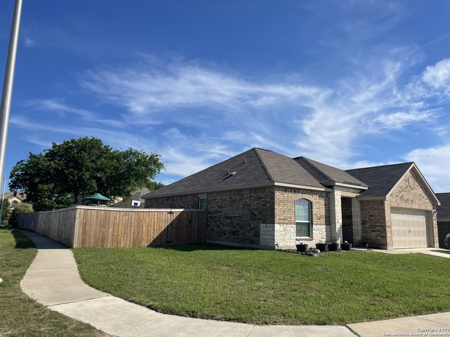 This lovely 3 bedroom 2 bath is ready for its next owner! This home is conveniently located in the established Magnolia Springs neighborhood right off I-35! This home is just minutes from the Outlets in San Marcos, Schlitterbahn and Landa Park, with easy access to Randolph AFB. Both the front and backyards have plenty of space to enjoy the outdoors due to the spacious corner lot. The inside features granite slab countertops, stainless steel appliances and a primary bedroom secluded from the secondary bedrooms. Playground in the backyard can be removed or conveyed. Schedule your showing today!
