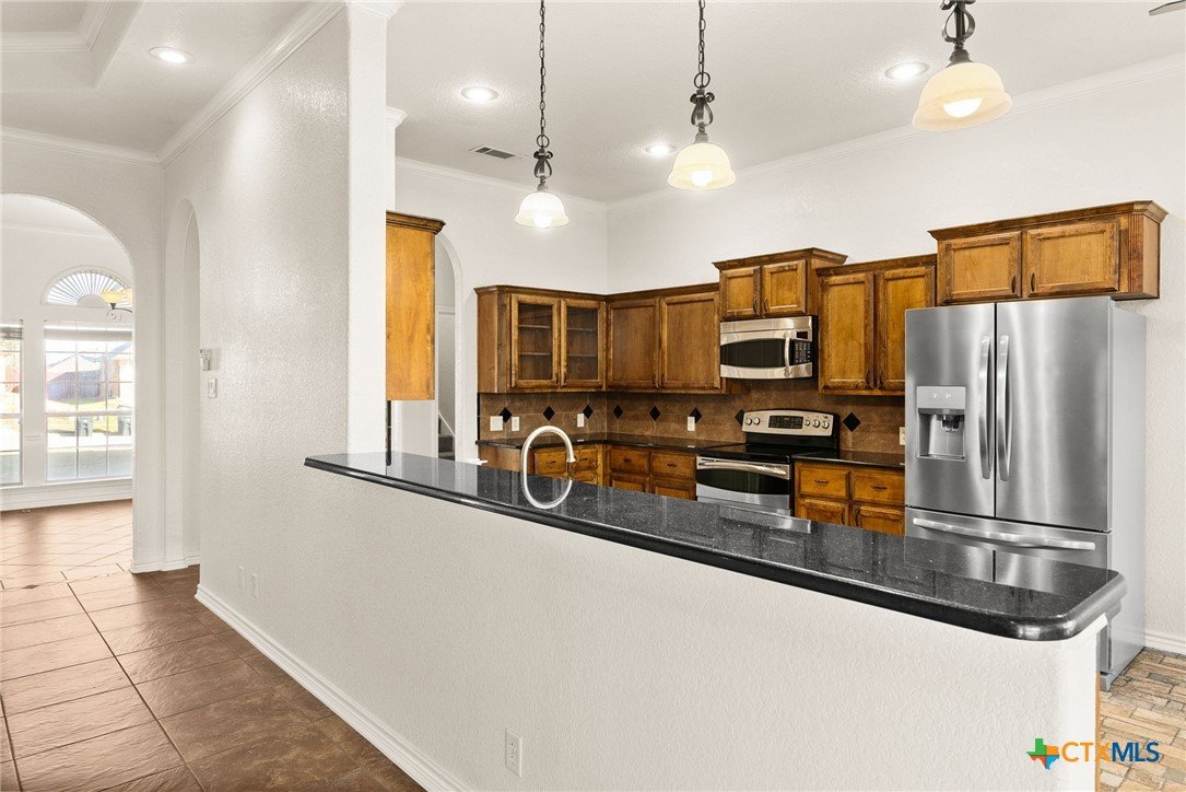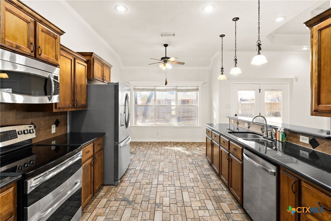 A BENTINA home at its Finest! This beautiful home sits on a large corner lot with a side loaded two car garage, providing ample outdoor space for entertainment and privacy. The house features four spacious bedrooms, with the possibility of converting the additional room above the garage into a fifth bedroom, perfect for growing families or guests. The floorplan also includes three and a half bathrooms, ensuring plenty of space and convenience for everyone in the household. Upon entering, you’ll notice the elegant formal dining room, ideal for hosting family dinners and special occasions. The living area was designed for both comfort and functionality. Do not need a fifth bedroom... feel free to turn it into a game room. Whatever the room may be, it includes a full-size bathroom. YEP, you heard it here first! Whether you're playing games, watching movies, or hosting friends, this room provides the perfect space for fun, relaxation, or leisure. The home boasts a modern aesthetic with new interior paint, creating a fresh and updated look. A newly installed roof ensuring a peace of mind for years to come. New carpet to add warmth and comfort throughout the living spaces, while the many windows flood the rooms with natural light. The large master suite includes a wood burning fireplace, double vanity, separate shower, a deep soak spa like tub, and two walk-in closets. The home's exterior features four-sided brick construction, offering durability, low maintenance, and a timeless look with beautiful trees in the backyard. The expansive corner lot provides endless opportunities for outdoor activities, gardening, or even future expansion if desired. This house is ready to move in, with a clean, modern feel and all the upgrades necessary to make it a perfect family home. If you miss out, blame yourself! Do yourself a favor, add this home to your list, and take the opportunity to witness this masterpiece of a home for yourself!