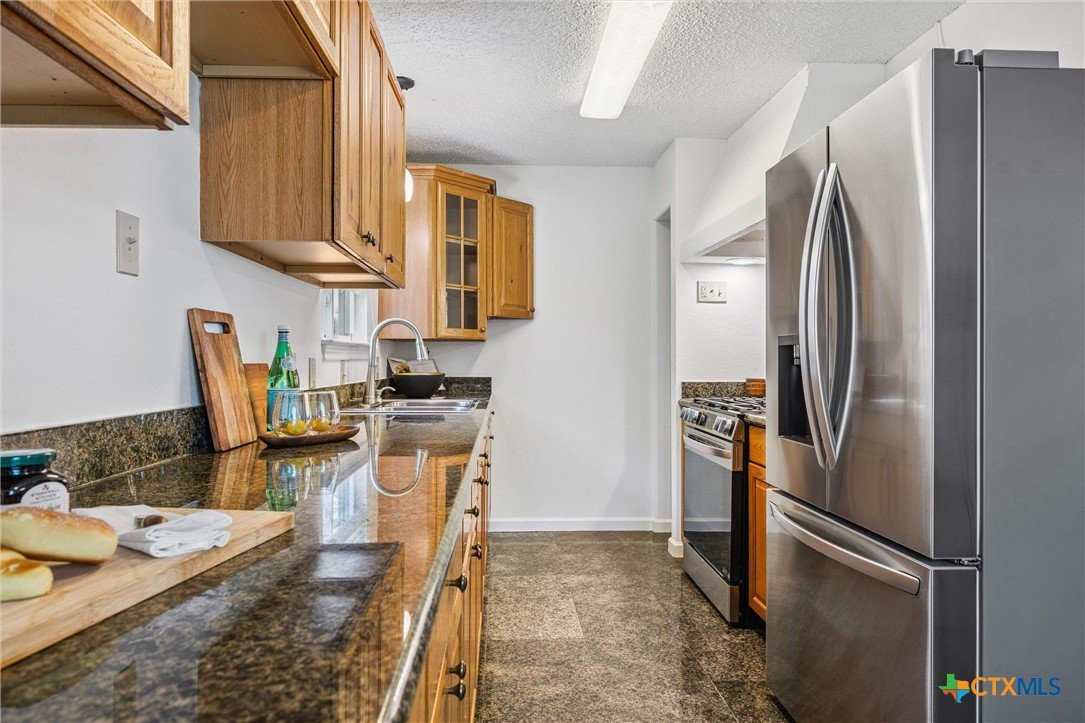 Price adjusted to match current market conditions! Welcome to this updated 2-bedroom, 2-bath gem located in a peaceful South Austin neighborhood, just minutes from all the action—Downtown Austin, Lady Bird Lake, McKinney Falls State Park and iconic South Congress. One mile to public transit! Step inside to find granite floors throughout (no carpet!), fresh interior paint, and a brand-new HVAC system. The kitchen is well-equipped with granite countertops, a Bosch dishwasher, and brand-new gas stove and refrigerator—all included. Both bathrooms feature modern updates and stylish finishes. The converted garage adds valuable flexibility—use it as a third bedroom, home office, or creative space. Out back, French doors lead to a covered patio and a private yard with a handy storage shed. The roof was replaced in 2017, adding peace of mind. Located less than 1.5 miles from the Central Williamson Creek Greenway! Enjoy local favorites just around the corner like Ovenbird Coffee, LeRoy and Lewis BBQ and DK Sushi. Whether you're commuting, dining out, or enjoying the outdoors, this location makes it easy! Don’t miss your chance to own a move-in-ready home in the heart of 78745—schedule your showing today!