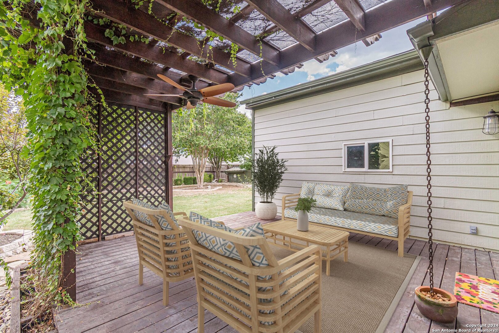 Welcome to your dream home! This exquisite 3-bedroom, 2.5-bathroom residence boasts custom features throughout, blending luxury, functionality and convenience. Step inside and be greeted by an open floor-plan that seamlessly connects the living, dining, and kitchen areas, perfect for modern living and entertaining. The upgraded bathrooms are truly magazine-worthy, featuring high-end finishes and stylish design.Pet lovers will adore the custom-built doggy paradise, complete with a cozy dog room under the stairs-your furry friend's own haven. For the DIY enthusiast, the attached garage includes a spacious woodworking shop with convenient access to the backyard. The magic continues outside, where you'll find a secret garden ambiance with mature landscaping creating a tranquil retreat. The aesthetic dog run is a delightful addition, offering plenty of space for your pets to run and play in a beautifully designed setting. This home is a rare gem, offering a blend of custom luxury and thoughtful design, perfect for those seeking a unique and charming abode. Located within easy access to I-35, Creekside & all the luxuries of NBTX living. Last but certainly not least, the neighborhood is located right next door to 131 acres of parkland that is currently being developed into New Braunfels' newest park space & trails. Invest today & don't miss the chance to make this enchanting property your own!