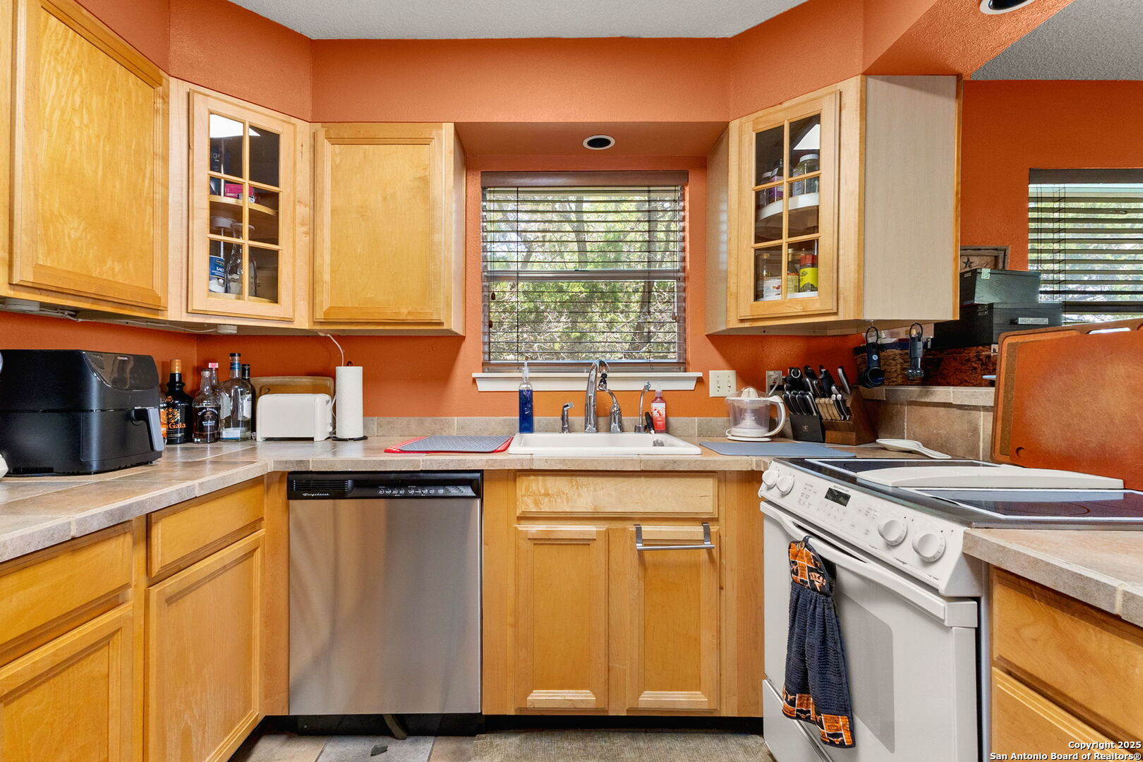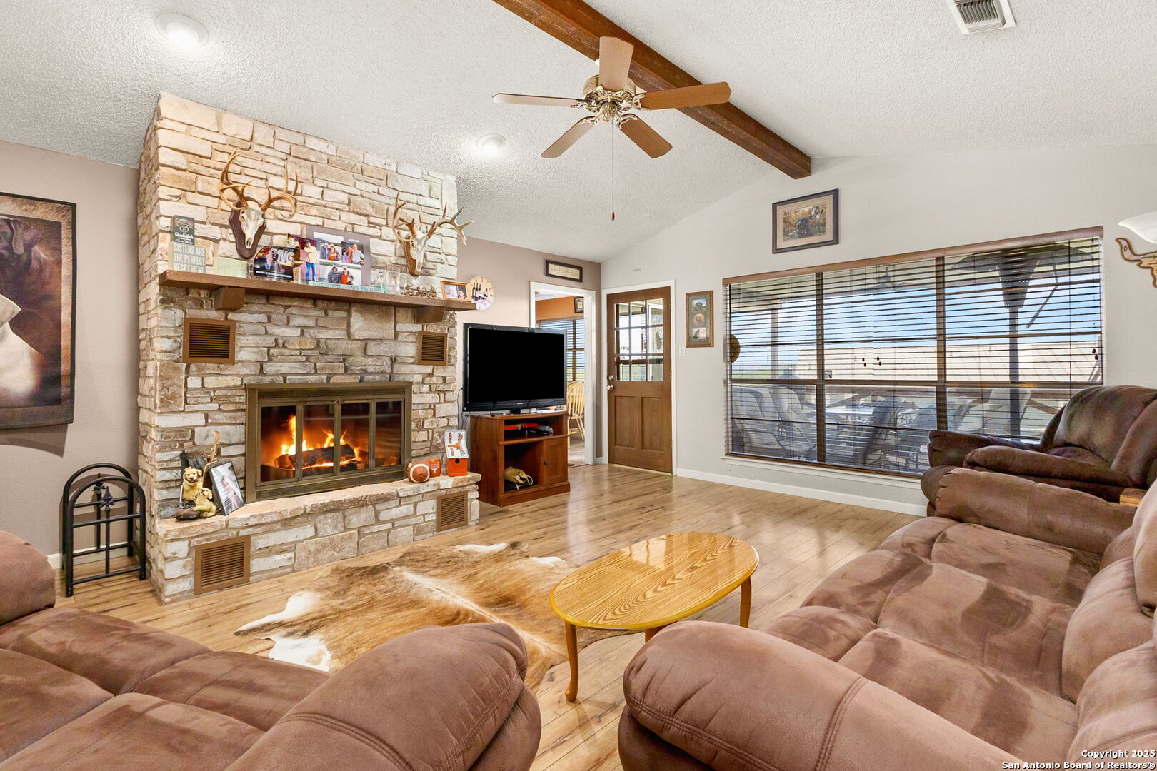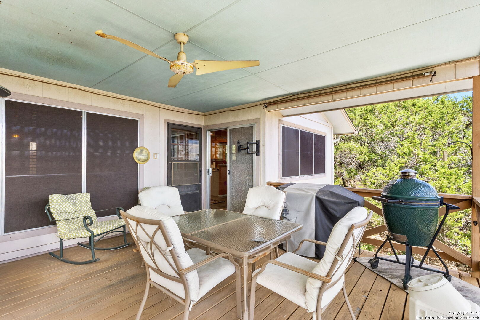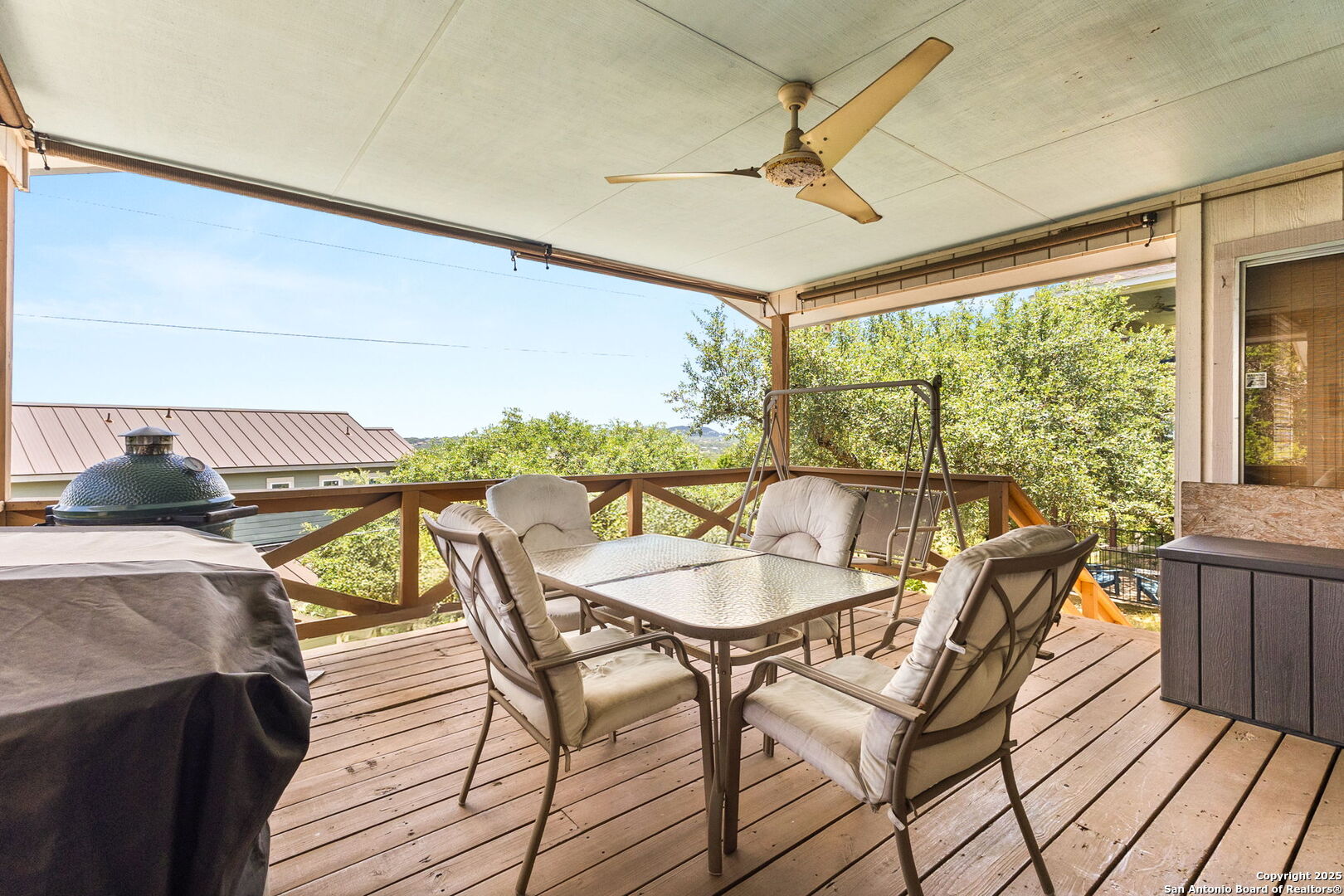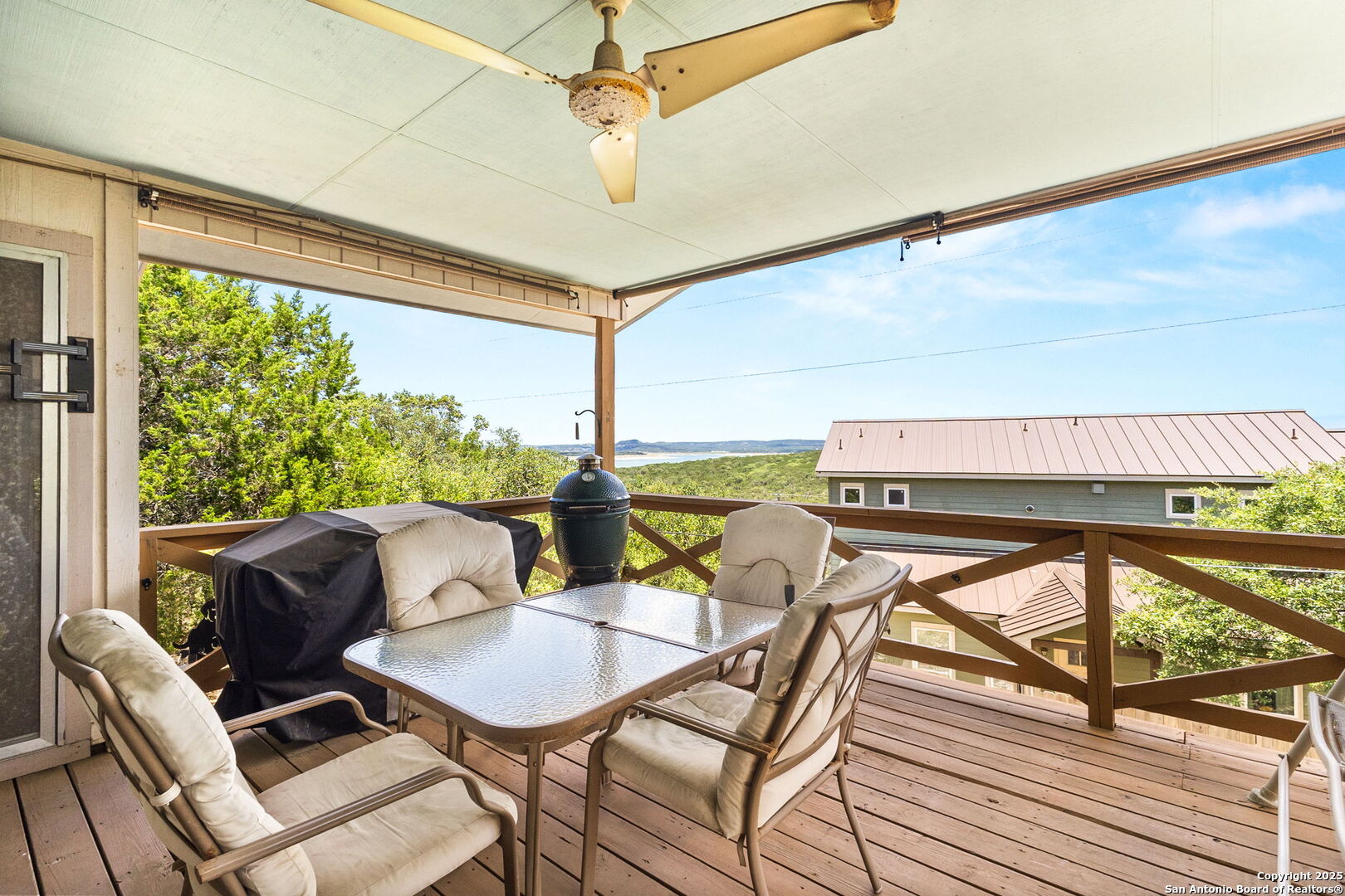 Tucked into the trees with sweeping views of Canyon Lake, this charming hill country home feels like a vacation retreat. The FULLY FURNISHED home blends character with peaceful natural beauty. Inside, the open floor plan is warm and inviting, anchored by a striking wood-burning rock fireplace that creates a cozy focal point. With three bedrooms and two full bathrooms, the home offers plenty of space and potential for updates to make it your own. The primary suite features incredible lake views and opens up to a private balcony-perfect for sipping wine as the sun sets over the water. Located in the sought-after Canyon Lake Forest subdivision, residents enjoy access to a community pool, clubhouse, and a playground-all just minutes from local dining, shopping, and grocery stores.