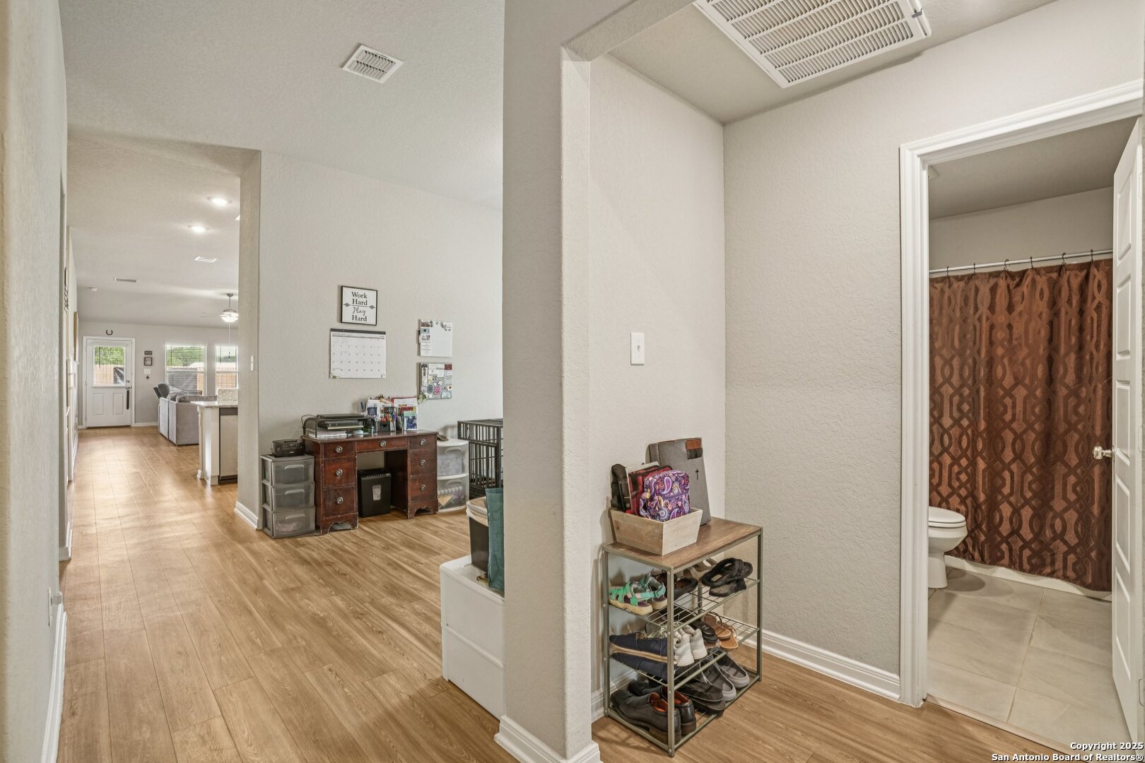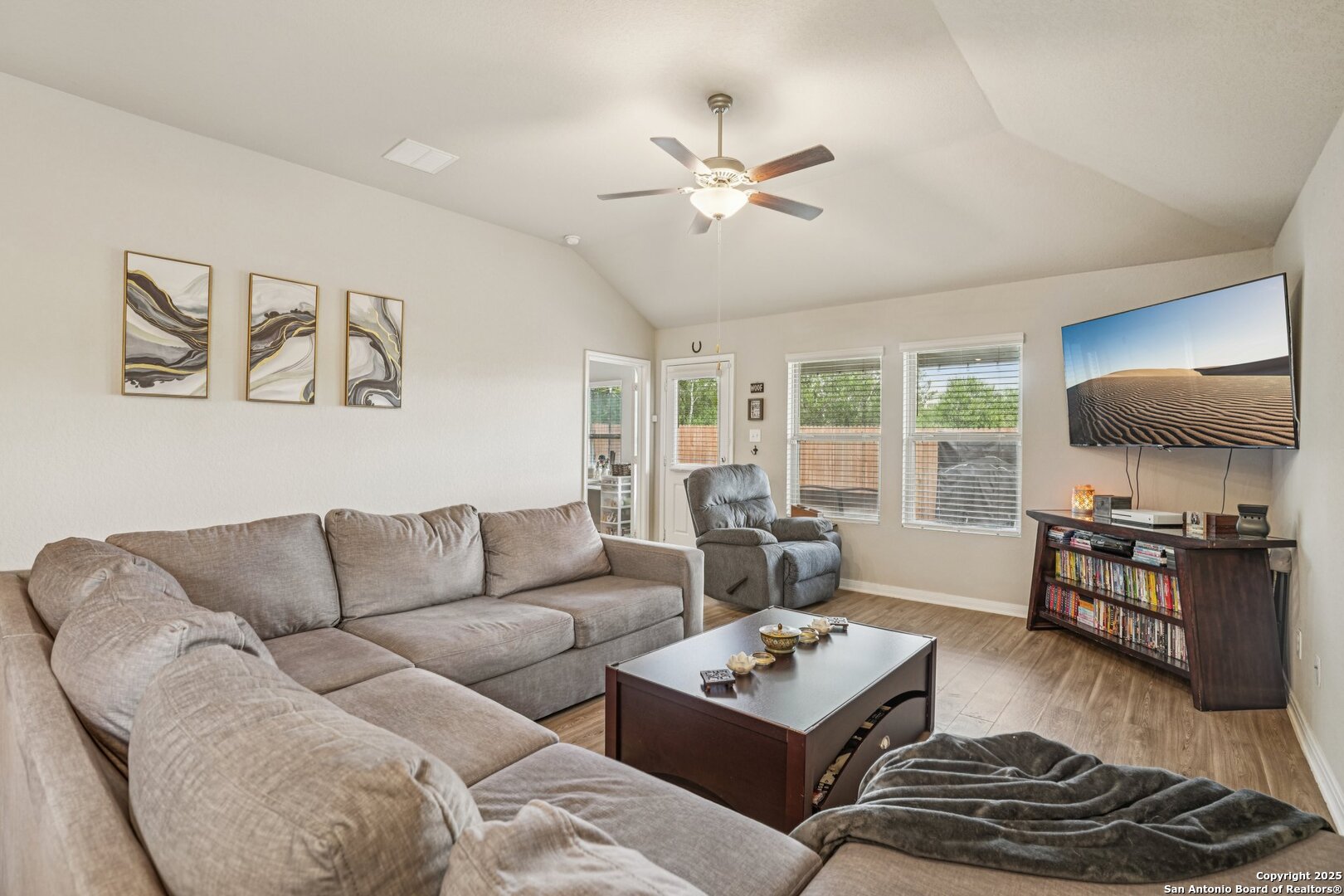 ASSUMABLE VA LOAN on this improved price! Take a look at the LARGEST single story floor plan in this neighborhood. Four bedrooms, 3 full bathrooms, plus an office/study AND additional separate family room. All on the first floor! No carpet to be found, talk about low maintenance! The kitchen and living areas offer a wide open concept perfect to entertain or just enjoy the entire space as a family without obstruction. The generously sized primary suite and bathroom remain split from all other bedrooms and bathrooms for ultimate privacy, peace, and quiet if you've got kiddos or guests. If the backyard is your escape, you've got a covered porch and a green space directly behind you. Enjoy the wide open skies of beautiful Seguin. Set your tour today!