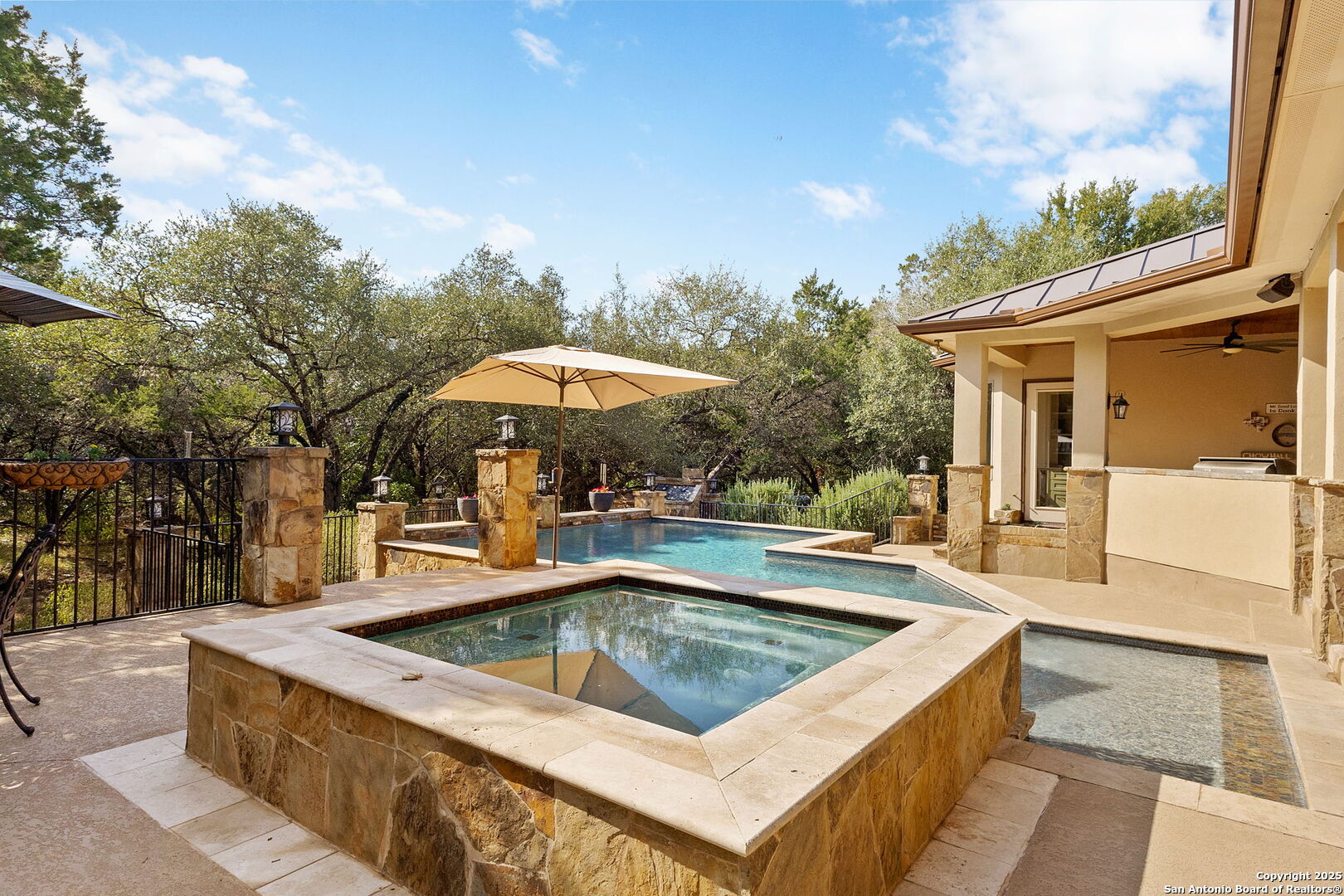 STUNNING LUXURY HOME IN THE PRESTIGIOUS GATED COMMUNITY OF RIVERFOREST! Welcome to your dream home! Just 2 miles to Gruene, a one hour kayak trip or 3 hour float to live music and ice cold margaritas. This exquisite property offers 5 spacious bedrooms and 6 luxurious bathrooms (two are en-suites) for ultimate comfort and privacy. The gourmet kitchen is a chef's paradise, featuring premium appliances, 2 dishwashers and ample space for culinary creativity. Relax and unwind in the luxury pool, all set on 2 acres of beautiful hill country landscape. Enjoy outdoor entertaining with a fully equipped kitchen featuring and outdoor grill, sink, small refrigerator and separate smoker near your outdoor fireplace, perfect for cozy evenings. Additional features include a 3-car garage, PRIVATE ACCESS TO THE GUADALUPE RIVER, and a charming stone fireplace in the living area. Located in a sought after gated community, this home combines privacy, luxury, and comfort in one perfect package.