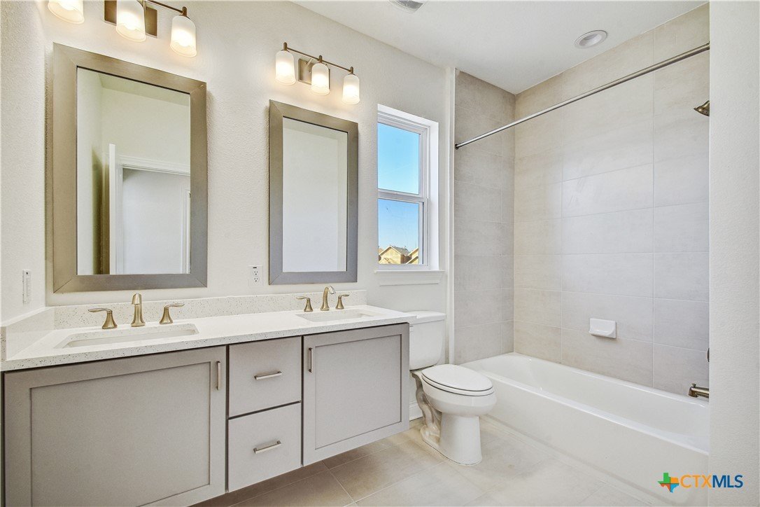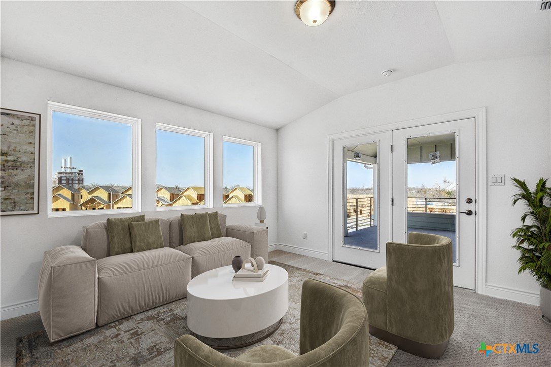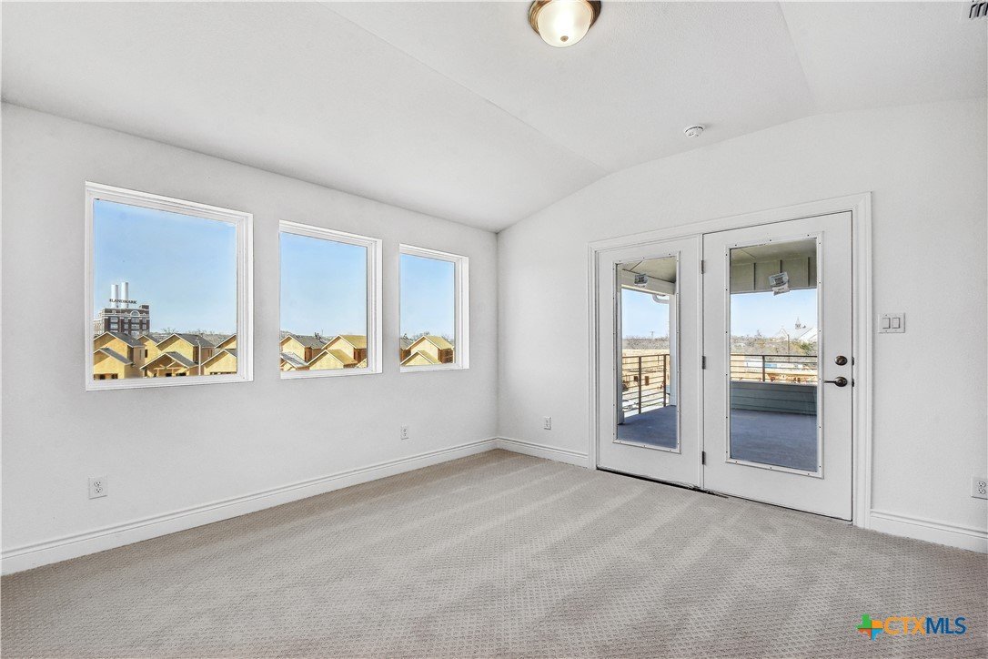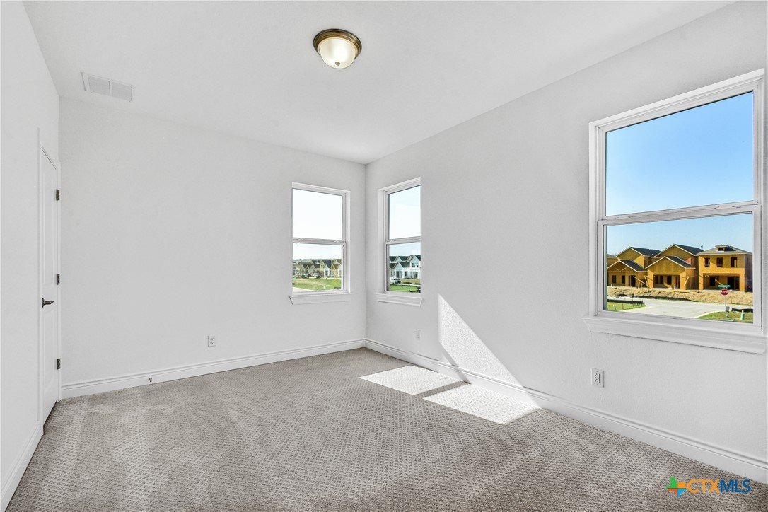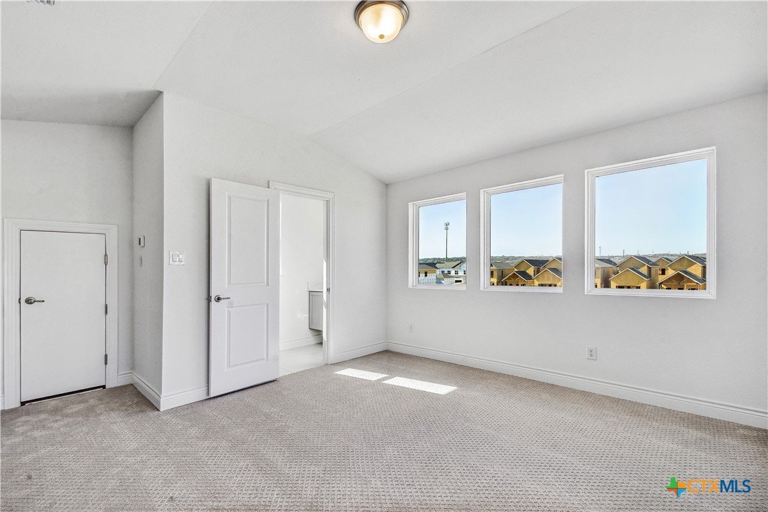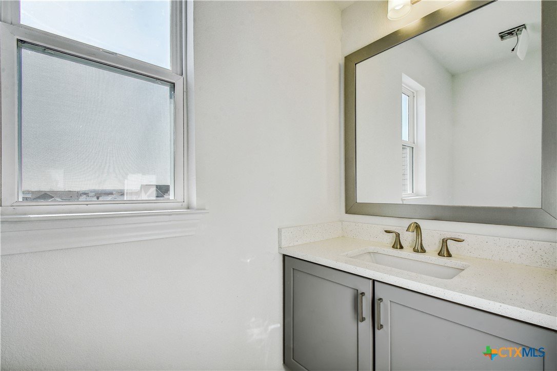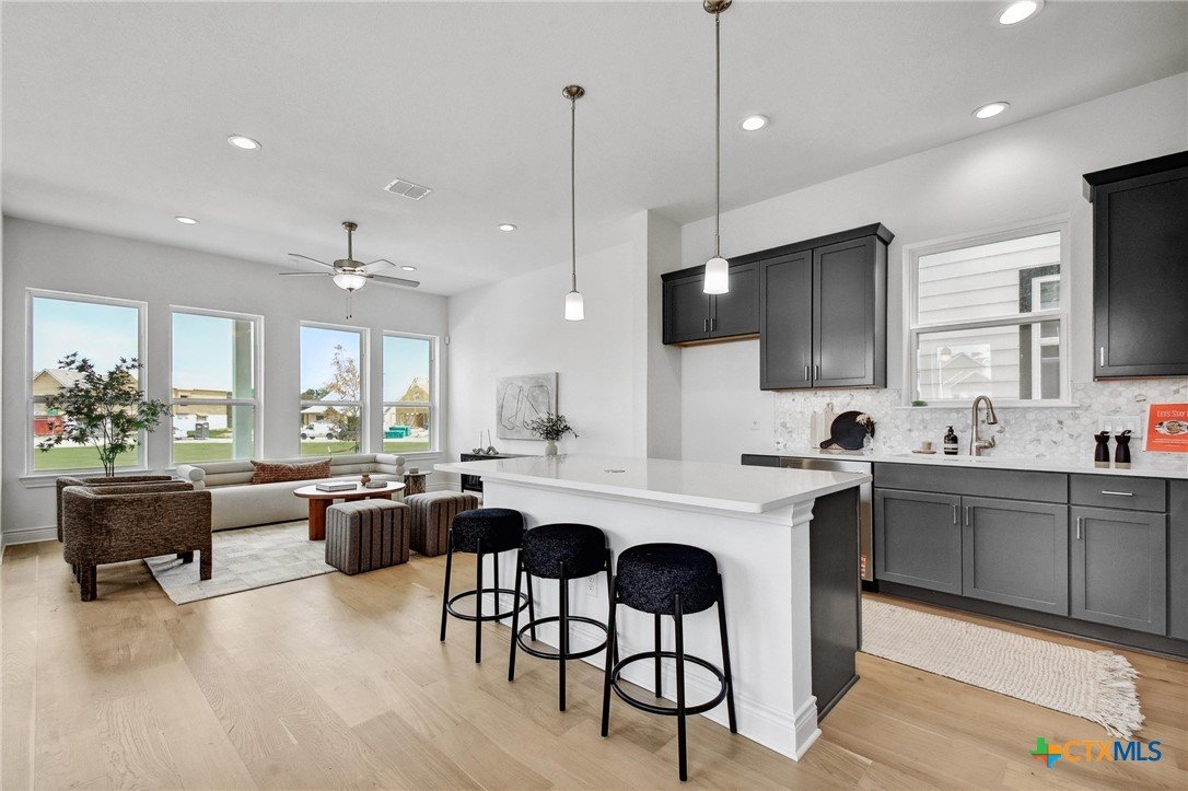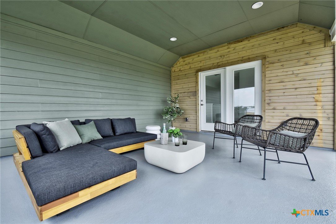 *THE ENTERTAINER'S DREAM HOME * DOWNTOWN NEW BRAUNFELS VIEWS * Swing on by and take a look at this 3-story stunner from Wes Peoples' Homes! Park and City views from the master bedroom balcony and third level living area with outdoor living space in the sought after Town Creek subdivision! Set beneath the bell tower and walking distance to shops and restaurants, Town Creek has become the hottest neighborhood in New Braunfels, TX with close proximity to everything! The well-appointed 3 bedroom, 2 full-bath, and 2 half-bath home boasts soaring ceilings and stunning wood floors throughout the spacious downstairs. At the heart of the home and open to the palatial and over-sized dining and living space is the chef's kitchen with gas cooking, built-in microwave and oven, and quartz center island with convenient counter bar seating for all your entertaining needs. Custom dark grey shaker cabinets and designer backsplash complete the luxurious yet simple design. The half-bath with quartz counters, under-cabinet lighting, and decorator tile is just off of the kitchen near the two-car garage for ease of use. At the top of the wood staircase are two secondary bedrooms with shared bath styled with quartz countertops and floating cabinets, as well as an over-sized laundry room with built-in custom cabinets and washing sink. The HUGE primary suite is a sanctuary-like space with a view from the covered balcony of the old Comal Water Plant stacks and Panther Canyon that line the nearby Comal River. Escape to the en-suite spa bathroom with large mud-set glass surround shower, double vanities with quartz counters, and HUGE walk-in closet, Luxury in Living at its Best! From the third level living/office space with spacious covered outdoor living area you feel as though you are watching the world quietly from your own private perch with the vibrant goings on in the Town Creek subdivision. Come on by and take a look before this beacon of urban lifestyle is gone!