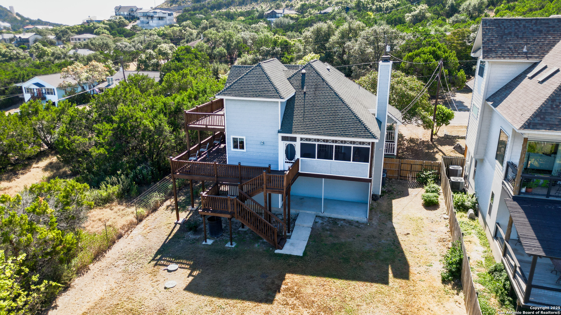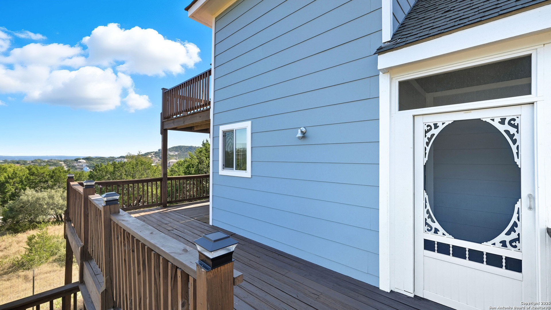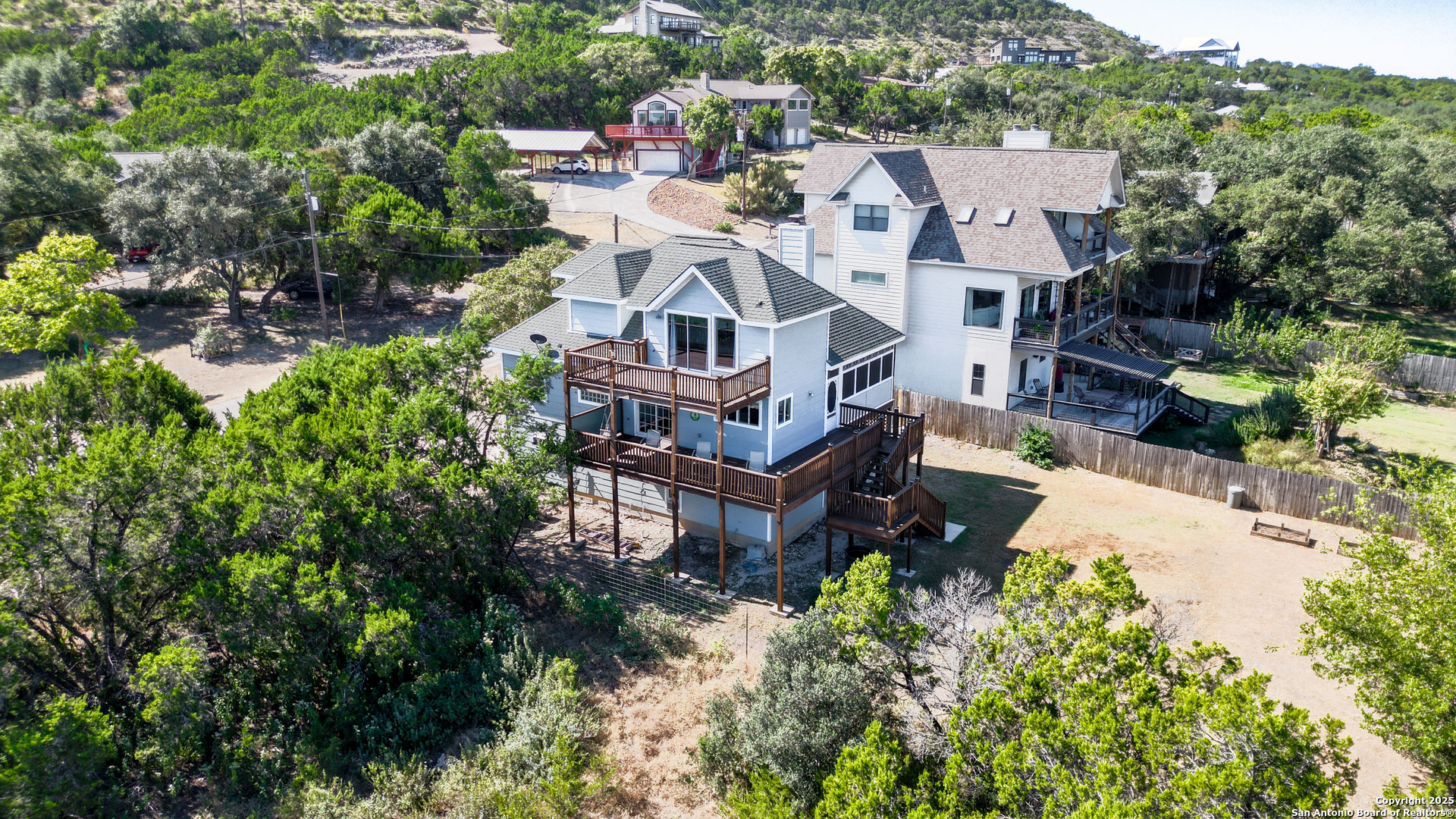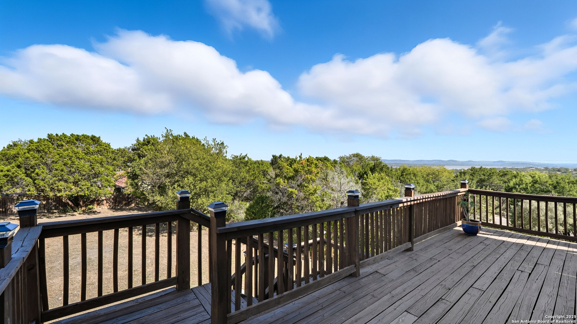 Located in the desirable Village West subdivision! Enjoy breathtaking views of Canyon Lake and the surrounding hills from this beautifully maintained custom home on a spacious .63 acre corner lot. Featuring multiple outdoor spaces; three decks, a screened-in porch, covered patio, and wraparound deck. This home is designed for relaxation and entertaining while taking in the lake's natural beauty. Inside, you'll find a large kitchen that is open to the dining area. The kitchen features granite countertops, custom cabinetry, stainless steel appliances and a breakfast bar. The vaulted ceilings in the living room create an open, airy feel, complemented by a cozy wood burning fireplace for cooler evenings. The primary suite is located upstairs, complete with a private deck and walk-in closet, while additional bedrooms on the lower levels provide plenty of space for family and guests. Other highlights include custom lighting and ceiling fans throughout, wonderful storage across all levels, oversized two-car garage with workshop area, level, fenced yard perfect for pets or outdoor fun. This property offers the perfect blend of comfort, craftsmanship, and unforgettable water views all in the heart of Canyon Lake. Only a 5 minute walk to the private waterfront access and a short drive to boat ramp 2. Short Term Rentals allowed!! ***Preferred Lender offering rate buydown at lenders cost.***
