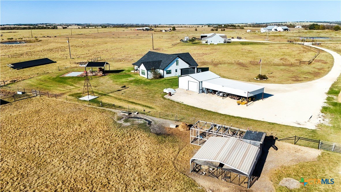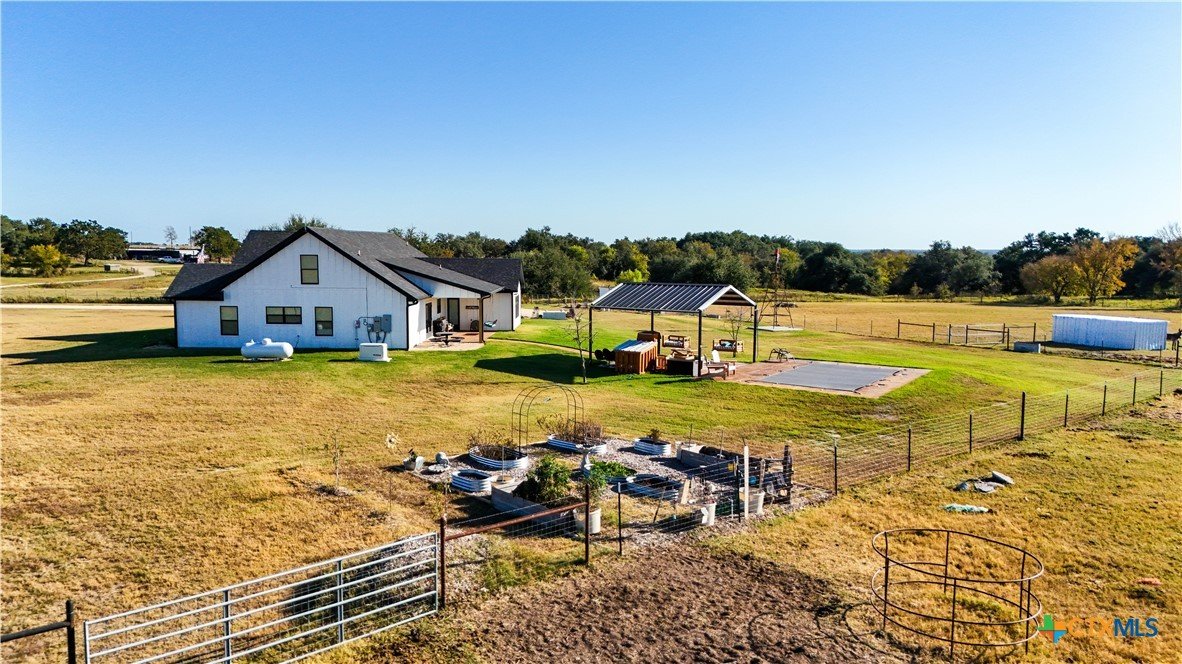 Escape the city and embrace the country lifestyle in this stunning craftsman-style home situated on just over 10 acres of AG exempt property. Located just 20 minutes from Temple, you get the perfect blend of tranquility and convenience, all within the highly-regarded Rogers ISD. This beautiful home offers 2,158 sq/ft of thoughtfully designed living space, featuring 3 spacious bedrooms and 2 full bathrooms and a gorgeous electric fireplace in the living room. Prepare to entertain in the stunning gourmet kitchen, equipped with high-end finishes, appliances and walk-in pantry, perfect for the home chef. Spend endless summer days by the sparkling in-ground pool. The adjacent cabana is an entertainer's delight, complete with a cozy fireplace for year-round enjoyment. Serious hobbyists will appreciate the huge 25x25 workshop. Parking is a breeze with a covered 4-vehicle carport. Enjoy peace of mind with a Generac home generator backup system, a fully paid-for solar panel system for energy efficiency, and a robust EF1 Tornado shelter rated for 12 people. The 10 acres are cross-fenced with two separate pastures, ready for your animals and you can certainly cast a line in your own stock tank, fully stocked with bass and catfish! Plus, there is a dedicated chicken coop for fresh eggs every morning and an established garden for your favorite vegetables. Located just 20 minutes from Temple, you get the perfect blend of tranquility and convenience, all within the highly-regarded Rogers ISD.