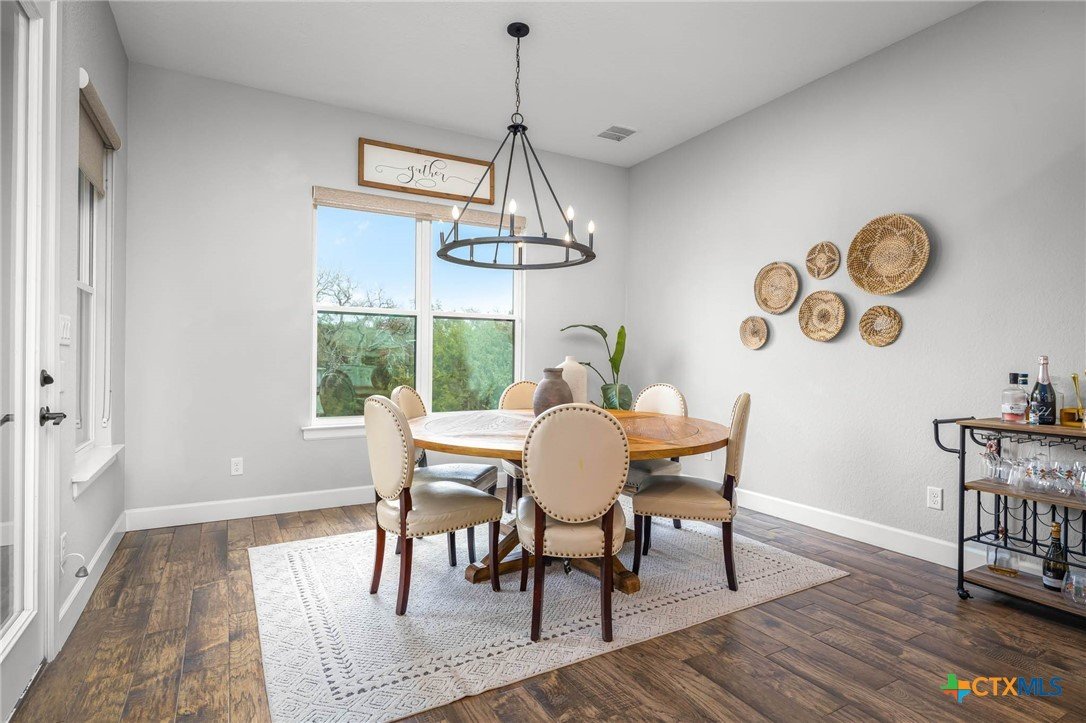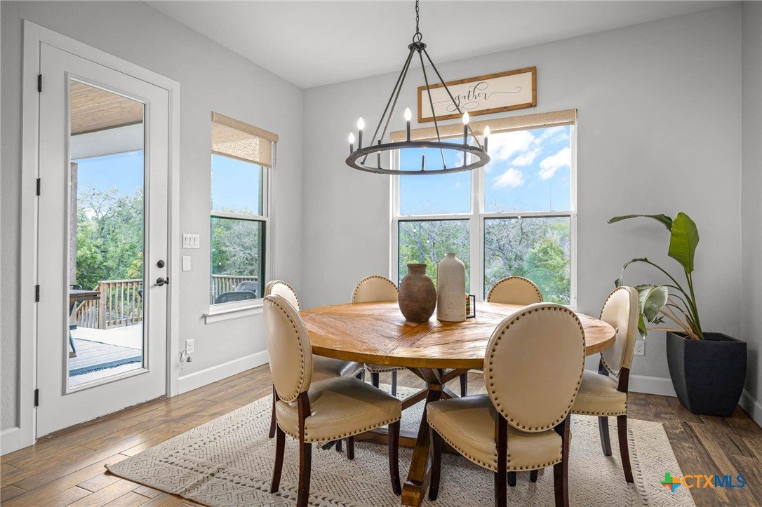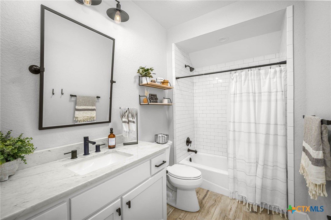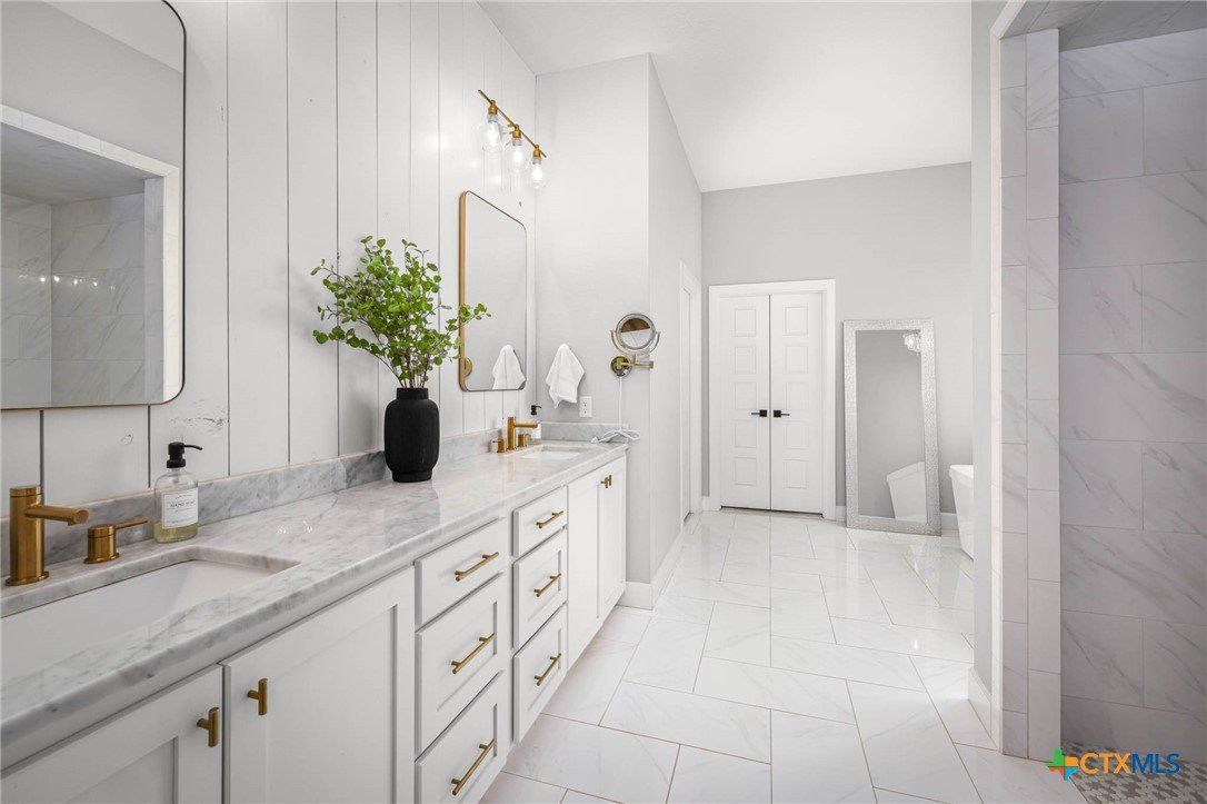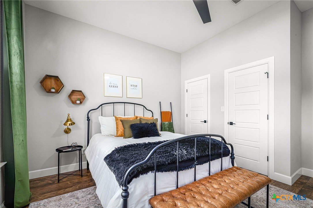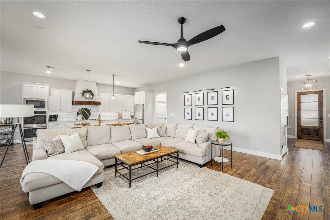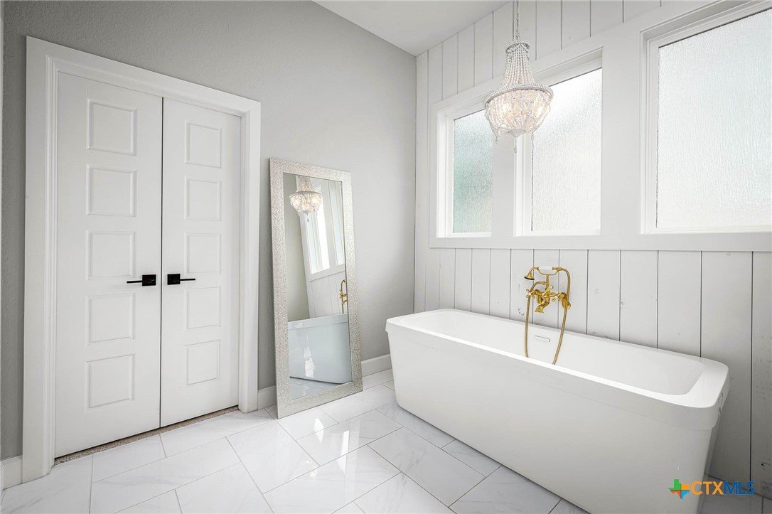 Now Offering $8000 Closing Cost Assistance!! Welcome to 635 Williams Way, a beautifully designed home built in 2021 by Meyer Brandt Custom Homes, with ideal location on the Hill in the heart of New Braunfels. Nestled among mature trees with peaceful greenbelt views, this home blends timeless style with modern comforts. The crisp white brick exterior sets the tone for the warm and inviting interior, where wood-look tile flooring flows throughout the main living areas. The open-concept kitchen is a chef’s dream, featuring clean white cabinetry, quartz countertops, a gas range, double ovens, and a custom wooden accent vent hood. The living room is anchored by a striking wooden mantle fireplace, creating the perfect ambiance for cozy evenings. The primary suite is privately situated on the main floor and boasts a spa-like en suite bath with dual vanities, a separate tub, and a walk-in shower. A downstairs guest suite with an adjacent full bath offers comfort and convenience. Upstairs, two additional bedrooms share a well-appointed full bath. With thoughtful design, and stylish finishes, this home is move in ready! No renovation necessary! Enjoy close proximity to Landa Park, Downtown New Braunfels, Gruene, Schlitterbahn, Landa Park Golf Course, and so much more!