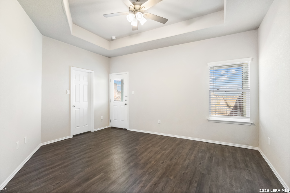 **2-WEEKS FREE RENT OFF 3RD MONTHS RENT*** Step inside this beautifully designed 3-bedroom, 2-bath duplex located in the desirable Jordan's Creek Subdivision. This home offers an open and contemporary layout featuring impressive 11-foot ceilings in the living room and kitchen, creating a bright and spacious atmosphere. The open kitchen is perfect for entertaining and daily living, complete with a breakfast bar, recessed lighting, granite countertops, abundant cabinet space, and a tasteful backsplash. Stainless steel appliances, including a refrigerator, are included for convenience. The spacious primary suite features elegant tray ceilings, a large walk-in closet, and a private ensuite bathroom with a double vanity and walk-in shower. The primary bedroom also offers direct access to the covered back patio, providing a relaxing outdoor retreat. Additional highlights include faux wood window blinds throughout and ceiling fans in all bedrooms, the living room, and the covered patio. Enjoy the fully fenced backyard with an irrigation system for easy lawn maintenance. Conveniently located approximately 30 minutes from San Antonio and 20 minutes from New Braunfels. This home is under 6 miles from major employers and attractions including Caterpillar, Texas Lutheran University, and Downtown Seguin. Easy access to SH-130 Tollway provides a convenient commute to Austin, Tesla, and surrounding areas.
