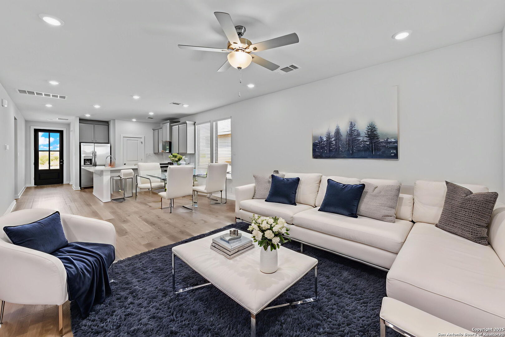 The Cesar Chavez floor plan offers 1,484 sq. ft. of well-designed, one-story living space that perfectly balances style and functionality. This home features three generously sized bedrooms and two full baths, making it ideal for families or those seeking extra space for guests or a home office. The open-concept layout seamlessly connects the kitchen, dining, and living areas, creating a warm and inviting space for gatherings and daily living. The primary suite boasts a private ensuite bathroom and a spacious walk-in closet for added convenience and luxury. A two-car garage provides ample storage and secure parking. With modern finishes and a smart, efficient layout, the Cesar Chavez floor plan is designed to meet your needs and exceed your expectations.