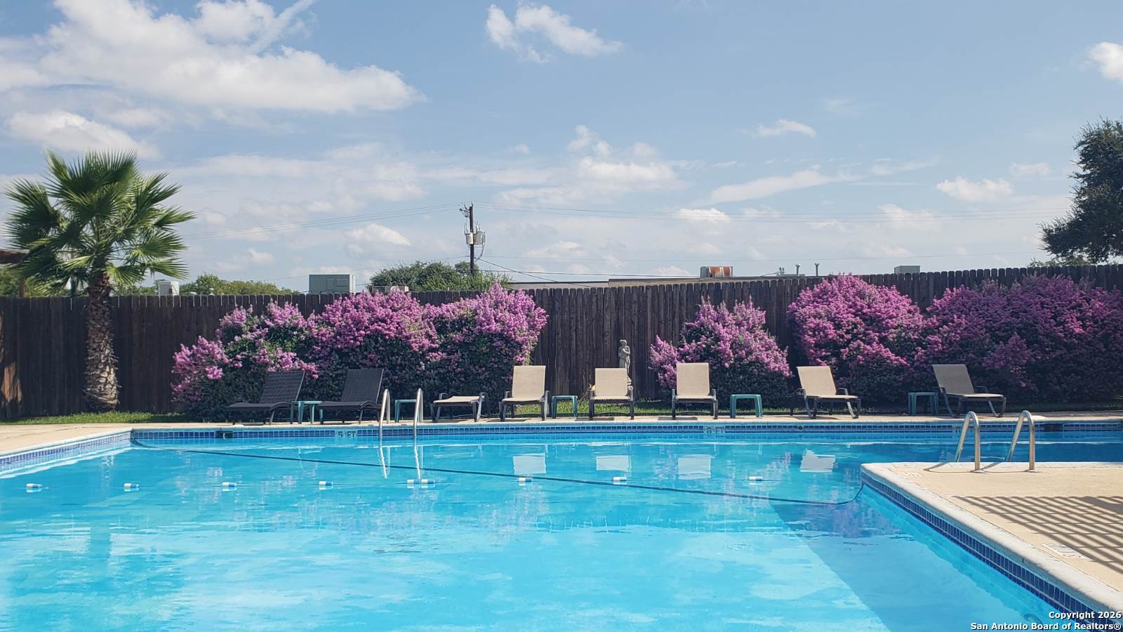 Beautifully updated 2 BR/1.5 bath townhome in Enchanted Village, ready for move in! Located minutes away from 281, 410, Wurzbach Parkway, and the airport, makes for an easy commute! Stylish upgrades and features, including an updated kitchen w/quartz counter tops & black/stainless steel appliances. A newly installed bar height area offers versatile space perfect for a coffee bar, standing desk, or extra counter space. Upstairs features new laminate flooring, fresh modern paint and upgraded energy-efficient windows. There is a large patio & a 2-car garage (plus guest parking out front). The community amenities are right by this unit, which includes a pool, fitness area, playground, picnic area, dog run, garden, & even a party room that can be leased! Water & lawn service is included! 1 small dog allowed only.