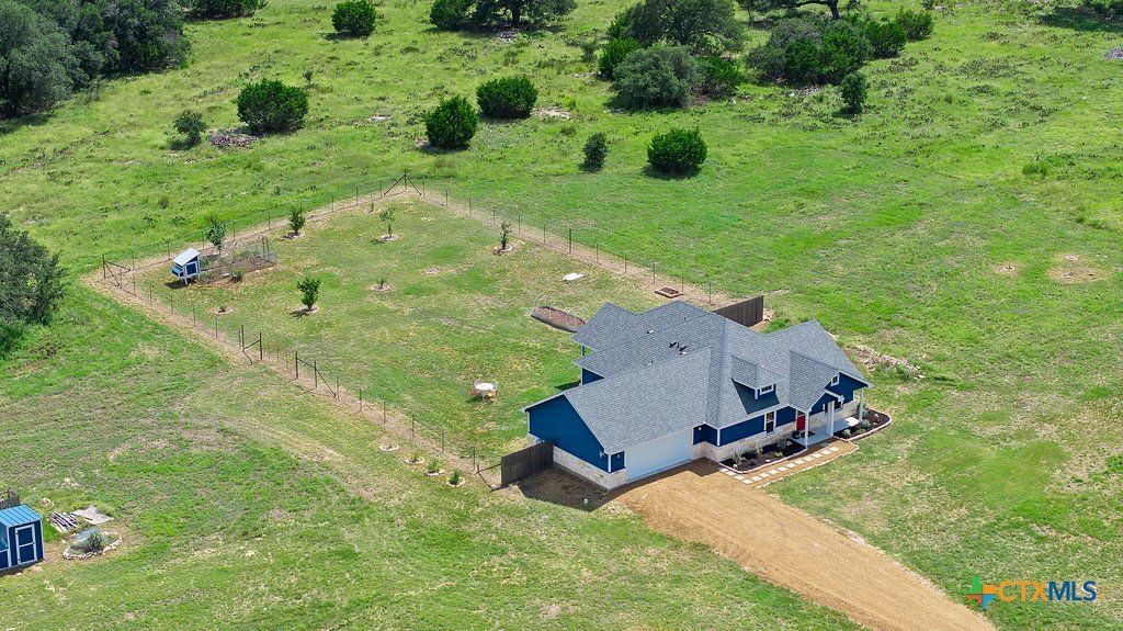 Discover The Ranches at Blackbuck Ridge—a gated, wildlife-exempt community in beautiful North Burnet County where privacy meets possibility. This 5-acre retreat offers a 2021-built craftsman-style home with 3 bedrooms, 2 baths, and an open kitchen-living-dining layout perfect for gatherings.Freshly painted throughout with zero-VOC paint and equipped with allergy-friendly AC filters, this home is a breath of fresh air—literally. The whole-house water filtration system ensures every tap flows with clean, pure water. Roof replaced in October 2024 for worry-free living.Step outside to your own mini-homestead dream: a fruit tree orchard ready to bloom, a charming chicken coop and spacious run, and plenty of space for gardens, animals, or simply soaking up the Texas sunsets.Bring your vision—whether it’s adding a barndominium, workshop, or guest house—there’s room here to make it happen.