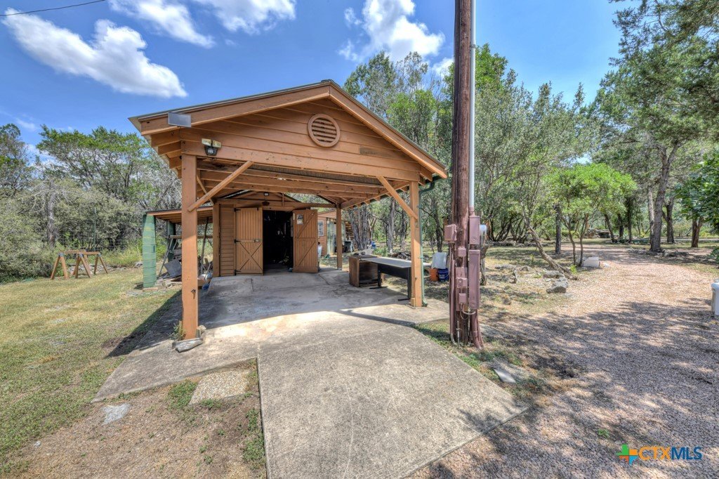 ** $20,000 SELLER CONTRIBUTION TOWARDS BUYER'S CLOSING COSTS ** Hill Country Retreat on 3.63 Acres with Trophy Oaks & River Access Nestled beneath a canopy of majestic trophy oaks, this property offers serene privacy and unmatched versatility. Whether you're a hobbyist, collector, gardener or remote professional, this home is designed to accommodate your lifestyle with ease. Freshly painted downstairs, the home features a spacious primary suite with a generous bath and walk-in closet, plus a second first floor bedroom with an en-suite bath and ample storage. Upstairs, discover a sprawling library or hobby room, a third bedroom with a large cedar closet, and an optional fourth bedroom or flex space, perfect for guests, a studio, or office. With four outbuildings, a greenhouse, and a three car garage, you'll have room for everything from creative projects to serious storage. The backyard is enclosed with high deer proof fencing, ideal for passionate gardeners ready to cultivate their dream landscape or vegetable garden. Unwind by the sparkling pool under the shade of towering oaks, or enjoy the peaceful surroundings from your private patio. Whether you're entertaining or escaping, this property delivers tranquility and charm. Enjoy exclusive access to the Guadalupe River