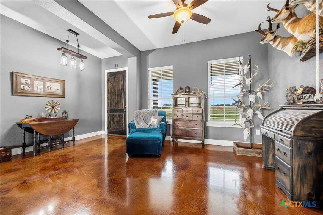 640 Blackbuck Ridge Drive – A One-of-a-Kind Hill Country Sanctuary Welcome to 640 Blackbuck Ridge Drive, a rare chance to own a stunning piece of Texas Hill Country in the exclusive, gated community of The Ranches at Blackbuck Ridge. This unique property blends natural beauty, privacy, and modern comforts—perfect for those seeking peaceful country living with convenient access to town. Set on 5 meticulously maintained acres, this home offers space, seclusion, and room to grow. Located between Lampasas and Burnet, you’re just 20 minutes from small-town shopping, dining, and entertainment. At the heart of the property is a thoughtfully designed 2,200 sq ft custom home, situated on a prime corner lot with expansive views and ultimate privacy. A massive 50’ x 30’ workshop provides flexible space for hobbies, storage, or even a home business. Additional 5 acre lot available. Lot 124 right behind this property. The outdoor living area is a true highlight, featuring a flourishing garden, a custom fire pit patio, and a covered back porch—perfect for relaxing, entertaining, and enjoying Hill Country sunsets. A rainwater capture system supports sustainable gardening, while a private well and septic are already in place for move-in ease. Nature lovers will appreciate the abundance of wildlife, including white-tailed deer, Blackbuck antelope, wild turkeys, and more. The property also offers potential for a wildlife exemption, providing a valuable tax advantage. Whether you’re dreaming of a peaceful retreat, or simply more space to breathe, 640 Blackbuck Ridge Drive delivers a rare lifestyle opportunity. Schedule your private showing today and experience this extraordinary property for yourself.