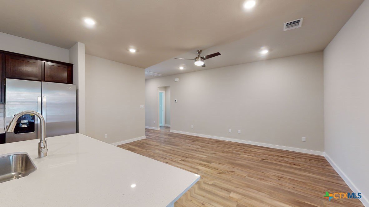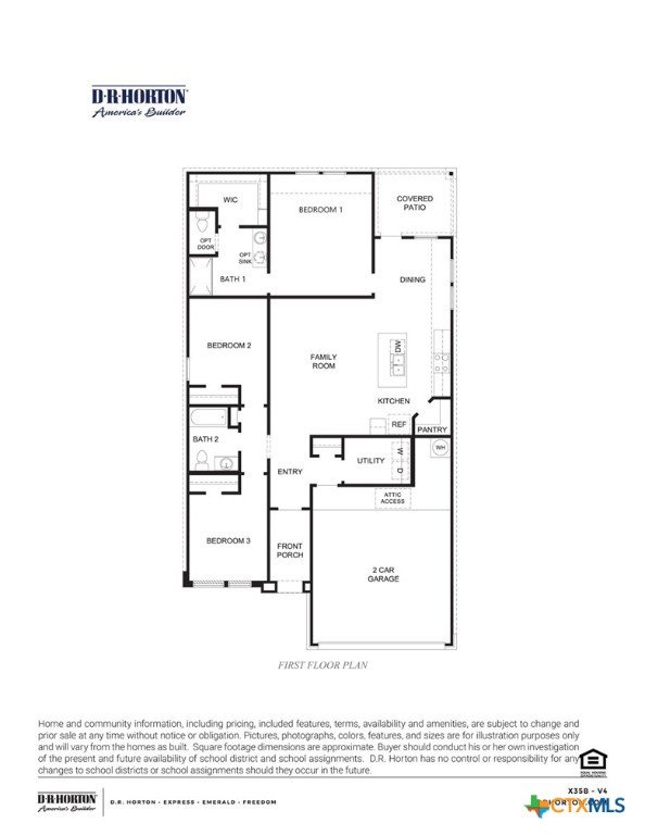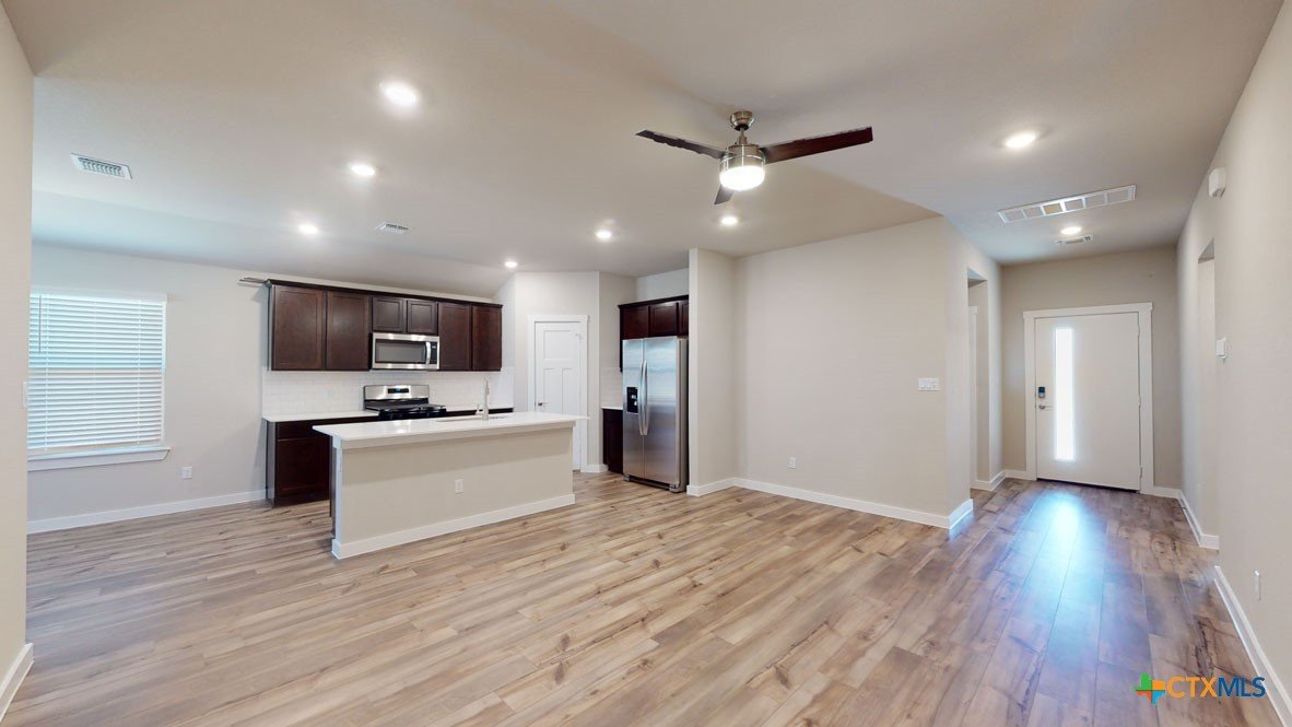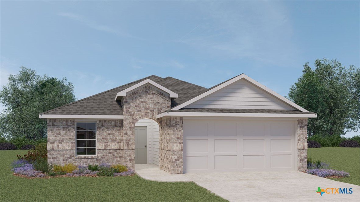 Welcome to the Baxtor floorplan at Reynolds Crossing in Killeen, Texas, where every square foot is sophisticated and comfortable. You’ll be calling the approximately 1,409 square foot, single-story, 2-car garage, and covered patio your new home. The 3-bedroom, 2-bathroom floorplan is perfect for you with the open concept living area. The kitchen, dining area, and living area blends seamlessly. You will find beautiful flat panel birch cabinetry and granite countertops in the kitchen. The kitchen also includes a breakfast bar and corner pantry. The secondary bedrooms are cozy and carpeted, with plenty of closet space, with the secondary bathroom between the rooms. Enjoy the indoor access to the garage, next to the laundry room. The primary bedroom will make you feel right at home, with an attached primary bathroom and walk-in closet. Each of our D.R. Horton homes has smart home technology built in. With the smart home technology, you’ll never be far from home. Come say hello and see why you will want to make the Baxtor floorplan your new home!
