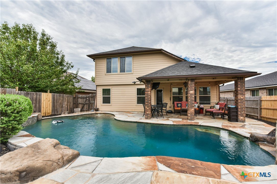 Make every day feel like a vacation in this inviting 4-bedroom, 2.5-bath home, where the show-stopping in-ground pool takes center stage! Perfectly designed for outdoor fun and relaxation, this sparkling pool is surrounded by a privacy fence and mature trees, offering a private retreat for weekend parties, after-school swims, and lazy summer days. The covered patio provides a shaded space to grill, entertain, or unwind while keeping an eye on the kids. Located on a manageable .14-acre lot, this 1,934 sqft two-story home offers a smart layout with two spacious living areas, ideal for both quiet family time and lively gatherings. The open kitchen features elegant granite countertops and flows easily into the main living space — perfect for staying connected with the family while cooking. You'll find carpet and tile flooring throughout, a dedicated laundry room for convenience, and a 2-car garage with plenty of storage. The covered front porch adds to the charm and creates a warm welcome home every day. This property offers the best of both worlds — a family-friendly floor plan inside, and a vacation-style backyard that makes staying home feel like a getaway. Don’t miss the chance to own this poolside paradise — schedule your tour today!