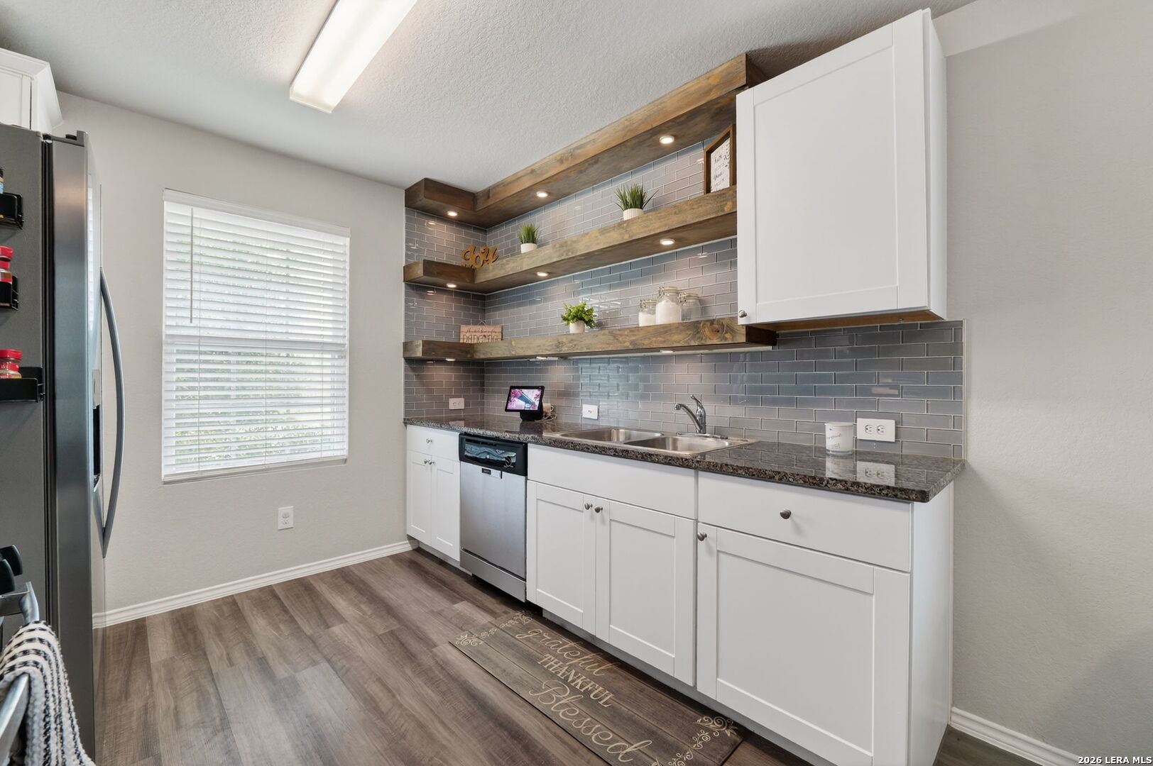 Well-maintained single-story home offering comfort, functionality, and a convenient location with easy access to Loop 410 and I-10. Positioned near major warehouse and employment hubs, with H-E-B and Walmart approximately 7 minutes away, making everyday essentials easily accessible. The kitchen features granite countertops, a glass tile backsplash, and custom solid wood shelving, providing both style and practical storage. The main living area includes a built-in entertainment center, creating a welcoming space for relaxing or entertaining. The two-car garage has been upgraded with epoxy flooring and is fully insulated, offering flexibility for a home gym, workspace, or additional storage. Solar panels are paid in full and will convey with the home, adding long-term energy efficiency benefits. Don't miss the opportunity to own this well-maintained home in a convenient and growing area.