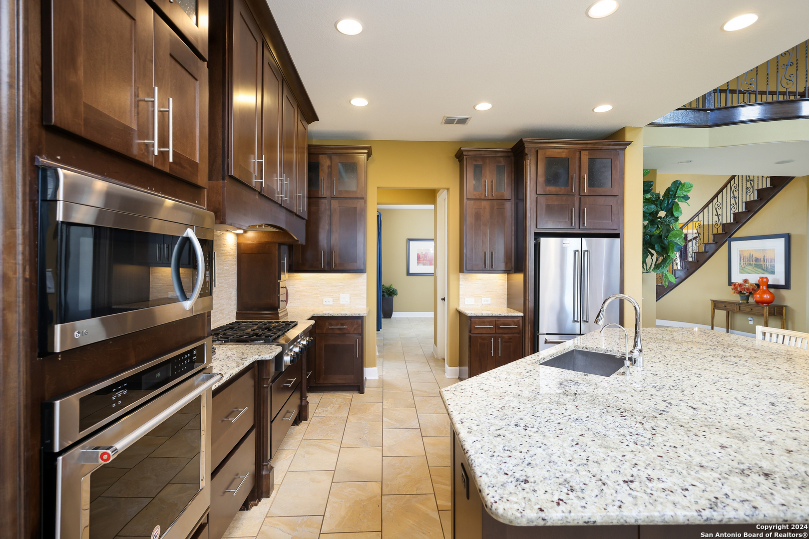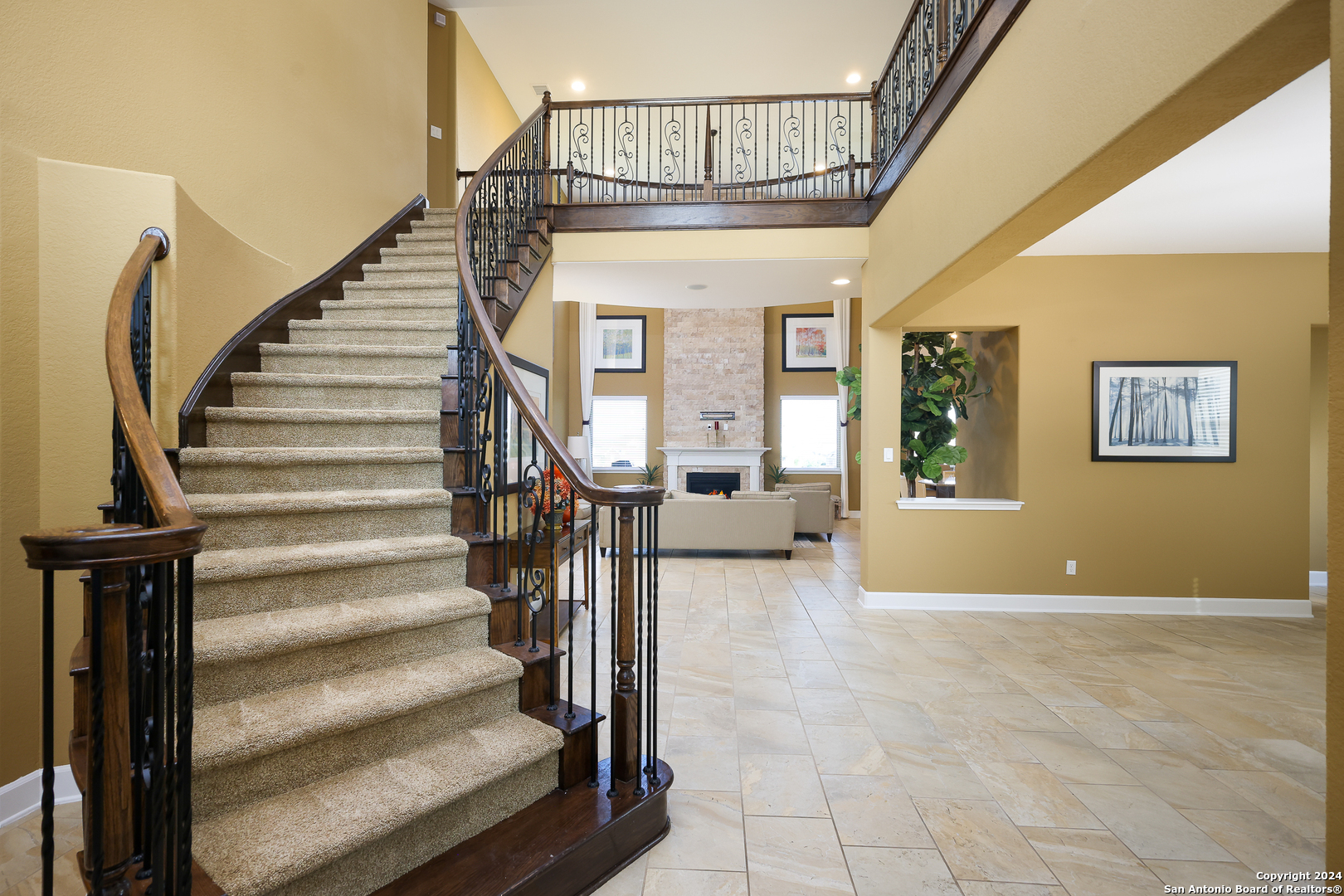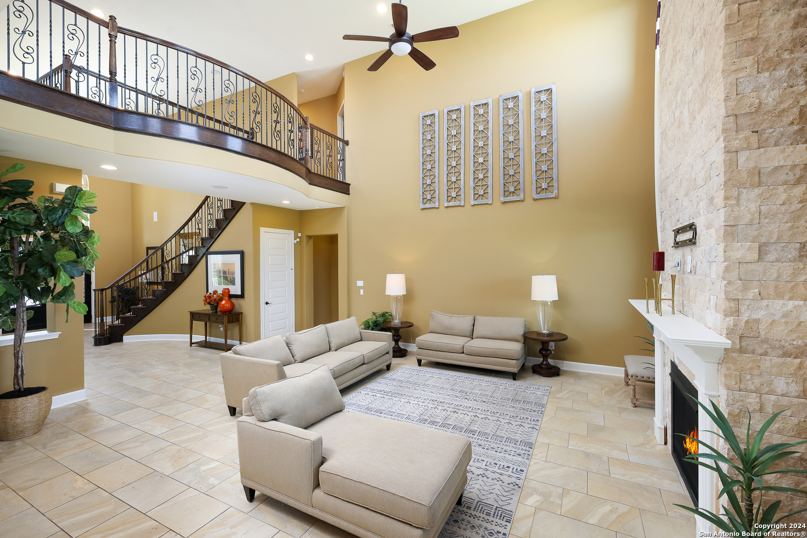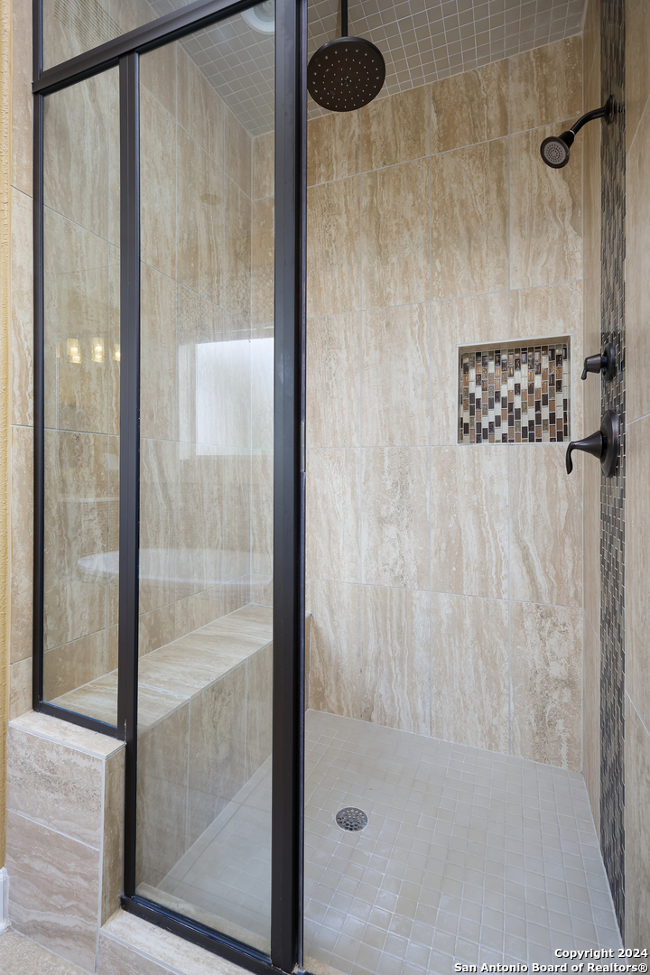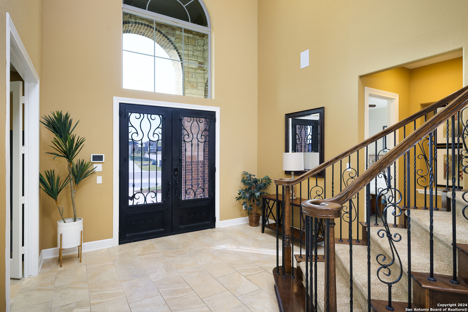 Stunning French Country Home in Pristine Community! Welcome to your dream home, a former model residence that epitomizes elegance and luxury. Nestled within a charming small community with exclusive entry and exit points, this gorgeous French Country-style estate offers unparalleled amenities and a prime location. This expansive home features 5 bedrooms, 4 full bathrooms, and 2 half bathrooms, designed to accommodate your lifestyle with grace and comfort. The study provides a quiet sanctuary for work or relaxation. As you step through the double entry doors, you are greeted by an open foyer boasting 21-foot ceilings and a magnificent curved iron staircase, setting the tone for the grandeur that awaits within. The heart of this home is its gourmet kitchen. Upgraded with high-end stainless steel KitchenAid appliances, including a 6-burner gas cooktop, it's designed for both everyday meals and culinary masterpieces. Custom cabinets provide ample storage, while granite countertops offer both beauty and functionality. The master bedroom is a haven of tranquility, featuring double tray ceilings with crown molding. The master bath offers separate vanities, a dedicated makeup area, an all-tile shower, and a luxurious 6-foot drop-in tub. This suite is designed to be your personal retreat. Enjoy countless hours of fun and entertainment in the dedicated game and media rooms. Whether it's game night or movie night, this home provides the perfect venue for making memories. Step outside to your large covered patio, complete with recessed lighting and pre-plumbed for gas, making it ideal for outdoor cooking and entertaining. The huge yard, over half an acre in size, features a sprinkler system and offers endless possibilities for gardening, play, or simply enjoying the outdoors. Situated close to Randolph AFB, BAMC, and Downtown, this home offers convenience for both work and play. The small, gated community ensures a peaceful environment with added security and privacy. Hardwood and Tile Floors: Elegant and durable flooring throughout the home. 3-Car Garage: Ample space for vehicles and storage completed with a minisplit, epoxied floors and its own 1/2 bath. Porte-cochere: Adds a touch of sophistication and provides additional covered parking guarded by an electric iron gate. Don't miss the opportunity to own this exquisite property that combines luxury living with practical convenience. Schedule your exclusive viewing today and step into a world where every detail reflects quality and craftsmanship.