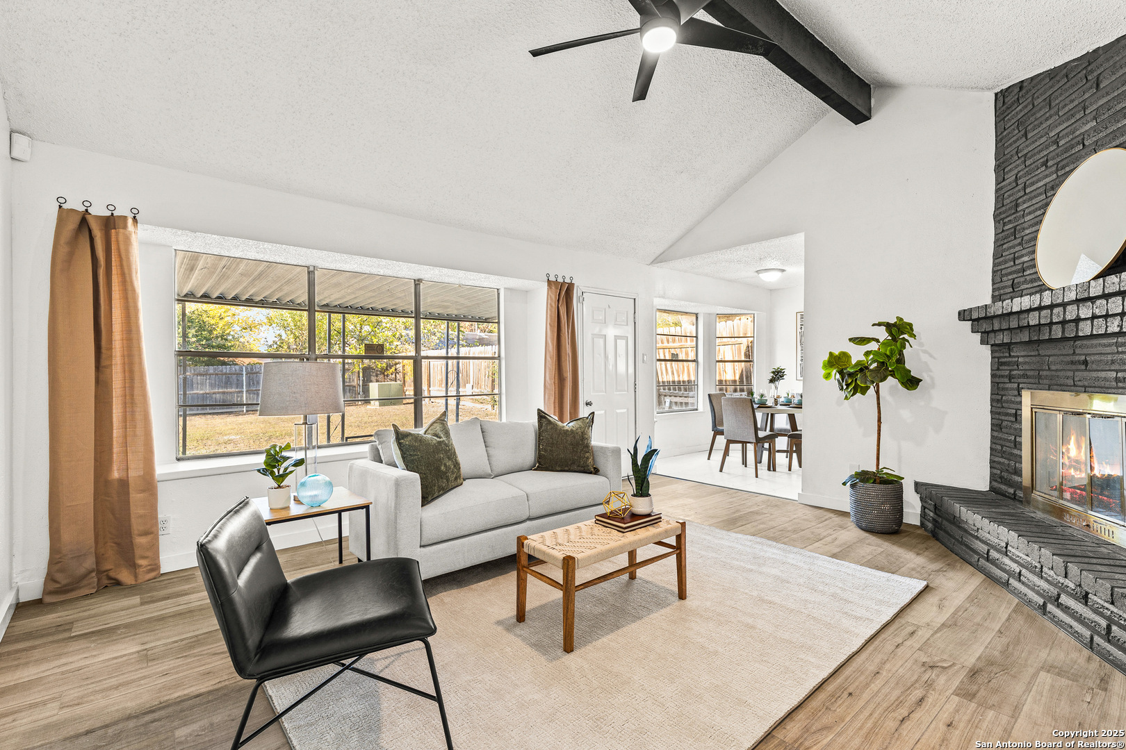 Welcome to 6411 Green Top Drive, priced at $249,000!! Step inside to discover two spacious living areas, offering plenty of flexibility for entertaining, relaxing, or working from home. The main living room features a striking black brick fireplace that creates a cozy yet contemporary focal point, while the secondary space offers additional room for gatherings or a media setup. The kitchen showcases brand new granite countertops, freshly painted cabinetry, and updated sinks, faucets, and fixtures that bring style and functionality together. Throughout the home, new laminate vinyl flooring, fresh interior paint, and modern ceiling fans elevate the overall look and feel. Both bathrooms have been updated with new granite surfaces, toilets, and hardware. Major improvements include a brand NEW 30-year ROOF, NEW garage doors and motors, and freshly painted fascia for added curb appeal and peace of mind. Surrounded by mature trees on a quiet street, this move-in-ready home offers comfort, quality, and convenience just minutes from shopping, dining, and major highways.