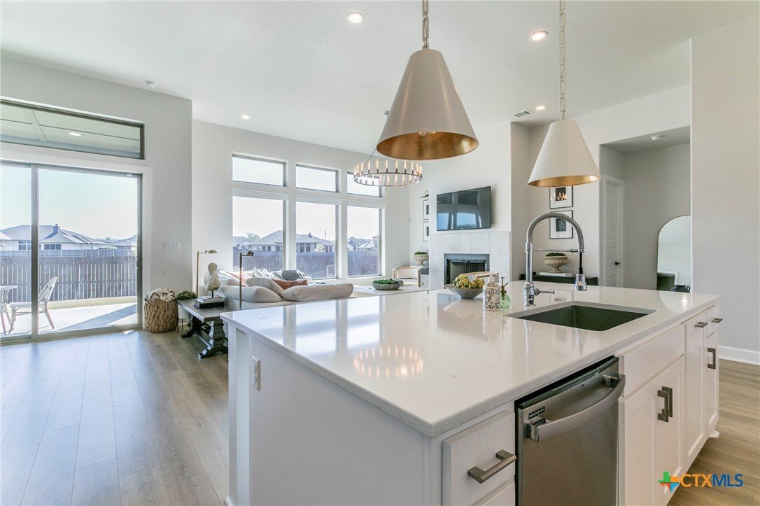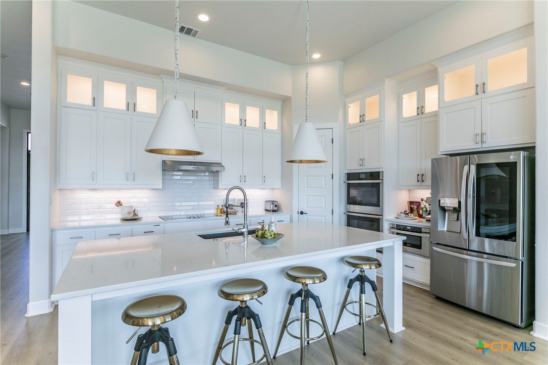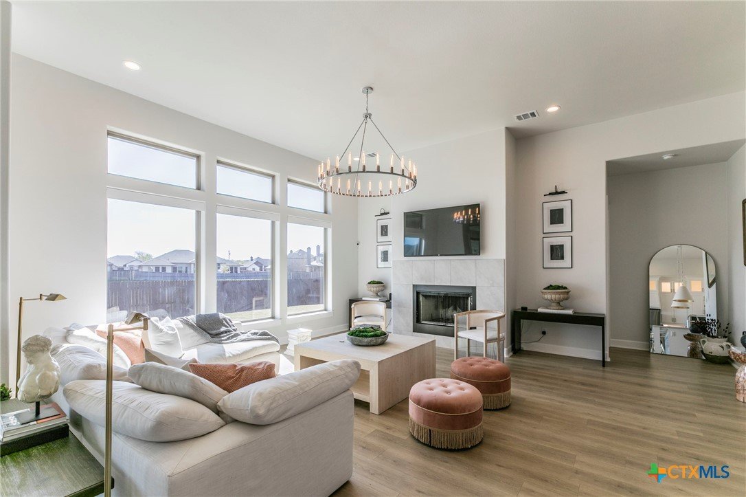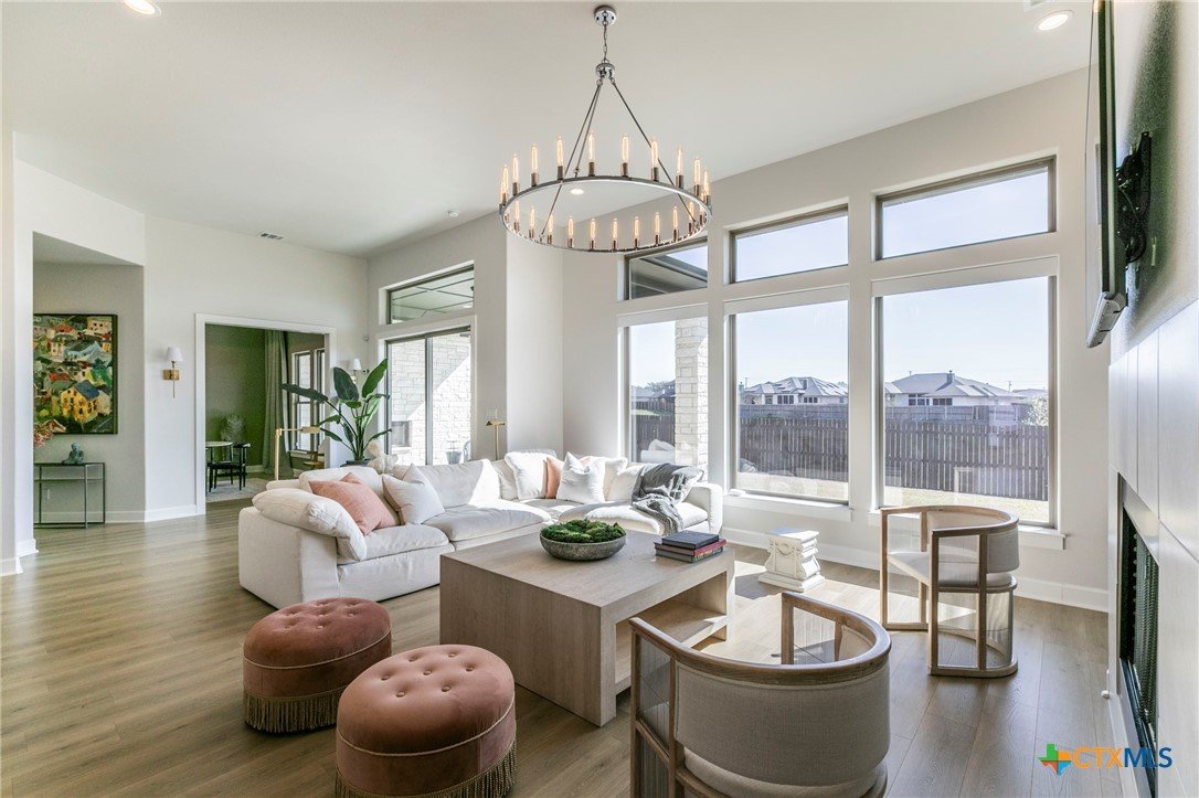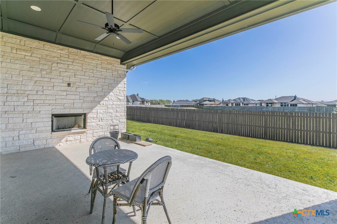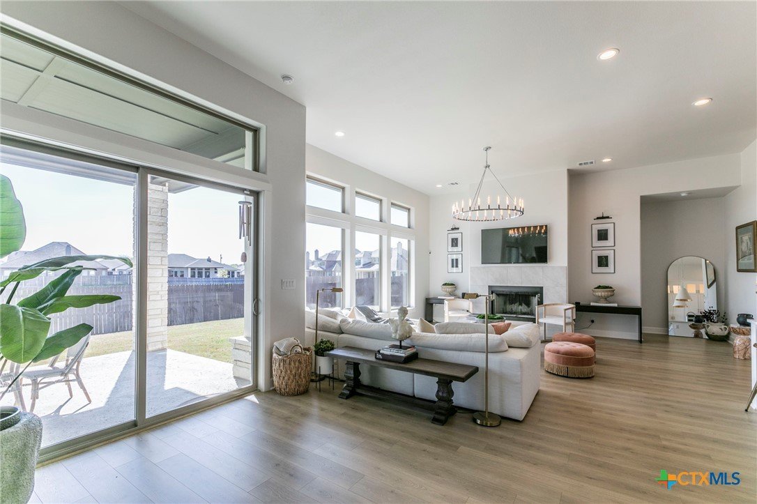 High-end upgrades and meticulous attention to detail set this beautiful home apart. From engineered white oak hardwood floors and designer lighting to custom plumbing fixtures and custom shades, this Arnold Homes masterpiece offers features that truly elevate the living experience. Inside, you’ll find five bedrooms or four plus a spacious study/flex room—perfect for a home office, gym, or formal dining. Step through the striking 8' Durango front door into a bright, open-concept living, dining, and kitchen space filled with natural light. The kitchen is a true standout: an oversized Quartz island, extended upper stacked kitchen cabinetry with upper and lower cabinet lighting, double ovens, and a built-in microwave drawer—designed for both style and function. Relax on the extended covered patio with a fireplace and no rear neighbors. Additional highlights include a 3-car garage, hardwired security cameras, and a recently installed new roof. A prime location just minutes from Baylor Scott & White, McLane Children’s Hospital, shopping, and dining. Designed with intention and loaded with upgrades, it’s a home that truly delivers.