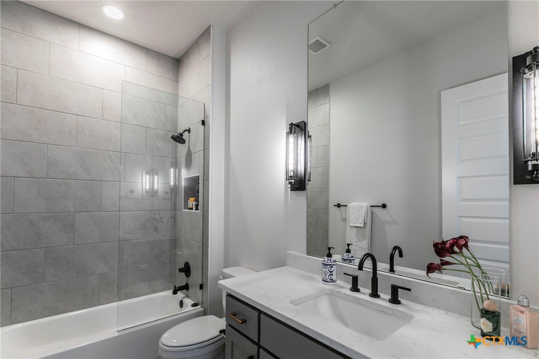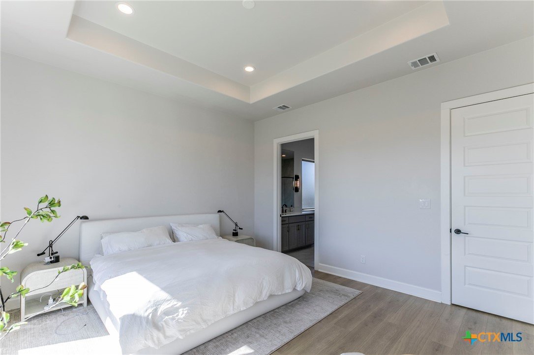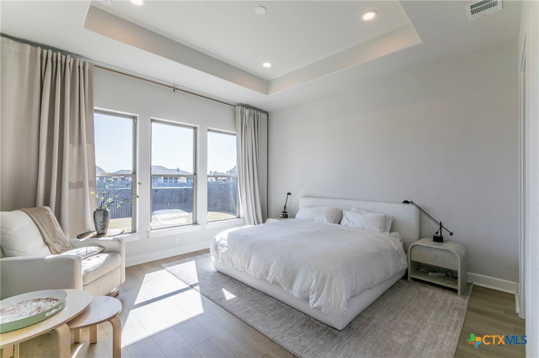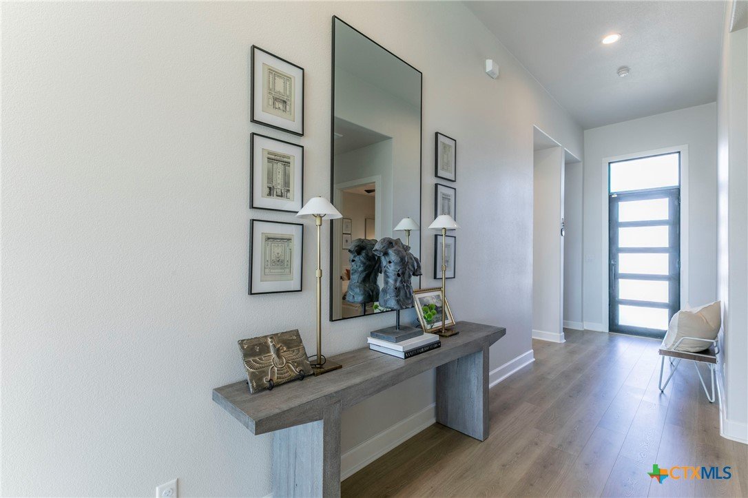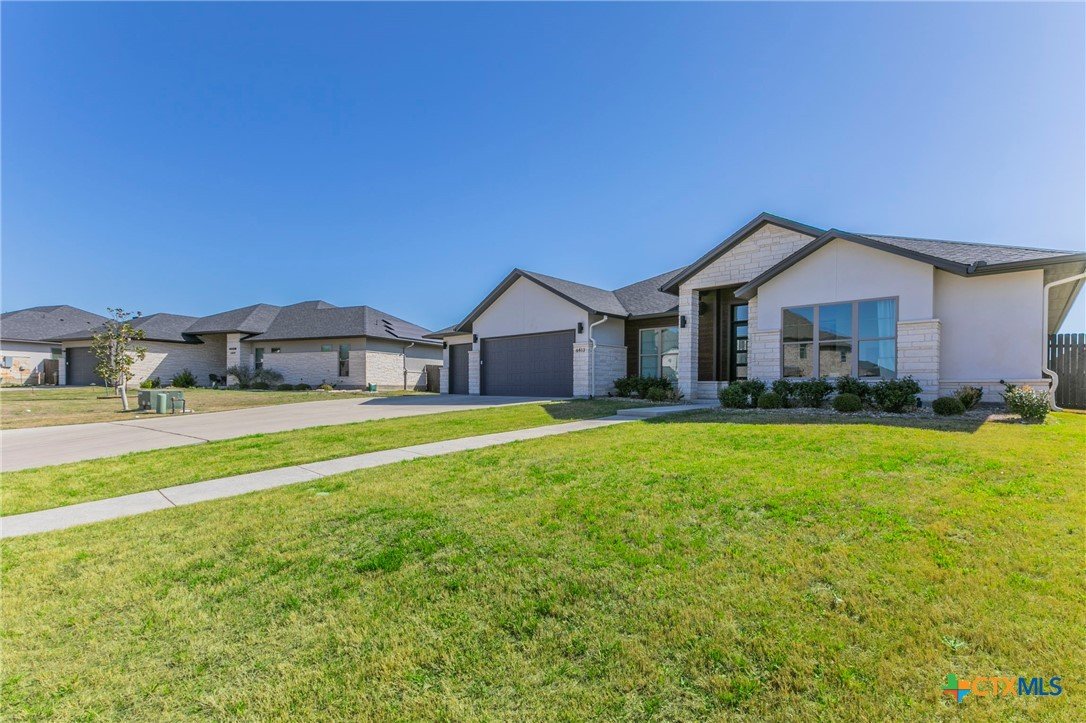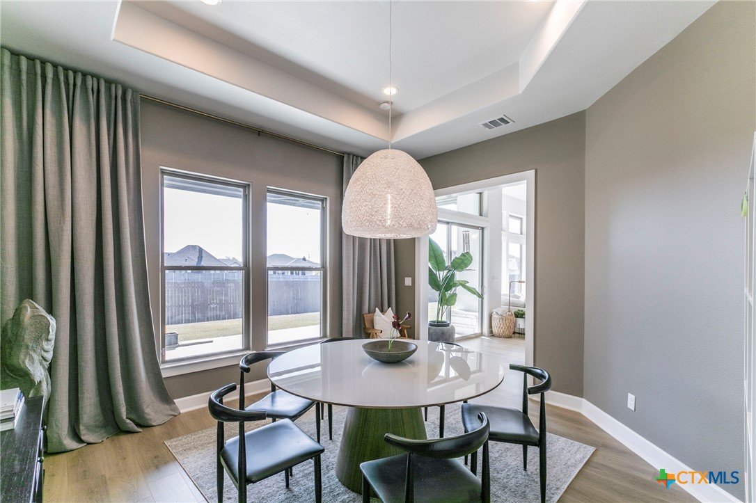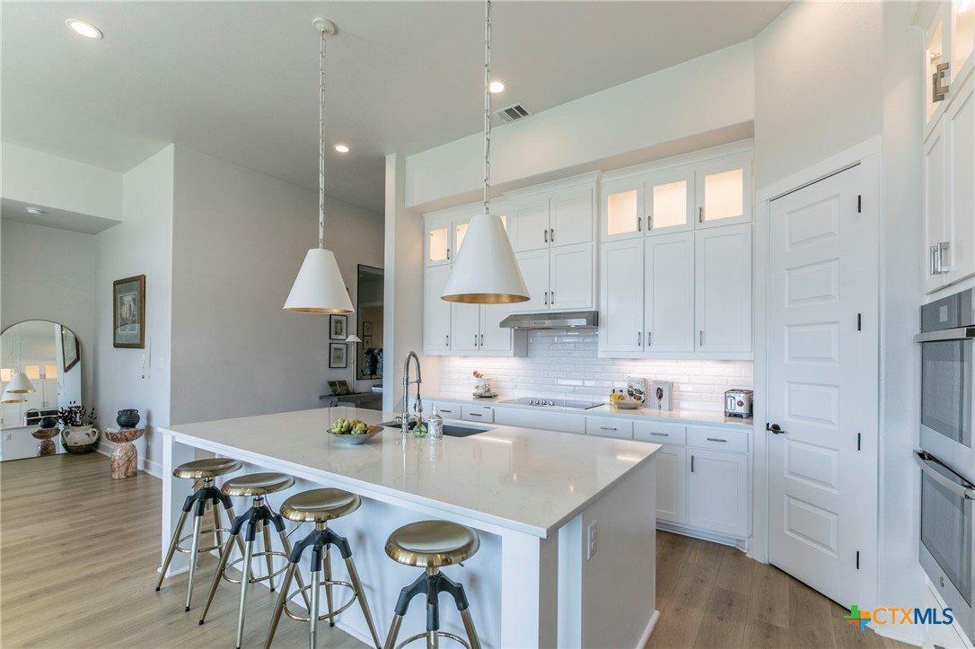 High-end upgrades and meticulous attention to detail set this beautiful home apart. From engineered white oak hardwood floors and designer lighting to custom plumbing fixtures and custom shades, this Arnold Homes masterpiece offers features that truly elevate the living experience. Inside, you’ll find five bedrooms or four plus a spacious study/flex room—perfect for a home office, gym, or formal dining. Step through the striking 8' Durango front door into a bright, open-concept living, dining, and kitchen space filled with natural light. The kitchen is a true standout: an oversized Quartz island, extended upper stacked kitchen cabinetry with upper and lower cabinet lighting, double ovens, and a built-in microwave drawer—designed for both style and function. Relax on the extended covered patio with a fireplace and no rear neighbors. Additional highlights include a 3-car garage, hardwired security cameras, and a recently installed new roof. A prime location just minutes from Baylor Scott & White, McLane Children’s Hospital, shopping, and dining. Designed with intention and loaded with upgrades, it’s a home that truly delivers.
