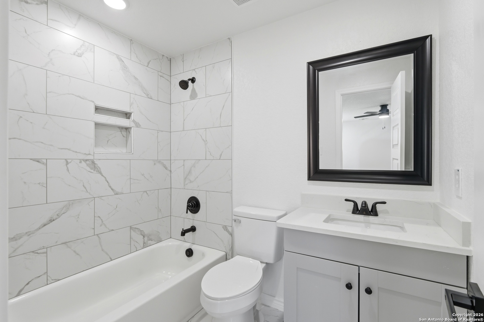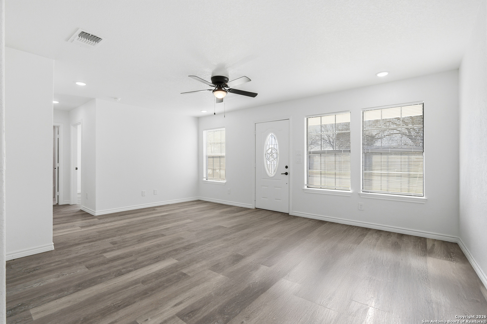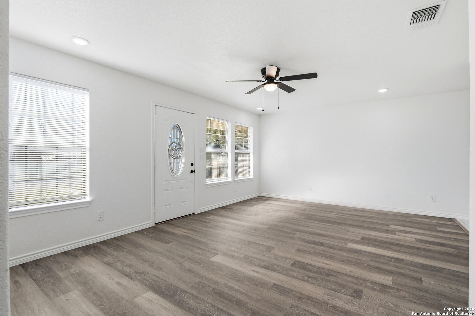 Welcome home! This fully renovated 4-bedroom, 2-bath residence has been completely updated with no expense spared. Recent upgrades include new double-pane windows, a new HVAC system, laminate flooring throughout the main living areas, and porcelain tile in wet areas. Modern black fixtures, recessed lighting, and sleek black ceiling fans enhance the contemporary design, while a newly foam-insulated attic improves energy efficiency. The exterior features refreshed wood siding, a brand-new roof, and an extended newly paved driveway with a second front approach-ideal for easy backyard access or additional parking. Enjoy a spacious owner's retreat (approx. 20x20) with room for a sitting area. One secondary bedroom includes a built-in desk, perfect for a home office or study. Move-in ready with modern style, comfort, and efficiency throughout. Come see today!
