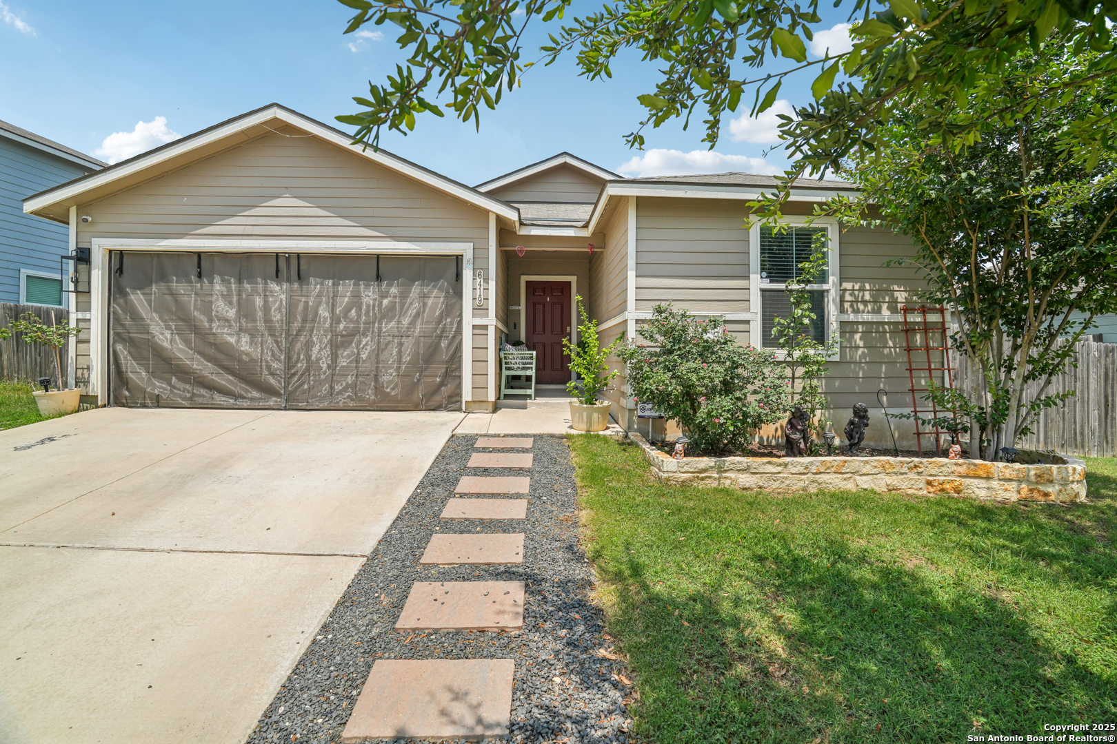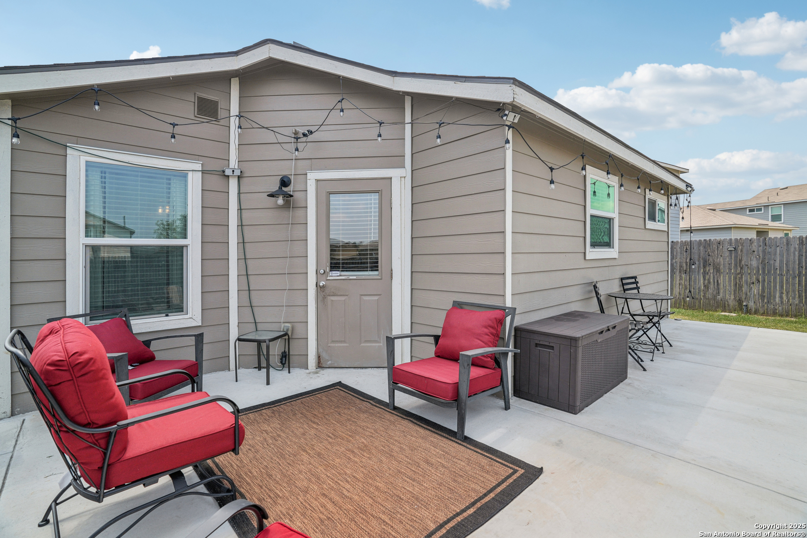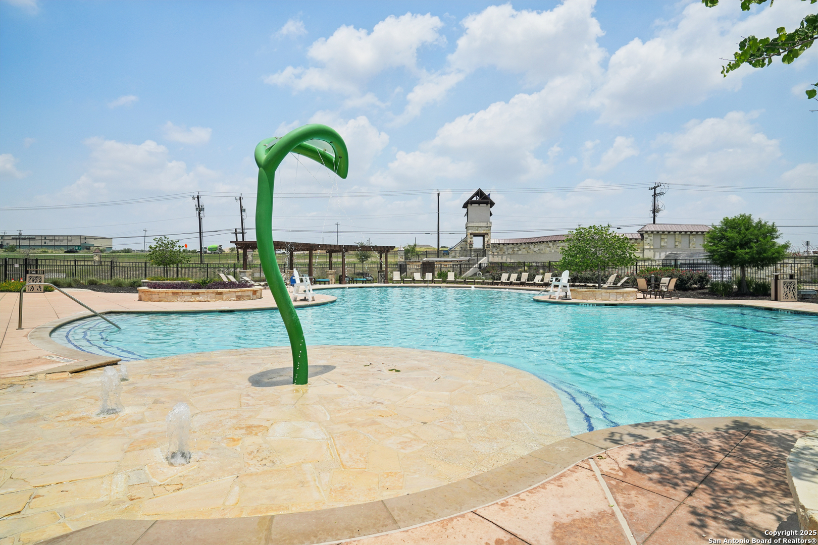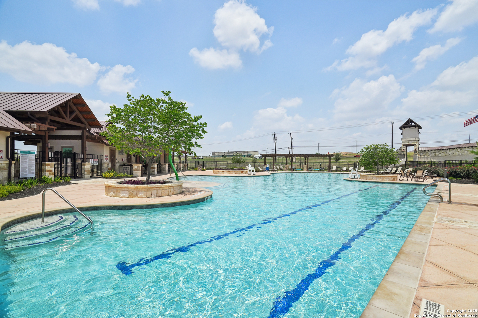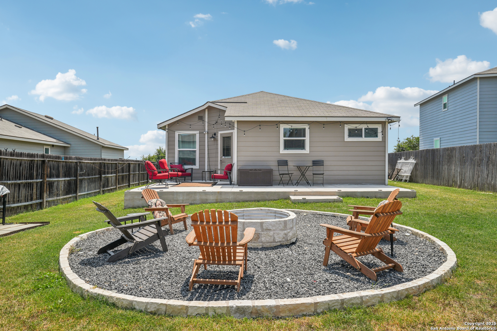 Discover the perfect blend of comfort, custom design, and community in this beautifully upgraded 1-story home featuring 3 bedrooms and 2 bathrooms. With stylish hard surface flooring throughout, every inch of this home has been thoughtfully curated for modern living. The inviting living room features custom built-in bookshelves with underlighting and a **custom-designed electric remote-controlled LED wall-mount fireplace**, creating a cozy and contemporary focal point that enhances both warmth and style. Throughout the home, you'll find **custom designer feature walls** that add character and a touch of luxury, complemented by upgraded fixtures that elevate each space.The spacious kitchen is a standout, offering generous cabinet and counter space, along with a large island that makes meal prep and entertaining a breeze.The oversized primary suite is bright, serene, and designed for relaxation, with a large walk-in closet to meet all your storage needs. Step outside to your private backyard oasis, where a **custom concrete patio spans almost the entire width of the home**, providing ample space for outdoor entertaining. A **custom fire pit** adds the perfect touch for evening gatherings and cool nights under the stars.Located in a vibrant and amenity-rich community where everything is within walking distance, you can **cancel your gym membership** and enjoy the **on-site fitness center** equipped with treadmills, ellipticals, weights, and more. Keep the little ones entertained at the **neighborhood splash pads**, cool off at the **community pool**, or shoot hoops at the **full-court basketball court**. Conveniently located near Loop 1604 and Hwy 90, you're just minutes from shopping, dining, and entertainment options. Don't miss your chance to make this custom-upgraded property your new home!