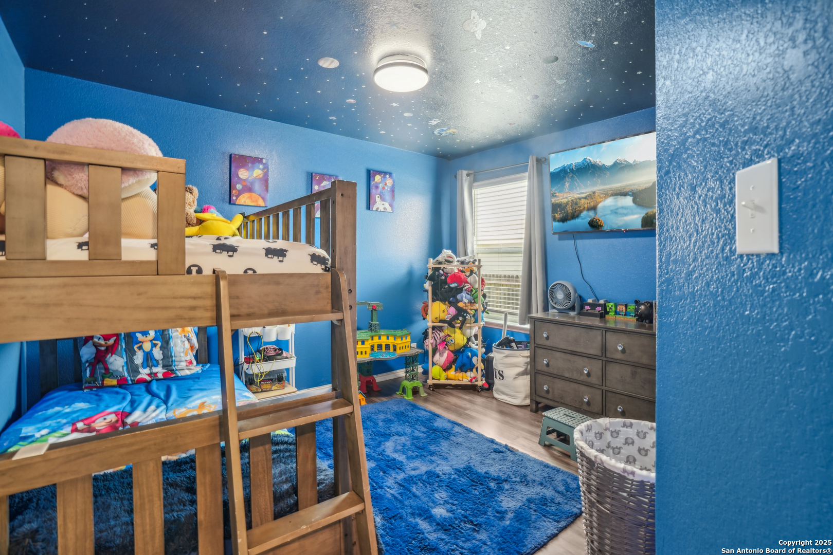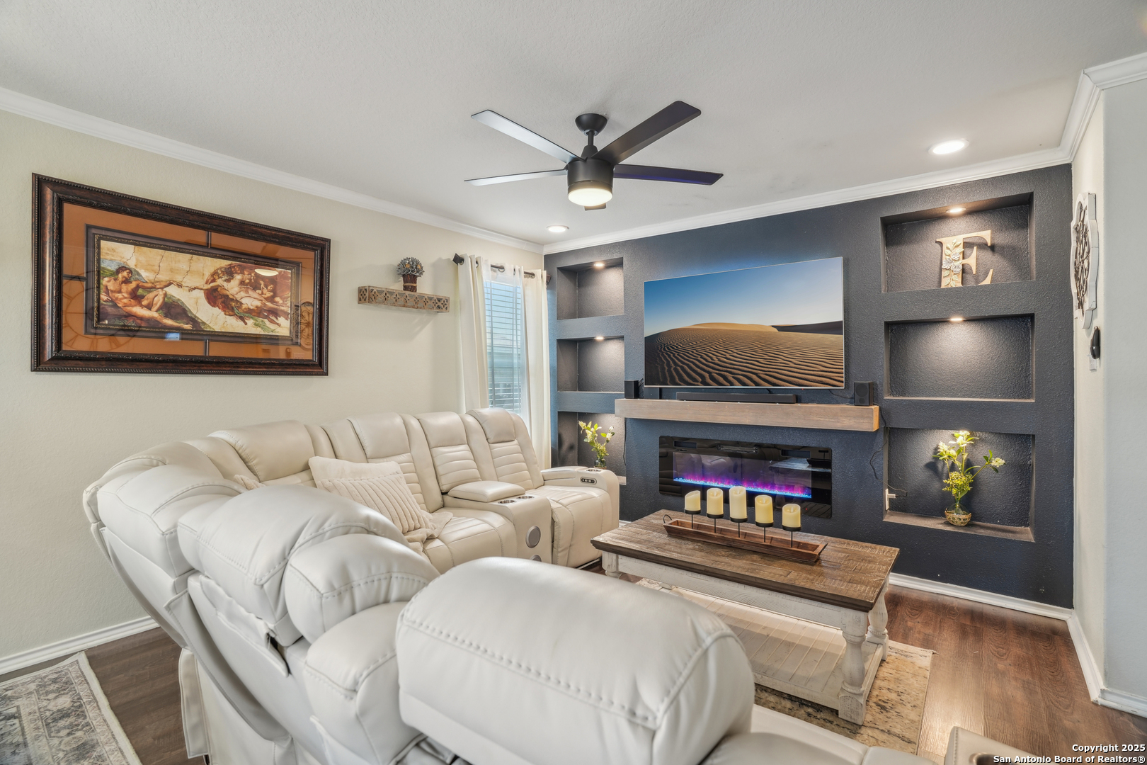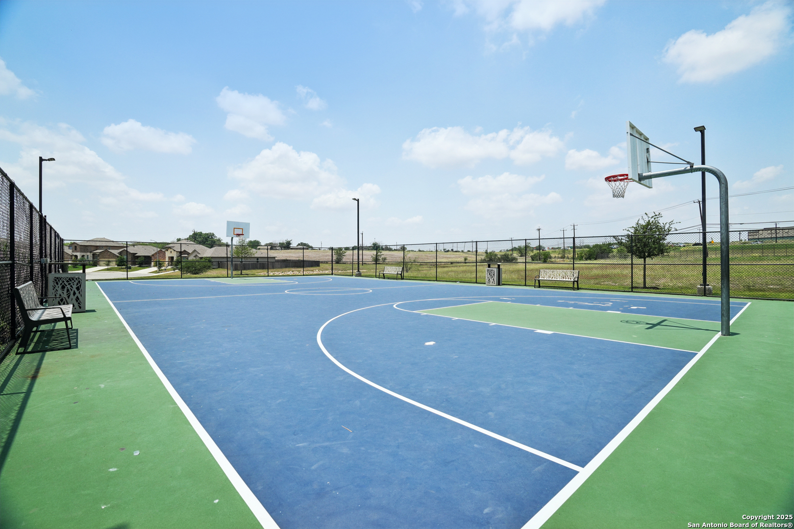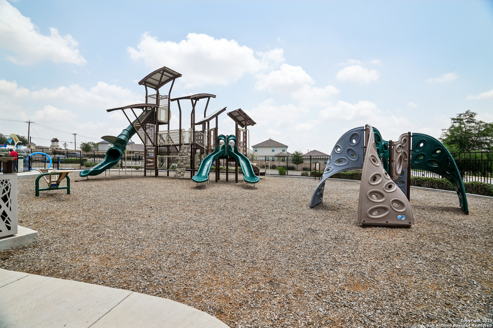 Discover the perfect blend of comfort, custom design, and community in this beautifully upgraded 1-story home featuring 3 bedrooms and 2 bathrooms. With stylish hard surface flooring throughout, every inch of this home has been thoughtfully curated for modern living. The inviting living room features custom built-in bookshelves with underlighting and a **custom-designed electric remote-controlled LED wall-mount fireplace**, creating a cozy and contemporary focal point that enhances both warmth and style. Throughout the home, you'll find **custom designer feature walls** that add character and a touch of luxury, complemented by upgraded fixtures that elevate each space.The spacious kitchen is a standout, offering generous cabinet and counter space, along with a large island that makes meal prep and entertaining a breeze.The oversized primary suite is bright, serene, and designed for relaxation, with a large walk-in closet to meet all your storage needs. Step outside to your private backyard oasis, where a **custom concrete patio spans almost the entire width of the home**, providing ample space for outdoor entertaining. A **custom fire pit** adds the perfect touch for evening gatherings and cool nights under the stars.Located in a vibrant and amenity-rich community where everything is within walking distance, you can **cancel your gym membership** and enjoy the **on-site fitness center** equipped with treadmills, ellipticals, weights, and more. Keep the little ones entertained at the **neighborhood splash pads**, cool off at the **community pool**, or shoot hoops at the **full-court basketball court**. Conveniently located near Loop 1604 and Hwy 90, you're just minutes from shopping, dining, and entertainment options. Don't miss your chance to make this custom-upgraded property your new home!