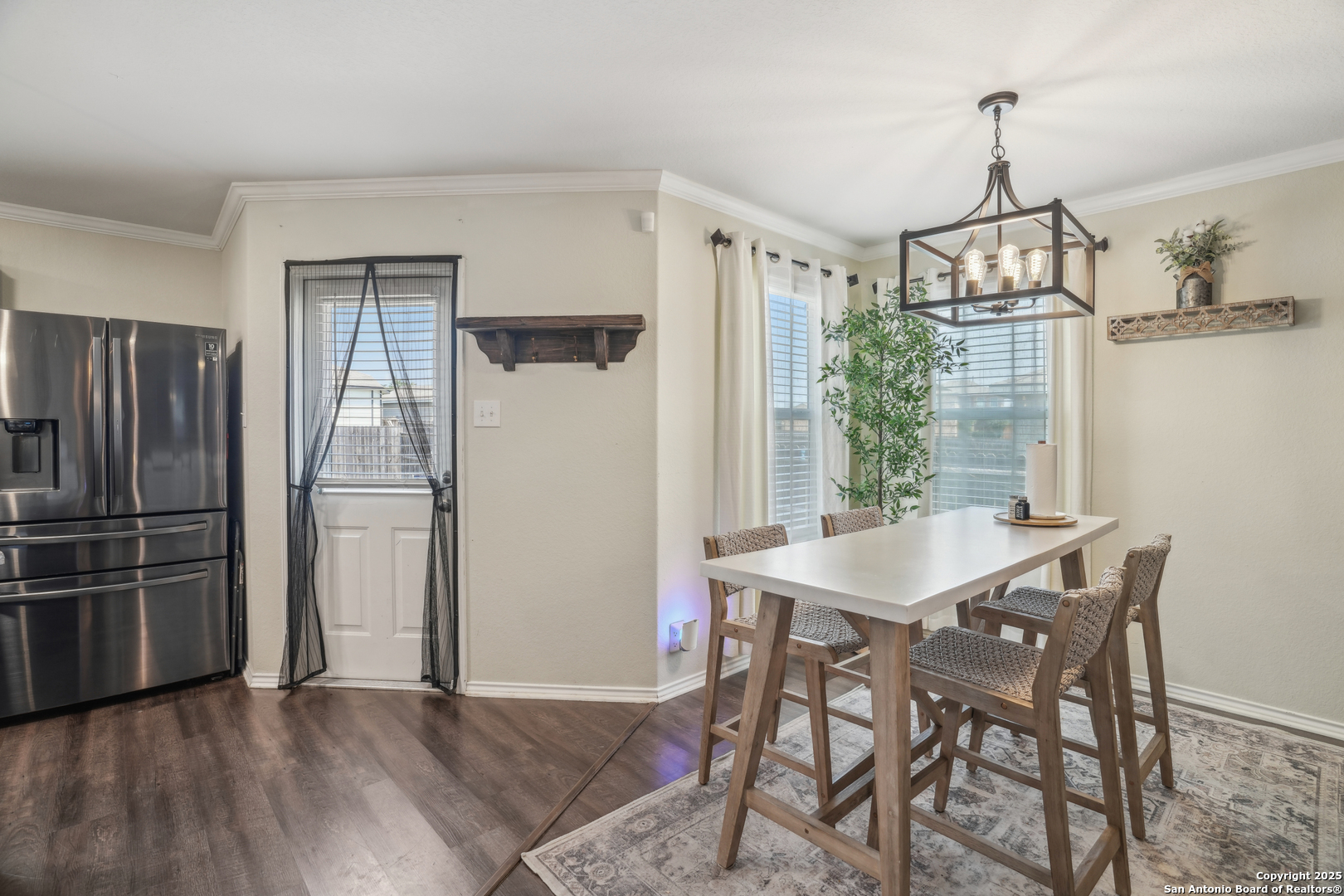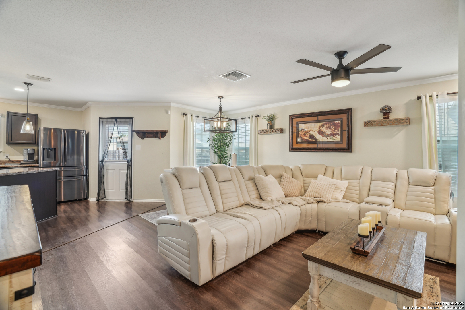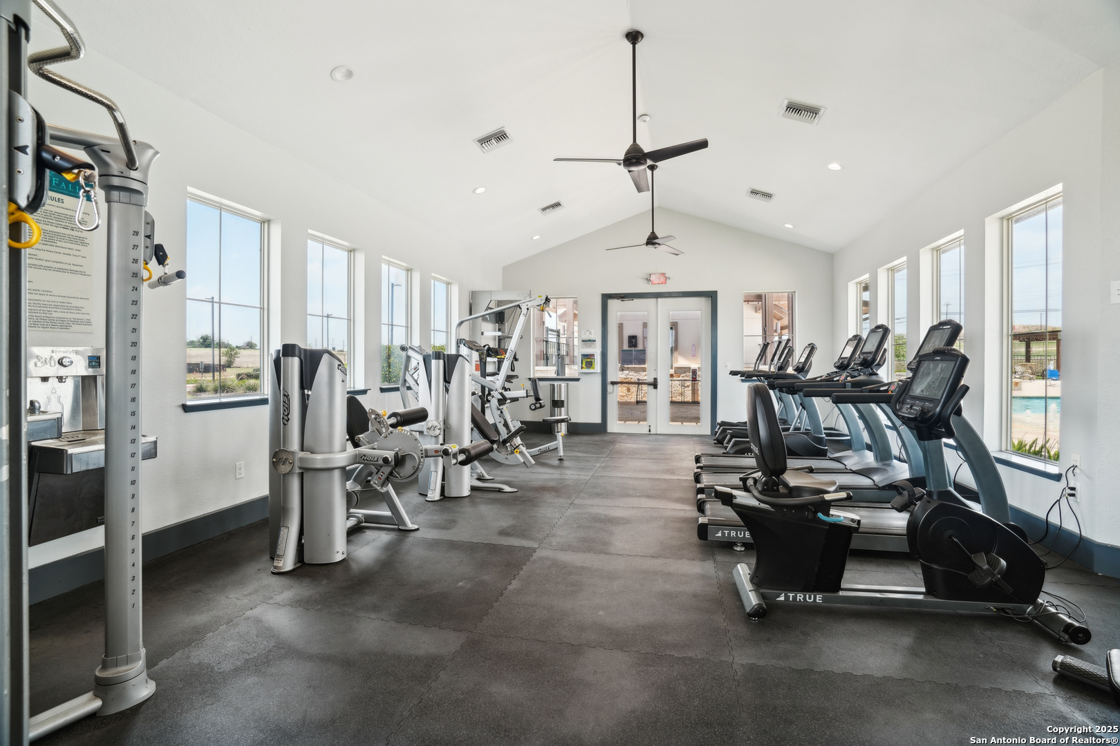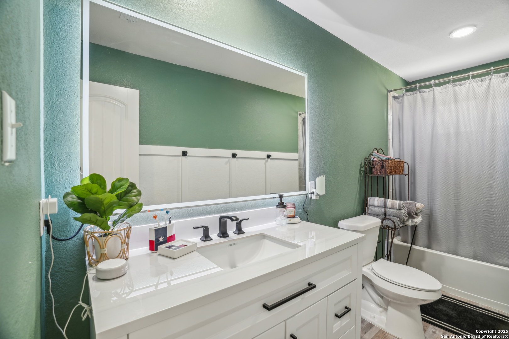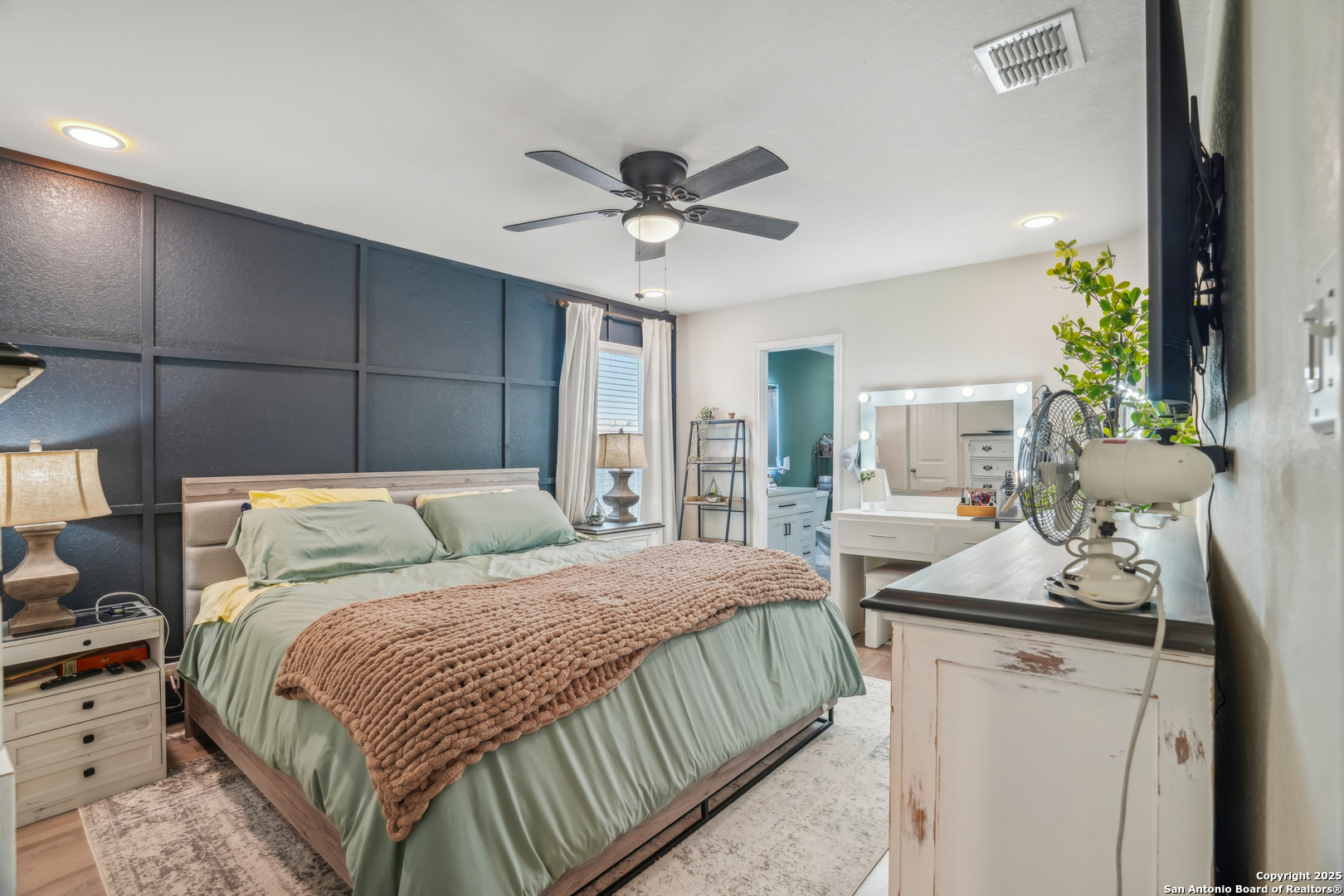 Discover the perfect blend of comfort, custom design, and community in this beautifully upgraded 1-story home featuring 3 bedrooms and 2 bathrooms. With stylish hard surface flooring throughout, every inch of this home has been thoughtfully curated for modern living. The inviting living room features custom built-in bookshelves with underlighting and a **custom-designed electric remote-controlled LED wall-mount fireplace**, creating a cozy and contemporary focal point that enhances both warmth and style. Throughout the home, you'll find **custom designer feature walls** that add character and a touch of luxury, complemented by upgraded fixtures that elevate each space.The spacious kitchen is a standout, offering generous cabinet and counter space, along with a large island that makes meal prep and entertaining a breeze.The oversized primary suite is bright, serene, and designed for relaxation, with a large walk-in closet to meet all your storage needs. Step outside to your private backyard oasis, where a **custom concrete patio spans almost the entire width of the home**, providing ample space for outdoor entertaining. A **custom fire pit** adds the perfect touch for evening gatherings and cool nights under the stars.Located in a vibrant and amenity-rich community where everything is within walking distance, you can **cancel your gym membership** and enjoy the **on-site fitness center** equipped with treadmills, ellipticals, weights, and more. Keep the little ones entertained at the **neighborhood splash pads**, cool off at the **community pool**, or shoot hoops at the **full-court basketball court**. Conveniently located near Loop 1604 and Hwy 90, you're just minutes from shopping, dining, and entertainment options. Don't miss your chance to make this custom-upgraded property your new home!