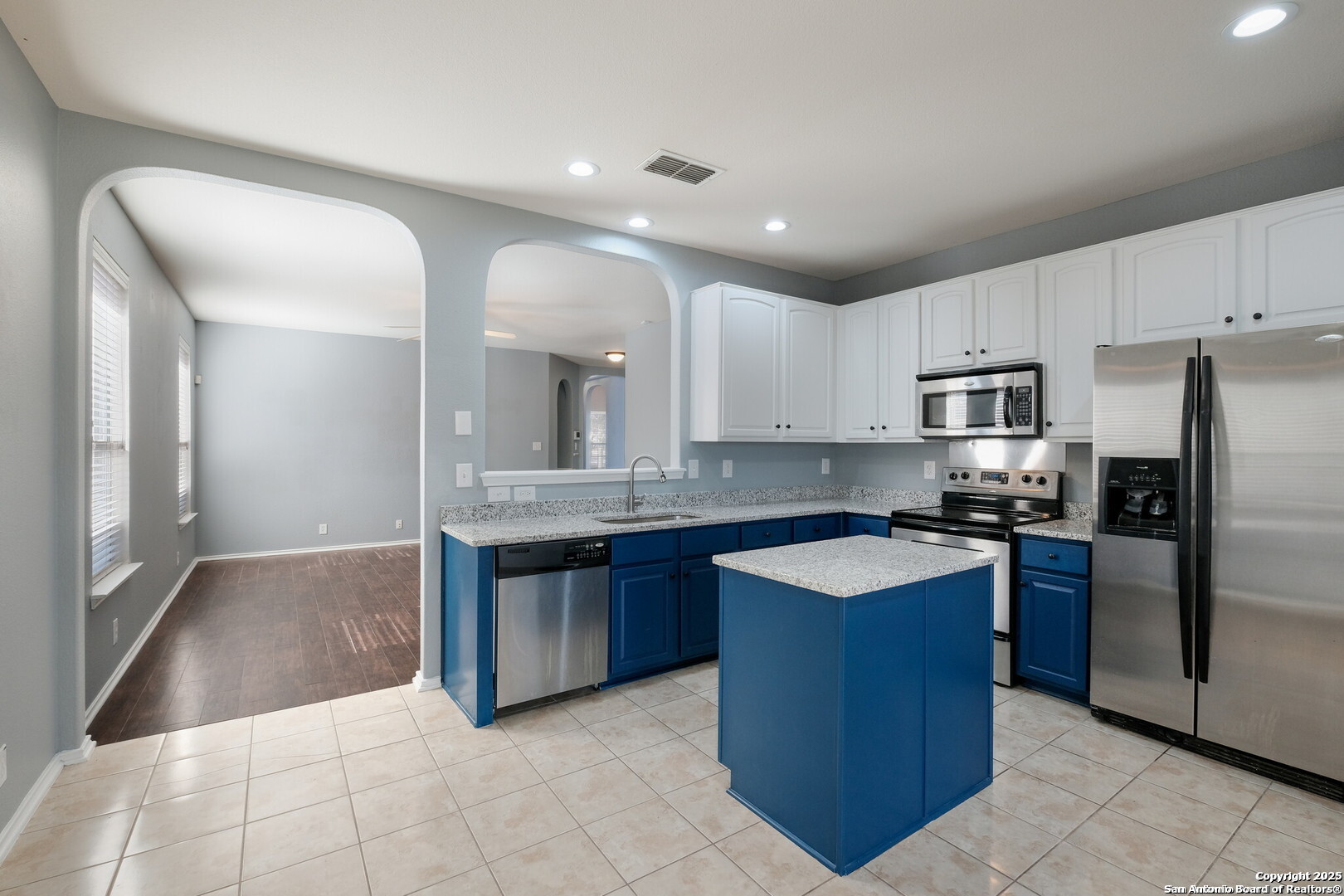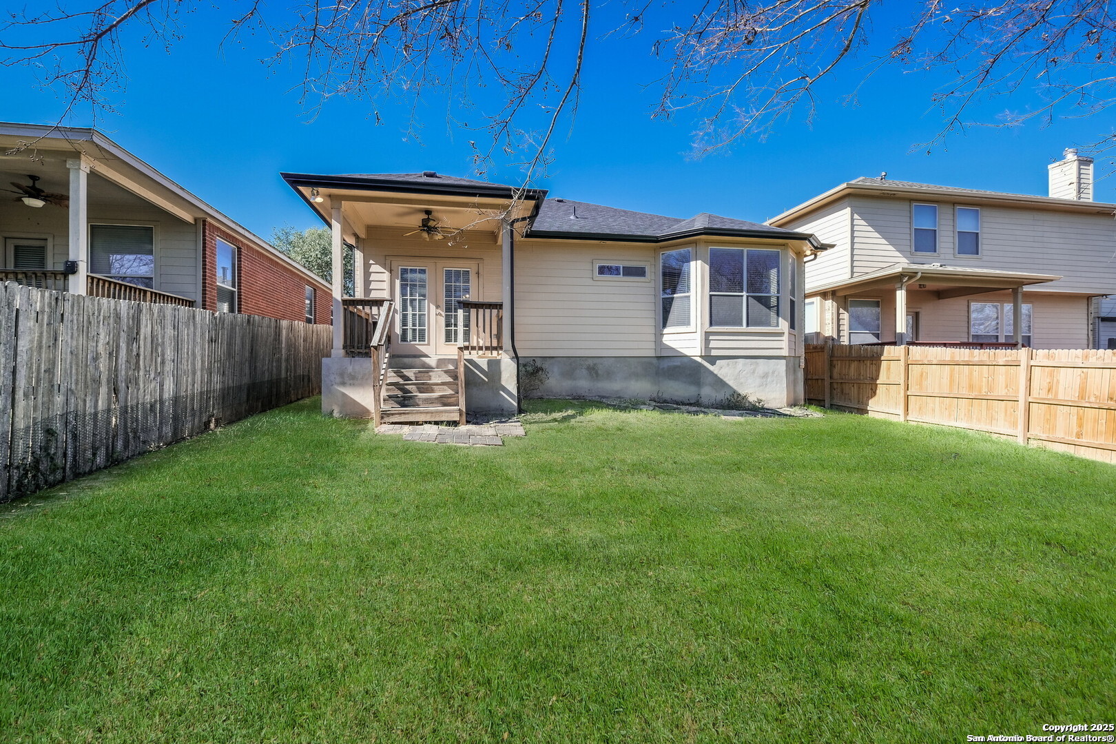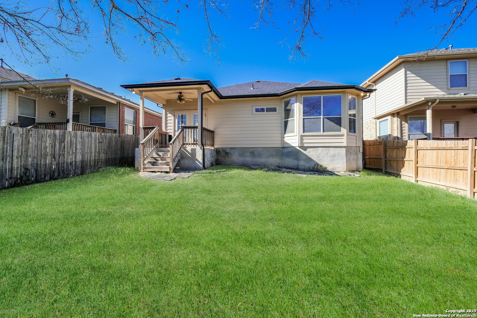 Rare single-story opportunity in highly desirable Alamo Ranch! This is the lowest-priced home available and move-in ready. Stunning curb appeal leads to a dramatic entry hall and an open-concept floor plan featuring stylish, updated kitchen with island, solid countertops, and stainless steel appliances. A versatile study can easily function as a nursery, media room, or fourth bedroom. Home includes a covered patio, recessed lighting, ceiling fans in all rooms, and front/rear gutters. Plumbed for water softener. Zoned to award-winning Northside ISD near top-tier shopping, dining, and growth. Schedule your showing now!