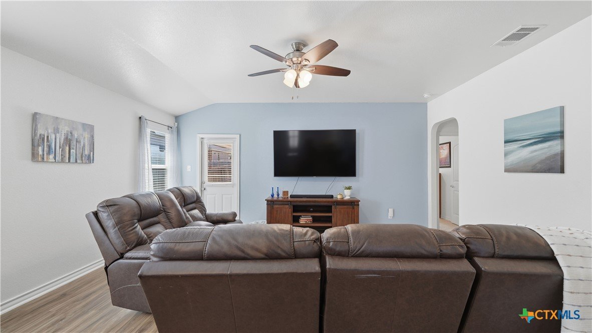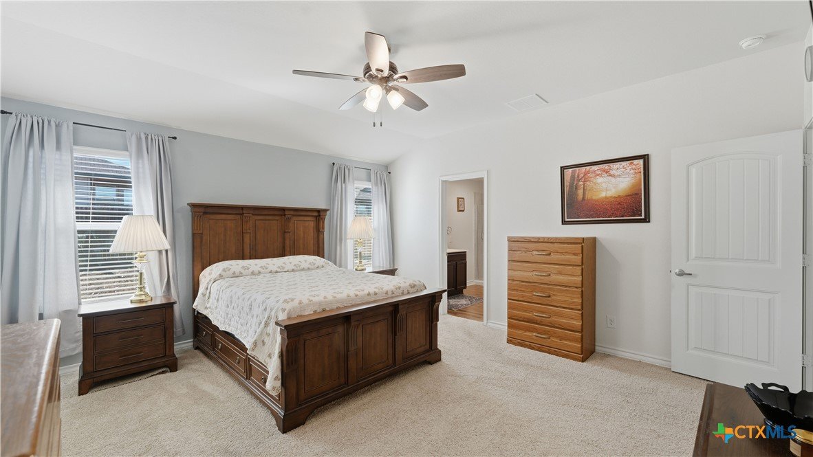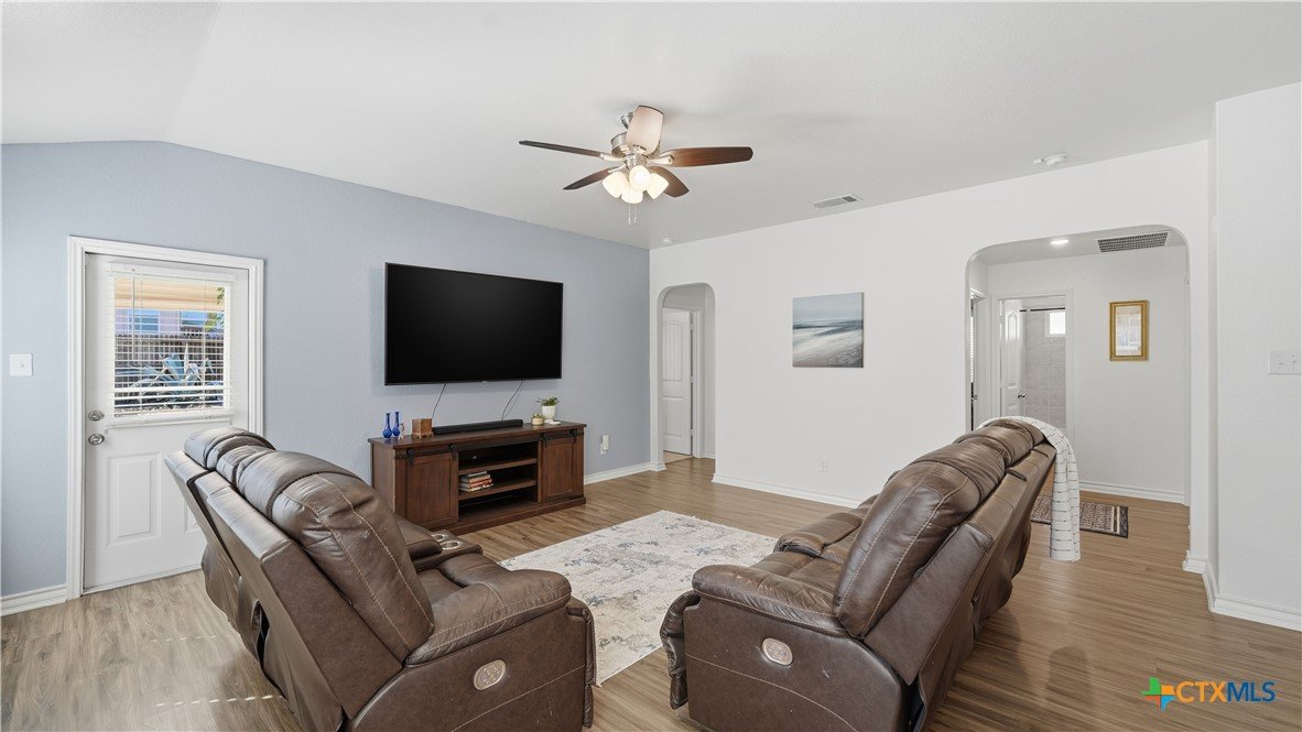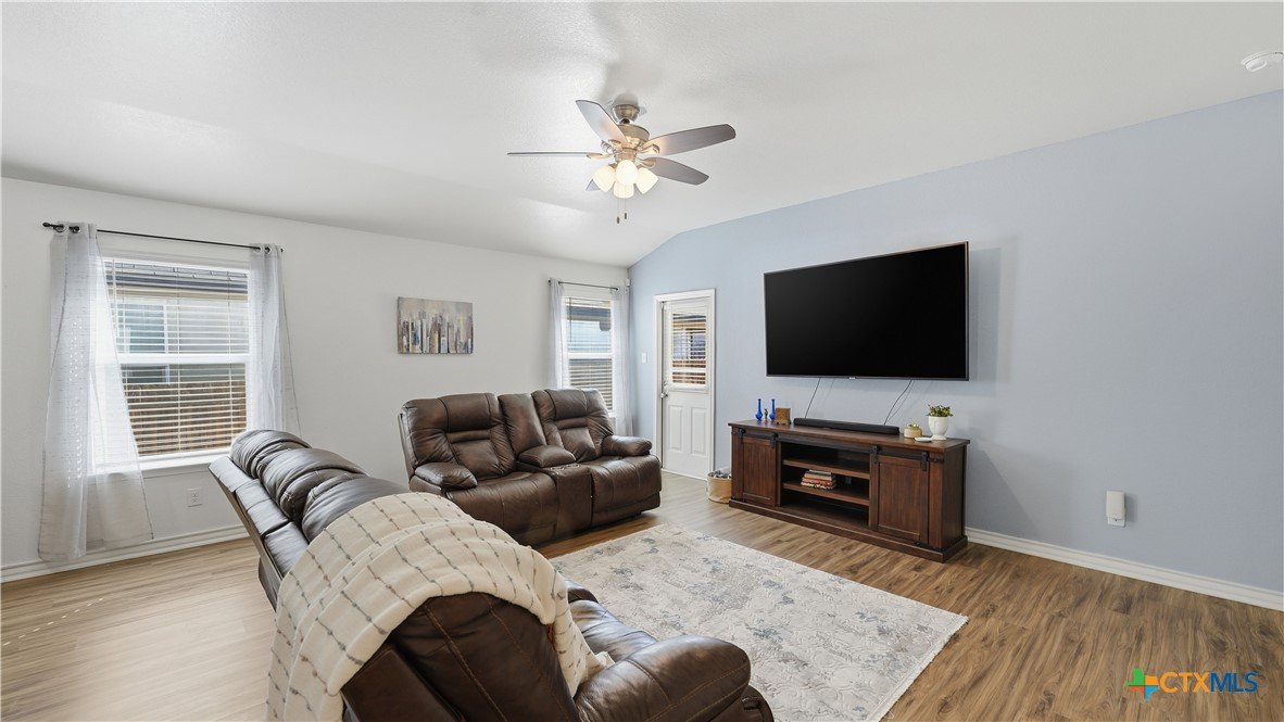 Welcome to The Hoffman Haven at Whisper Falls, an energy-efficient home offering modern comfort and a true sense of community in one of San Antonio's most convenient locations. Located just off Highway 90, this home provides easy access to Lackland Air Force Base, Downtown San Antonio, Loop 410, Loop 1604, and major thoroughfares, making everyday life feel connected and accessible while still allowing you to come home to a peaceful neighborhood setting. Inside, the home has been thoughtfully enhanced for both comfort and efficiency. A solar panel system supports long-term energy savings, while smart home features add convenience and control to everyday living. A full water softener system and reverse osmosis filtration system provide high-quality water throughout the home. Fresh interior paint, updated cabinet hardware, and recessed lighting create a clean, welcoming atmosphere that feels cared for and truly ready for its next chapter. The primary suite features dual vanities with a separate soaking tub and shower, offering a private space to unwind at the end of the day. Additional features include an irrigation system, exterior solar lighting, garage shelving, and stained fencing that adds both privacy and curb appeal, all designed to simplify everyday routines. Living in Whisper Falls means enjoying more than just a home, it means enjoying the rhythm of the neighborhood. Residents have access to a resort-style pool, splash pad, playground, basketball court, fully equipped gym, and an amenity center with reservable event space. The community entrance and amenities are within walking distance, and a large fenced dog park for dogs of all sizes is just a short 10 to 15 minute stroll away. This is a home designed for everyday living where connection, comfort, and community come together. A place to gather, to grow, and to simply come home.