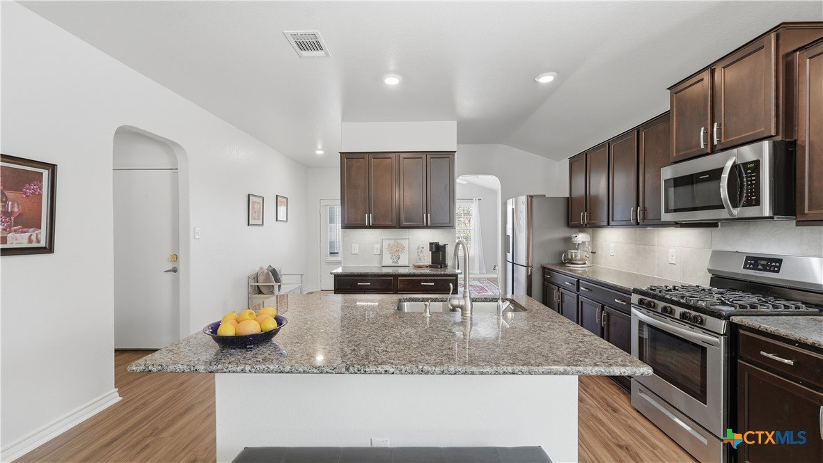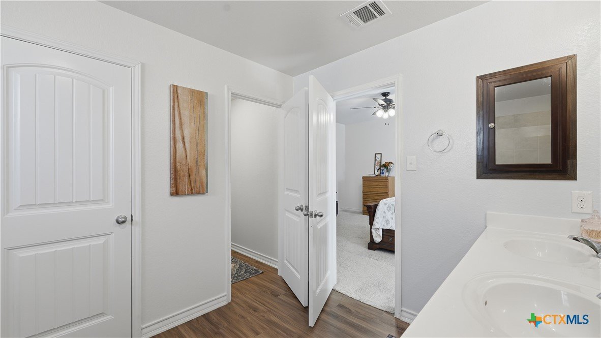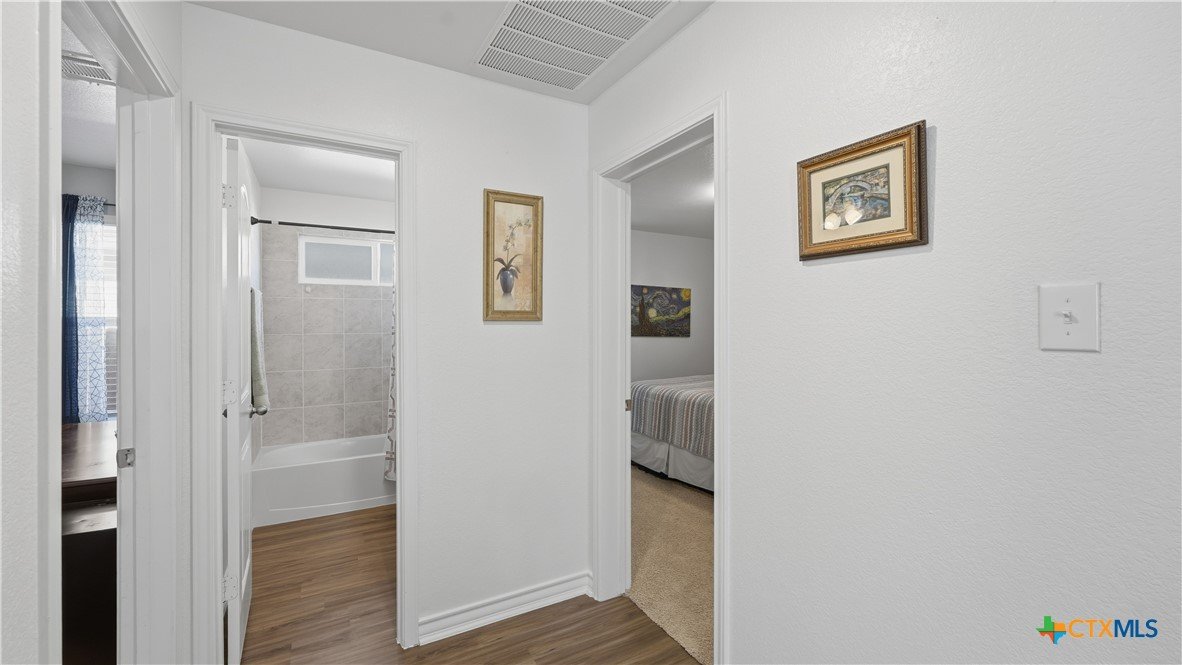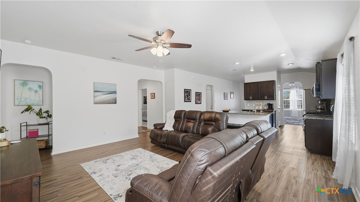 Welcome to The Hoffman Haven at Whisper Falls, an energy-efficient home offering modern comfort and a true sense of community in one of San Antonio's most convenient locations. Located just off Highway 90, this home provides easy access to Lackland Air Force Base, Downtown San Antonio, Loop 410, Loop 1604, and major thoroughfares, making everyday life feel connected and accessible while still allowing you to come home to a peaceful neighborhood setting. Inside, the home has been thoughtfully enhanced for both comfort and efficiency. A solar panel system supports long-term energy savings, while smart home features add convenience and control to everyday living. A full water softener system and reverse osmosis filtration system provide high-quality water throughout the home. Fresh interior paint, updated cabinet hardware, and recessed lighting create a clean, welcoming atmosphere that feels cared for and truly ready for its next chapter. The primary suite features dual vanities with a separate soaking tub and shower, offering a private space to unwind at the end of the day. Additional features include an irrigation system, exterior solar lighting, garage shelving, and stained fencing that adds both privacy and curb appeal, all designed to simplify everyday routines. Living in Whisper Falls means enjoying more than just a home, it means enjoying the rhythm of the neighborhood. Residents have access to a resort-style pool, splash pad, playground, basketball court, fully equipped gym, and an amenity center with reservable event space. The community entrance and amenities are within walking distance, and a large fenced dog park for dogs of all sizes is just a short 10 to 15 minute stroll away. This is a home designed for everyday living where connection, comfort, and community come together. A place to gather, to grow, and to simply come home.