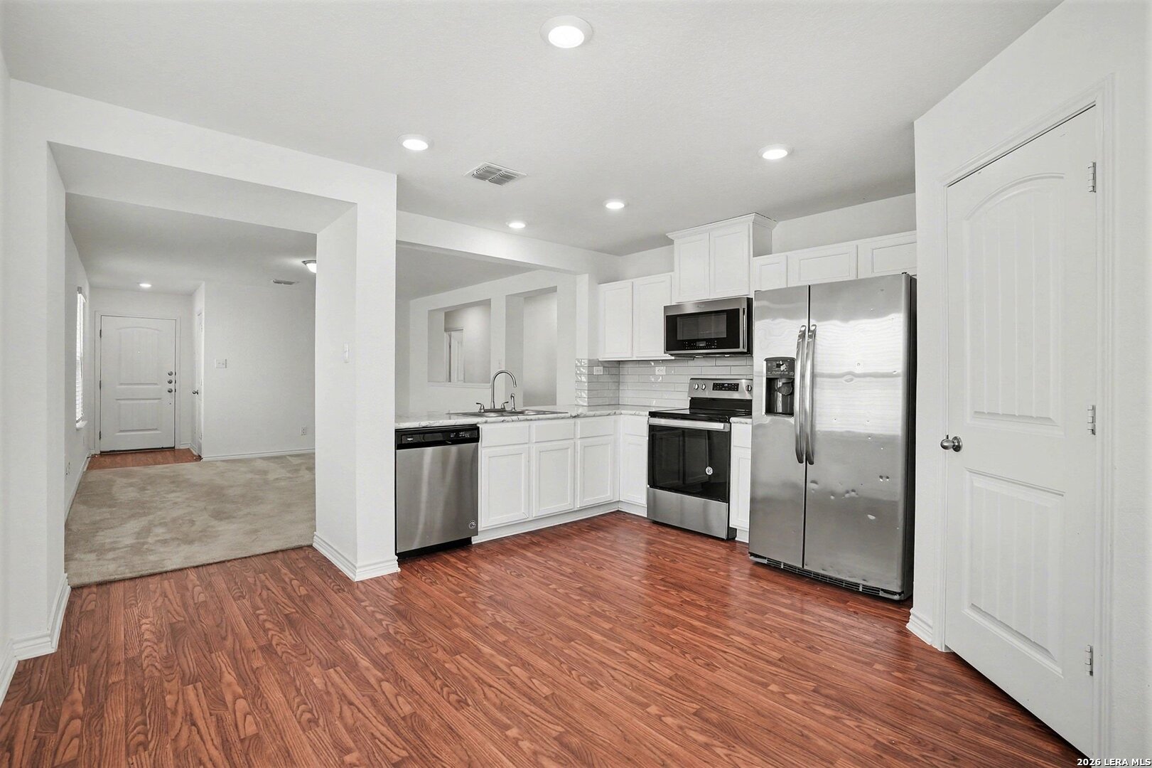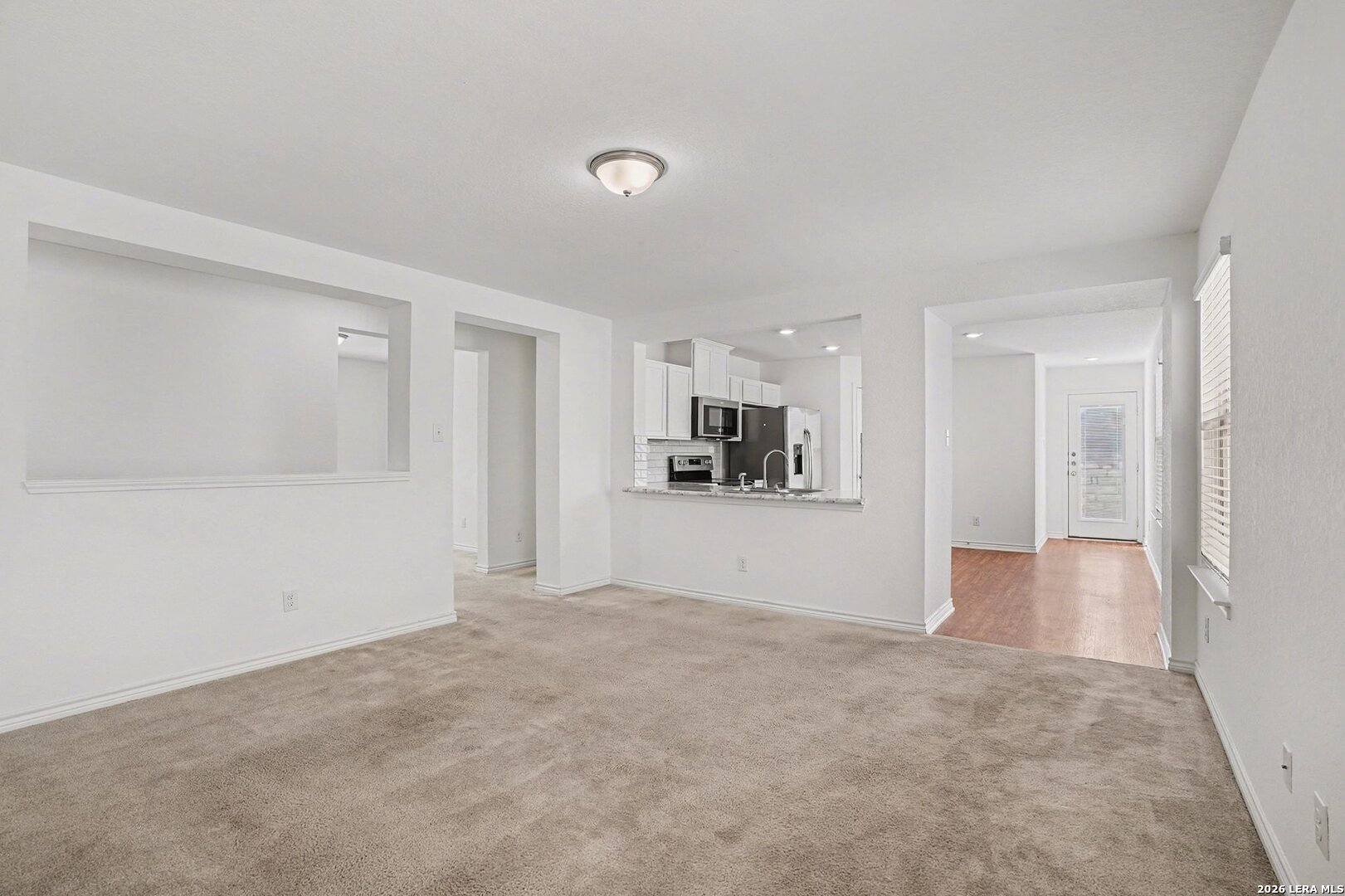 Welcome home to this beautifully maintained, one-story residence in the desirable Heritage Park at Morningside community of New Braunfels. Built in 2020, this 3-bedroom, 2-bath home offers an open-concept layout designed for comfortable everyday living and easy entertaining. The bright living area flows seamlessly into the kitchen, featuring stainless steel appliances, breakfast bar seating, recessed lighting, and ample cabinet and counter space. The private primary suite includes a double vanity and generous closet space, while two additional bedrooms provide flexibility for guests, family, or a home office. Enjoy outdoor living in the privacy-fenced backyard with covered patio, perfect for relaxing or hosting gatherings. Additional features include interior utility connections, modern finishes, and a two-car garage. Ideally located just minutes from I-35, shopping, dining, and entertainment, this home also offers close proximity to Morningside Park with walking trails, playgrounds, and open green space. Convenient access to historic Gruene, downtown New Braunfels, Landa Park, and area rivers makes this location hard to beat. Move-in ready and thoughtfully designed, this home offers an excellent opportunity to enjoy low-maintenance living in one of New Braunfels' most convenient communities. Schedule your showing today.