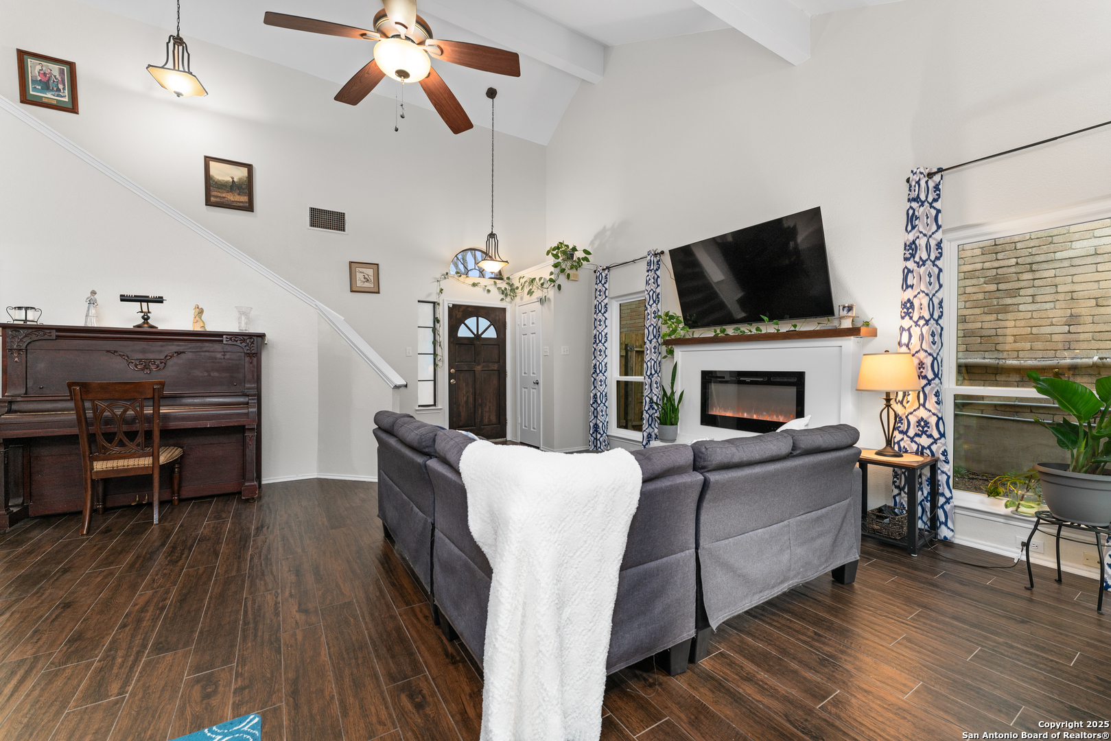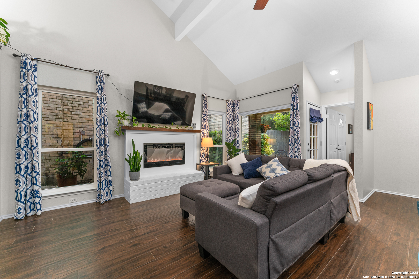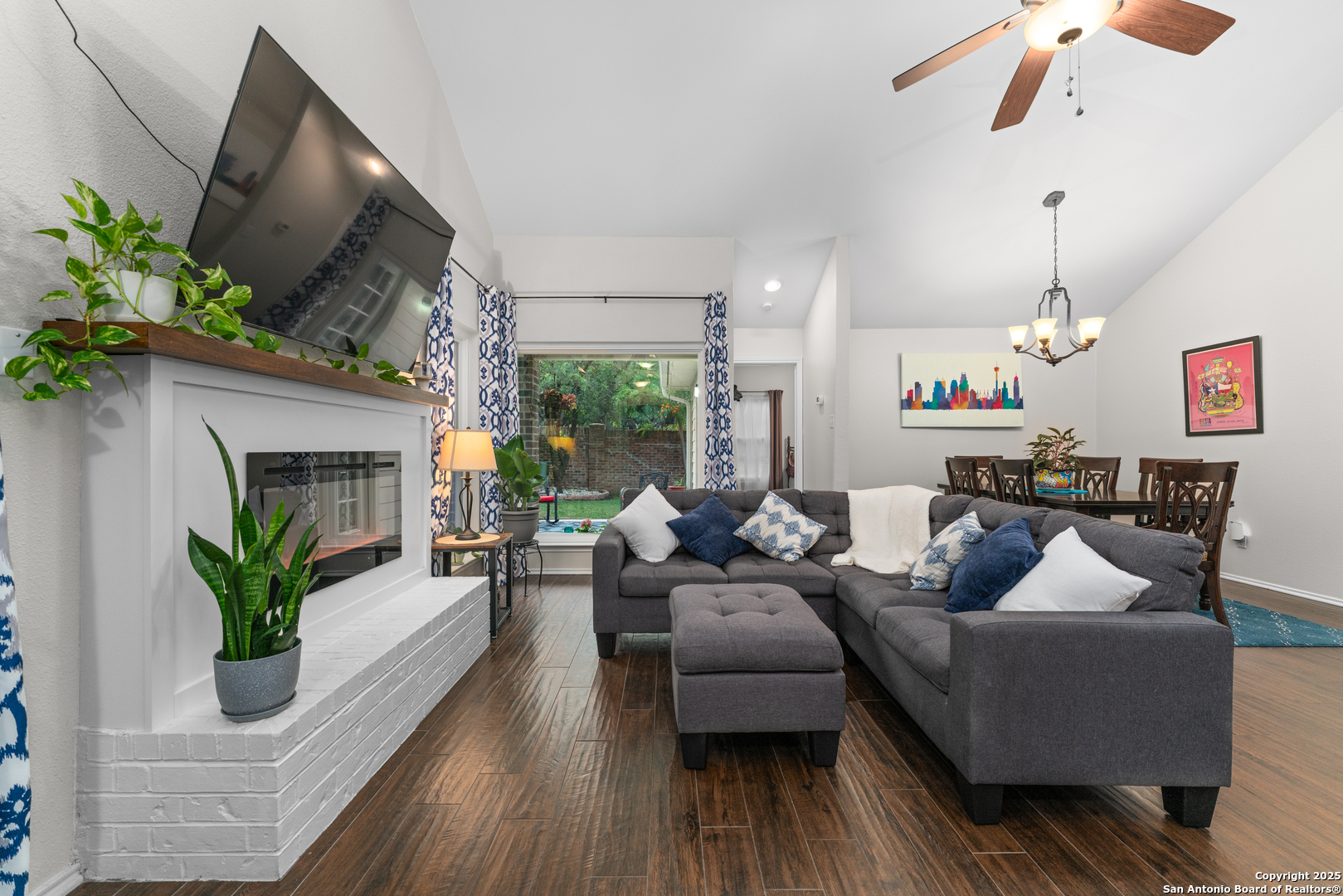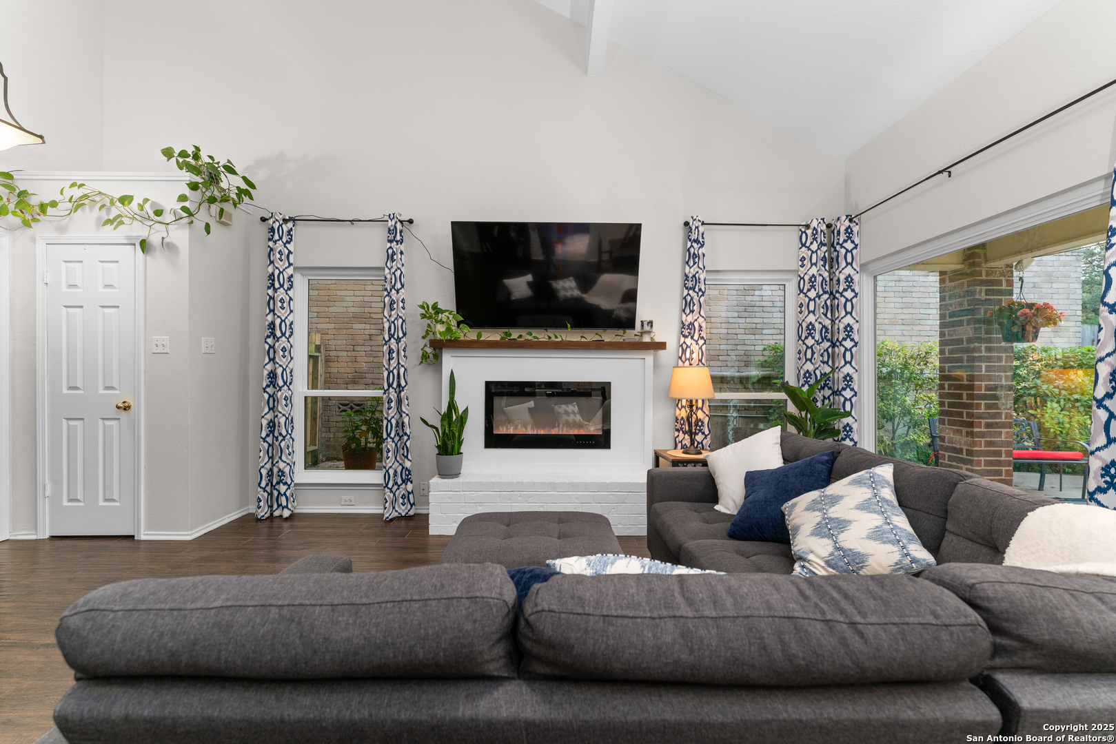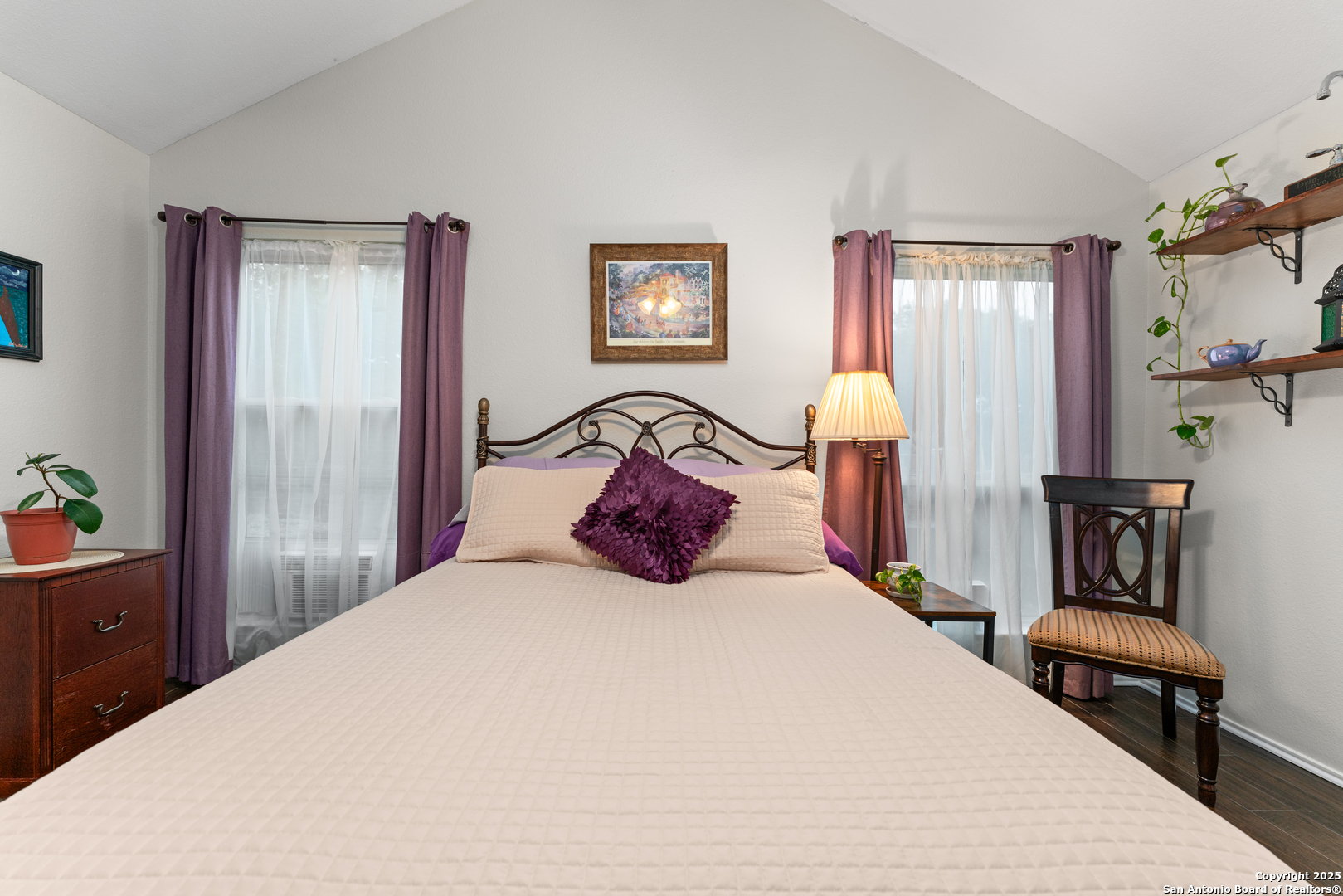 Beautiful Gem Near Medical Center. Recent upgrades include a newly designed kitchen with custom cabinetry and stunning granite countertops, as well as a nicely remodeled primary bathroom. Elegant tile flooring in the main areas of the home. Handsome electric fireplace in the serene vaulted ceiling living room. One-of-a-kind, picturesque family room wall of windows for splendid natural lighting throughout the home. The primary bedroom has its own entry to the oasis backyard retreat. Magnificently designed zero-scape front/backyard for minimal maintenance. Heavy-duty shingles, gutters, and a water softener system. Cathedral ceiling primary bedroom downstairs and a loft with two spacious bedrooms upstairs, and a full bathroom. A meticulously taken care of home ready for a new family to enjoy beautiful moments in life. Located in San Antonio's renowned Medical Center, you're just minutes away from world-class healthcare facilities - Methodist Hospital, UT Health Sciences Center, Christus Santa Rosa Hospital, educational institutions, shopping centers, and a diverse range of dining options. TV in the primary bedroom & living room conveys.