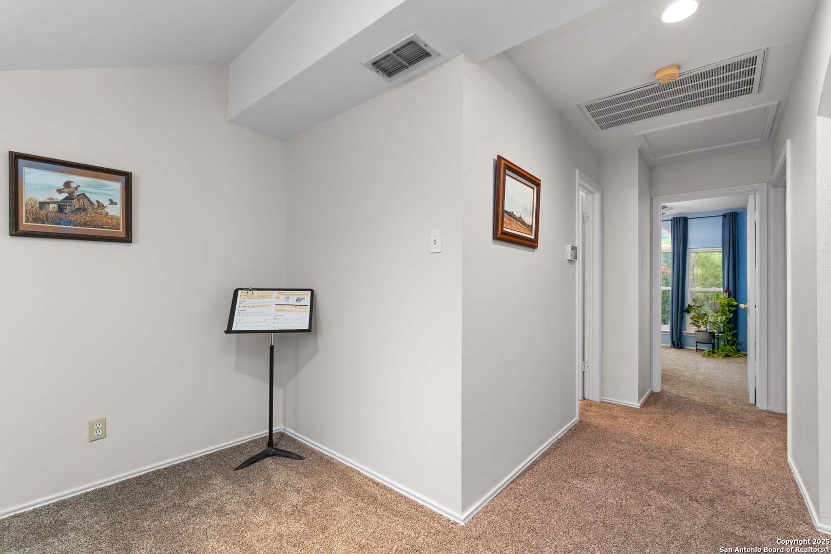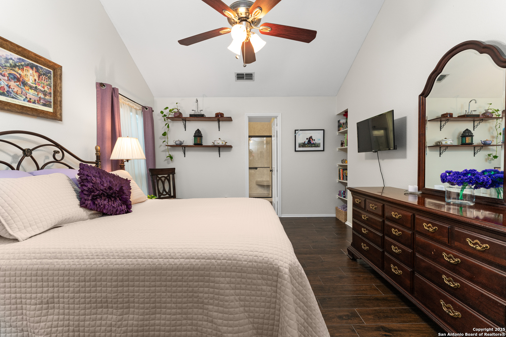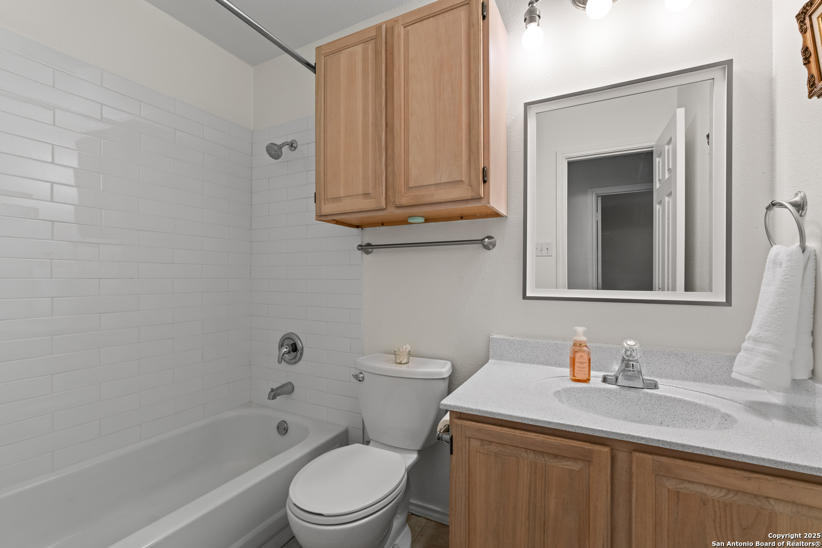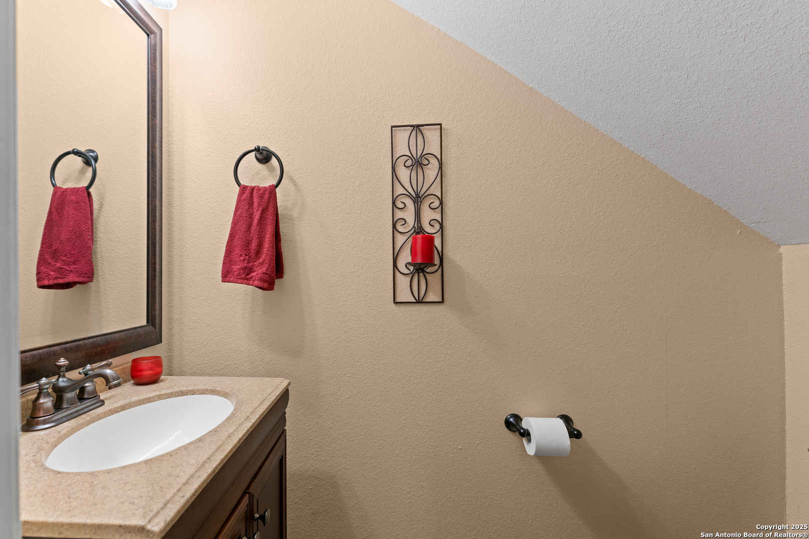 Beautiful Gem Near Medical Center. Recent upgrades include a newly designed kitchen with custom cabinetry and stunning granite countertops, as well as a nicely remodeled primary bathroom. Elegant tile flooring in the main areas of the home. Handsome electric fireplace in the serene vaulted ceiling living room. One-of-a-kind, picturesque family room wall of windows for splendid natural lighting throughout the home. The primary bedroom has its own entry to the oasis backyard retreat. Magnificently designed zero-scape front/backyard for minimal maintenance. Heavy-duty shingles, gutters, and a water softener system. Cathedral ceiling primary bedroom downstairs and a loft with two spacious bedrooms upstairs, and a full bathroom. A meticulously taken care of home ready for a new family to enjoy beautiful moments in life. Located in San Antonio's renowned Medical Center, you're just minutes away from world-class healthcare facilities - Methodist Hospital, UT Health Sciences Center, Christus Santa Rosa Hospital, educational institutions, shopping centers, and a diverse range of dining options. TV in the primary bedroom & living room conveys.