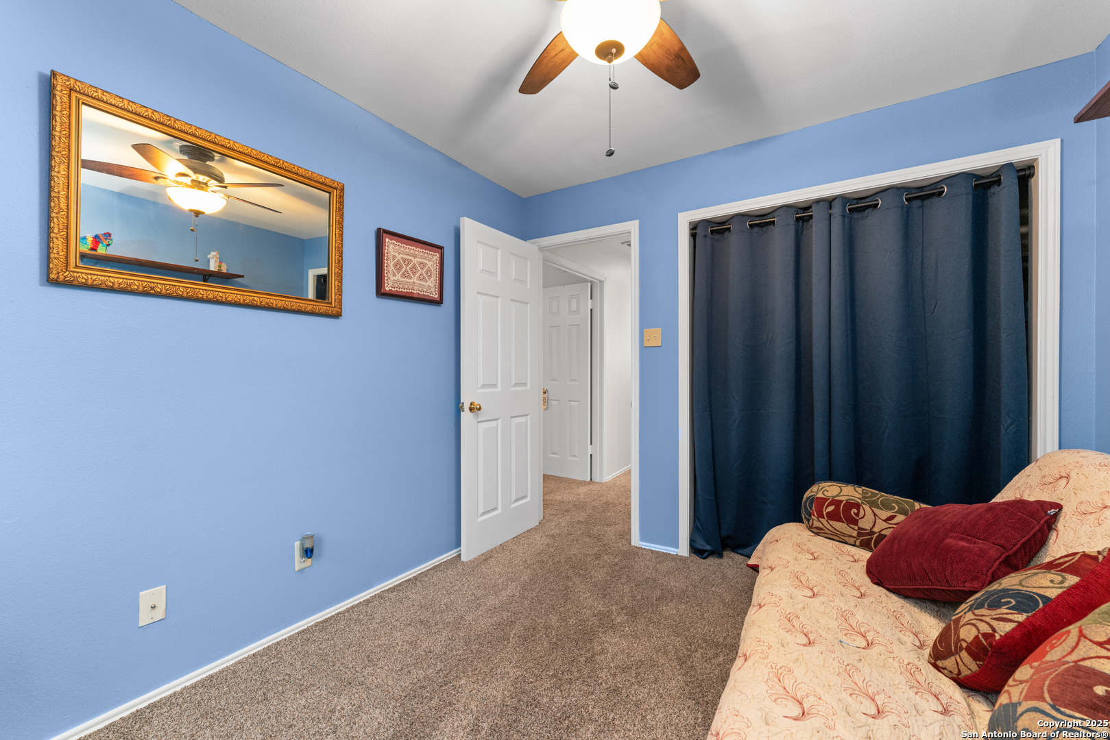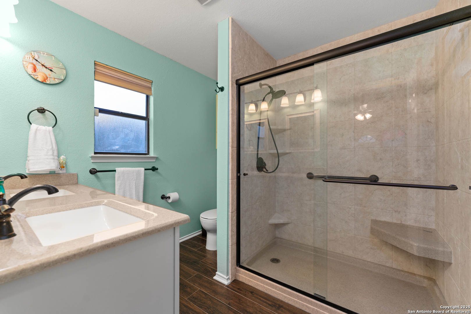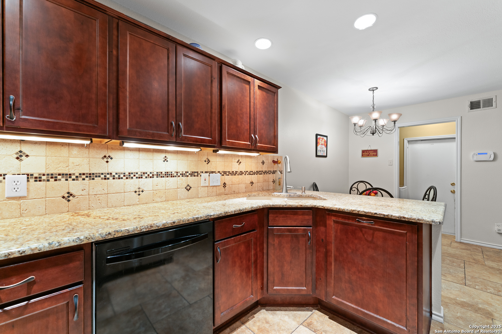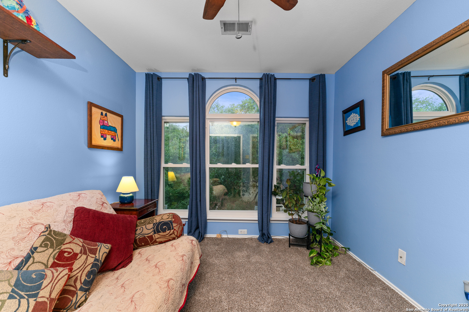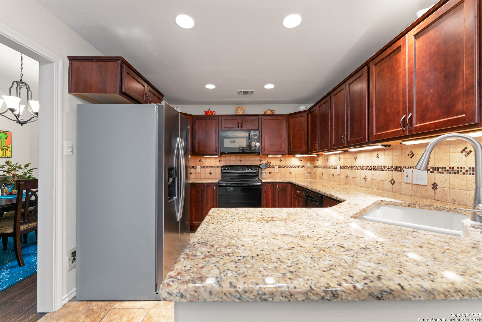 Beautiful Gem Near Medical Center. Recent upgrades include a newly designed kitchen with custom cabinetry and stunning granite countertops, as well as a nicely remodeled primary bathroom. Elegant tile flooring in the main areas of the home. Handsome electric fireplace in the serene vaulted ceiling living room. One-of-a-kind, picturesque family room wall of windows for splendid natural lighting throughout the home. The primary bedroom has its own entry to the oasis backyard retreat. Magnificently designed zero-scape front/backyard for minimal maintenance. Heavy-duty shingles, gutters, and a water softener system. Cathedral ceiling primary bedroom downstairs and a loft with two spacious bedrooms upstairs, and a full bathroom. A meticulously taken care of home ready for a new family to enjoy beautiful moments in life. Located in San Antonio's renowned Medical Center, you're just minutes away from world-class healthcare facilities - Methodist Hospital, UT Health Sciences Center, Christus Santa Rosa Hospital, educational institutions, shopping centers, and a diverse range of dining options. TV in the primary bedroom & living room conveys.