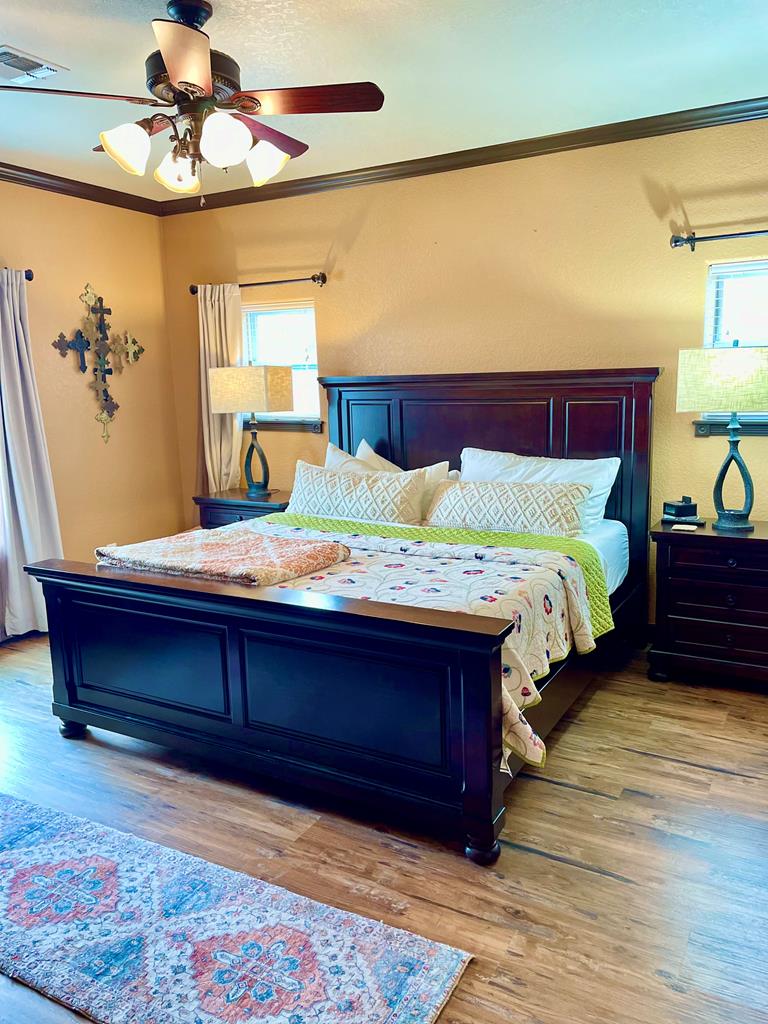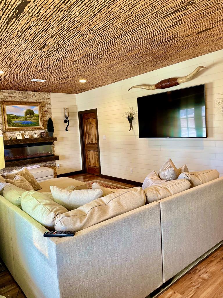 The Sellers are motivated to sell. "BRING ALL OFFERS". Spacious Barndominium on beautiful 24+- country acreage w/captivating features less than 3 mi from Main St where you can enjoy the amenities of shopping, restaurants, tasting rooms, vineyards, & art galleries for which Fredericksburg is famous. Interior features include open concept living area highlighted by ship lapped walls, corked ceiling, & electric fireplace. Dining room offers views of large pond. Open kitchen includes plenty of storage, counter space, & pantry. A custom home office with built-ins & a spacious master w/ensuite bathroom completes the downstairs space. Upstairs, 2 bedrooms w/separate living rooms & ensuite baths w/ a sitting area in between that hosts a dining table & bar w/refrigerator lead onto full deck that captures expansive views of the amazing property that includes 2 ponds, a seasonal creek, firepit, mature trees, diverse wildlife, & stunning sunsets. Attached garage large enough for a RV is included. Estate is ag exempt located in ETJ. This minimally restricted property has great commercial possibilities. STR, cabins, event space, horse barn/pasture, tasting room, vineyard are just some of the many possibilities. Come see the potential.