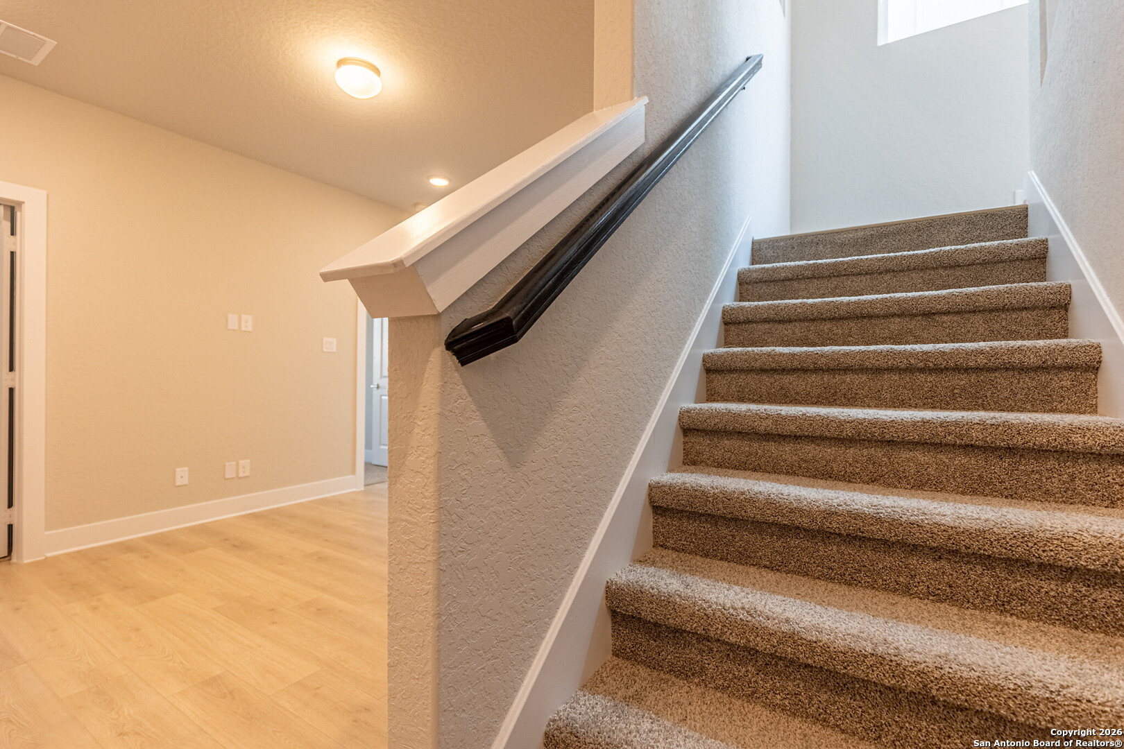Available Immediately! Additional Showing Options Available! Stunning two-story home in the popular Rose Hill community, ready for move-in! This modern and sleek residence offers a well-designed layout with a living area, two secondary bedrooms, a full bath, and a laundry room conveniently located on the first floor near the garage. Upstairs, you'll find the main living space featuring an open dining and living area, along with a spacious island kitchen complete with granite countertops, stainless steel appliances, a pantry, and ample storage. The primary suite includes a full bath with dual vanities and a large walk-in closet. Enjoy a backyard ideal for outdoor activities. Ideally situated near the Medical Center, UTSA, La Cantera, The Rim, Fiesta Texas, and much more.