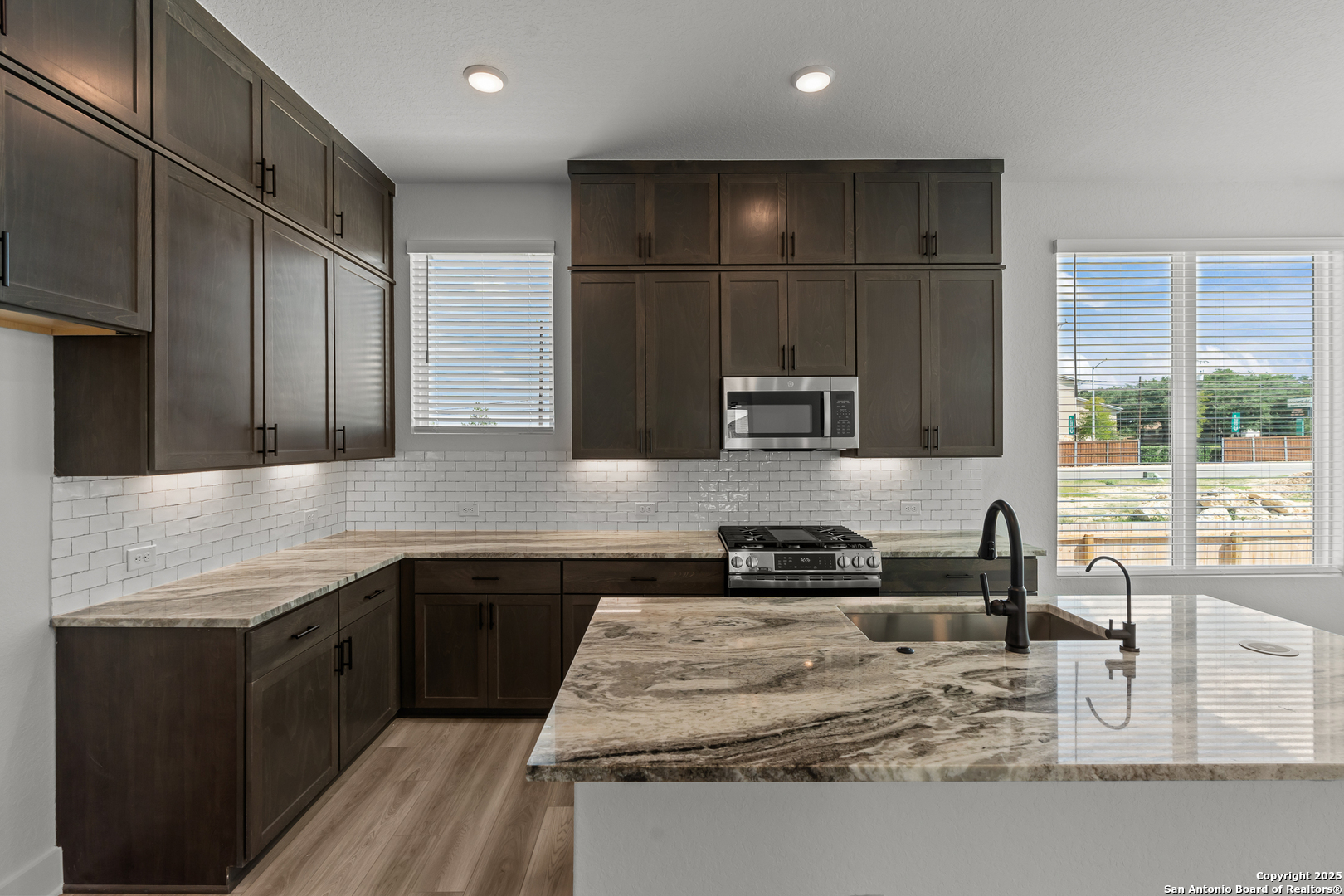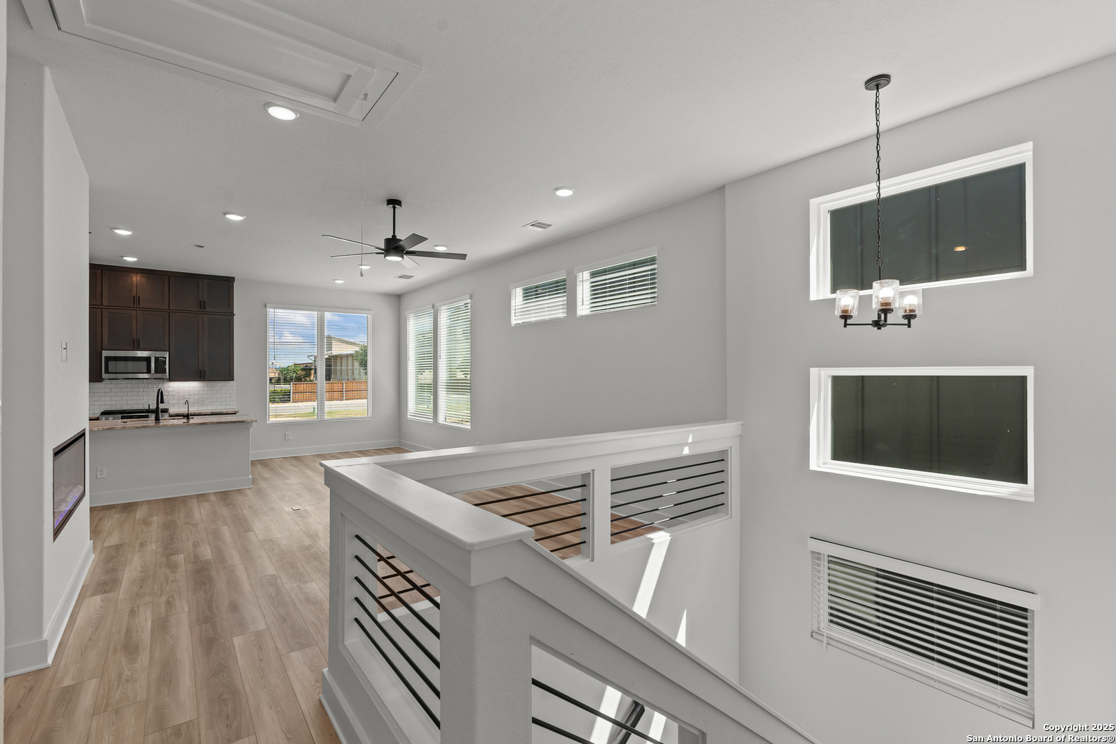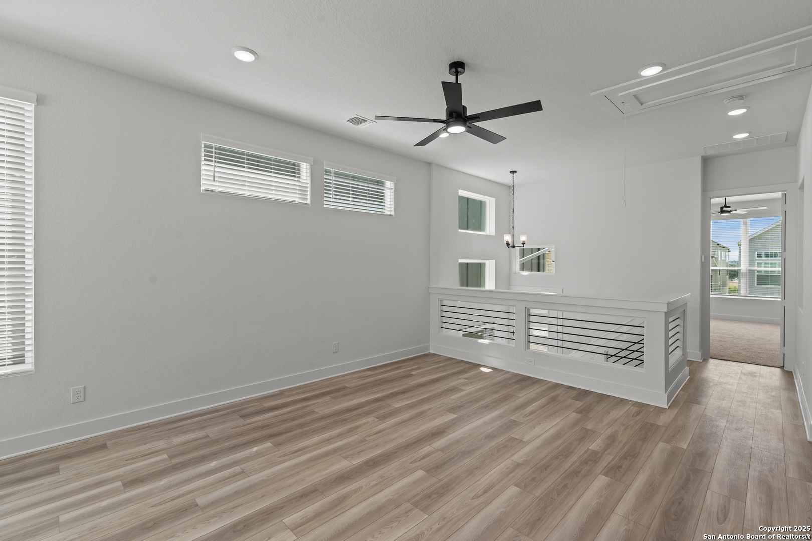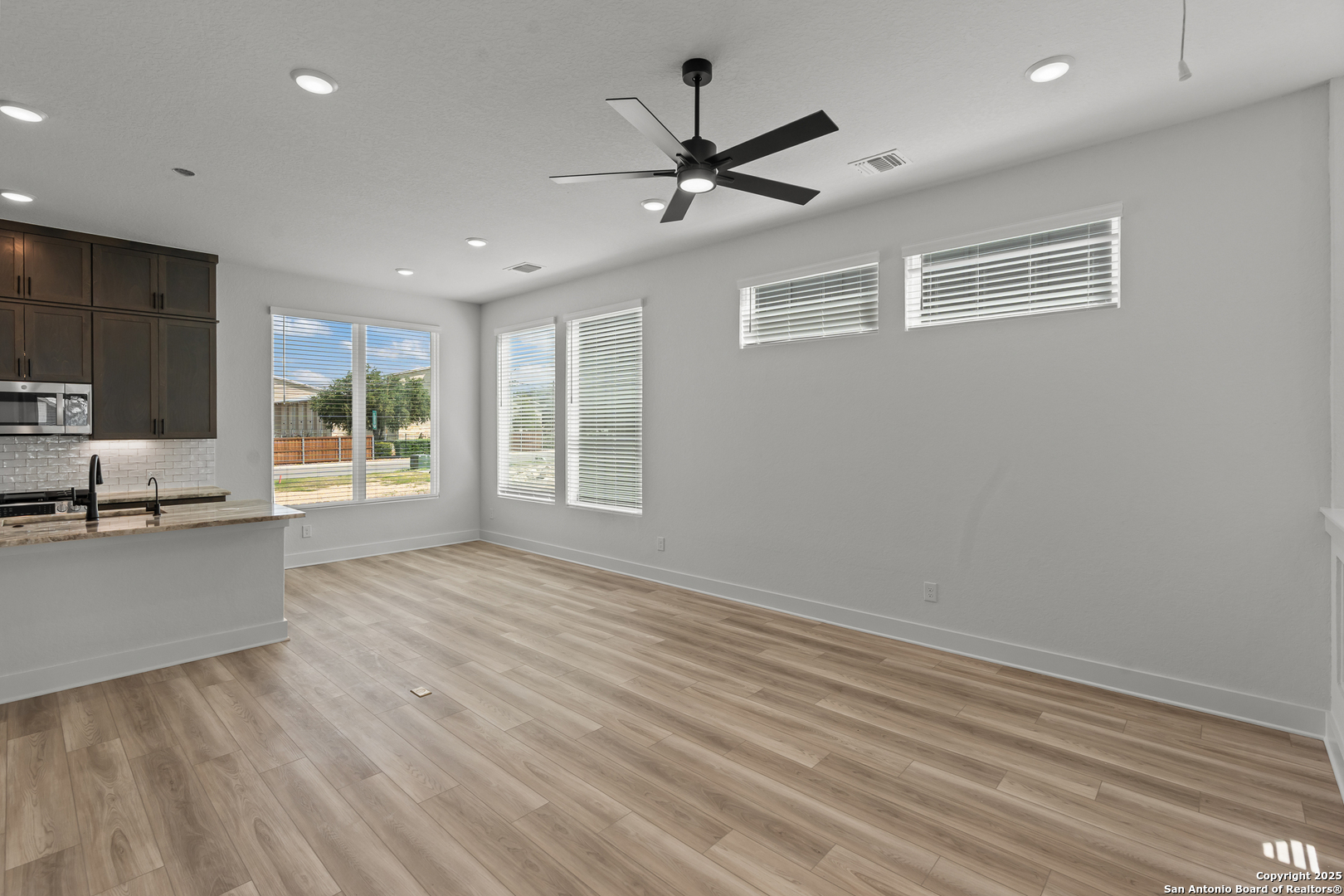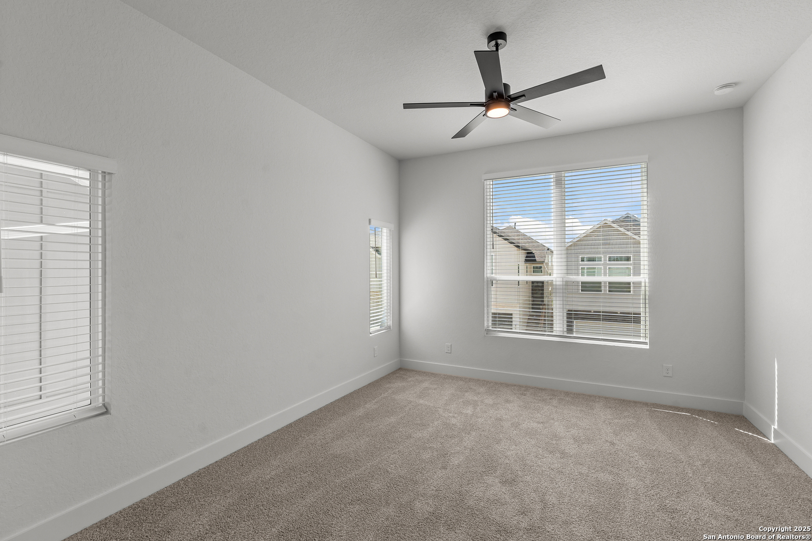Move in Ready! Beautiful Home on a corner lot very Close to the Medical Center, UTSA, USAA and More! Two-story home with 3 bedrooms, 2.5 baths, 2-car garage, first floor covered patio, plus a giant flex room is the most popular plan in the neighborhood! The open concept, second floor kitchen overlooks the family room and a dining room framed by extra-large windows. The master suite boasts TWO walk-in closets, a double vanity, and walk-in shower. The first-floor features two secondary bedrooms designed with plenty of space for kids or guests.
