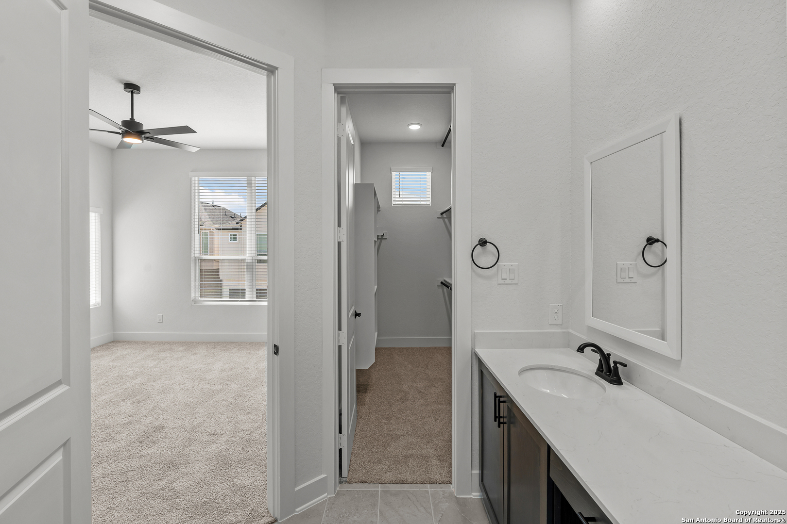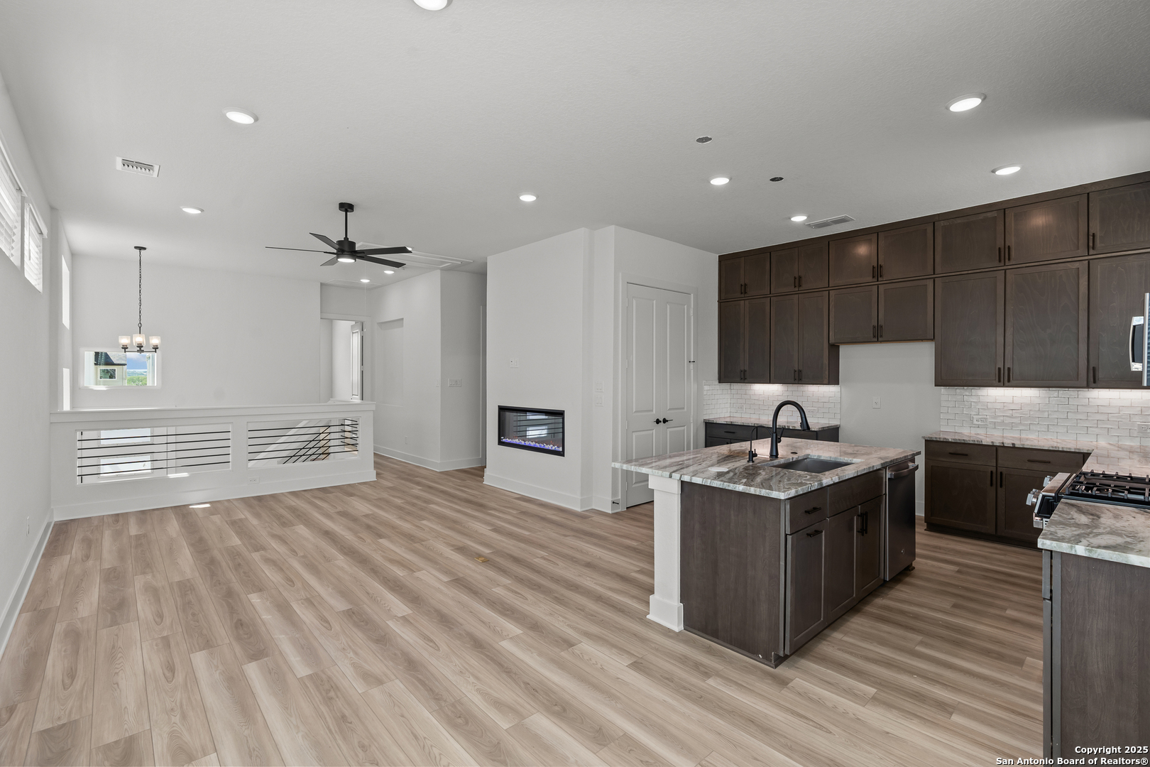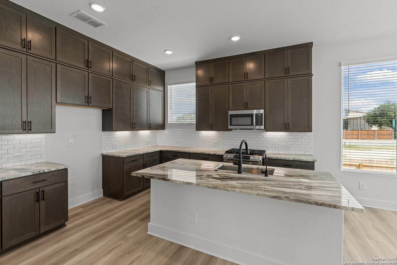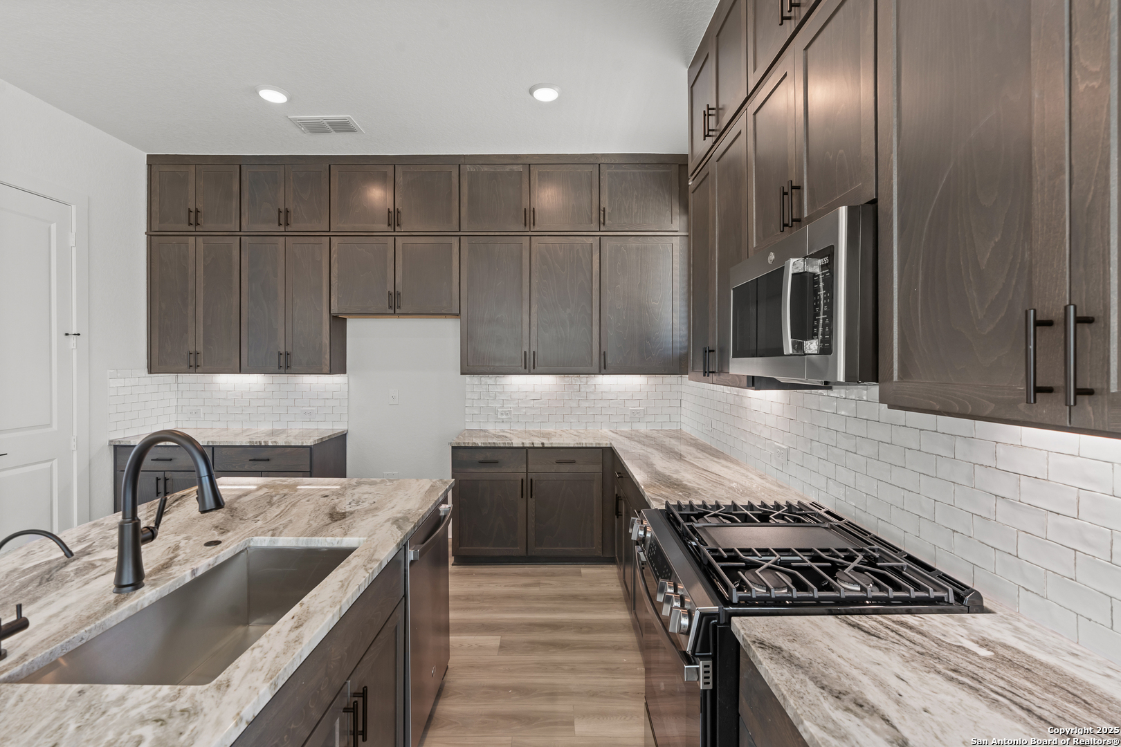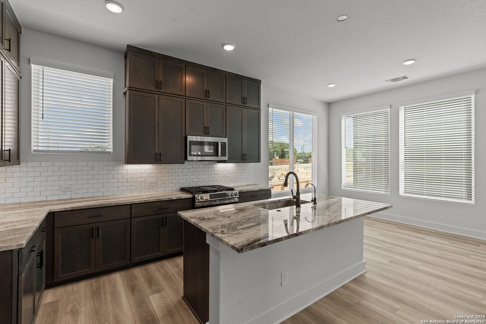 Move in Ready! Beautiful Home on a corner lot very Close to the Medical Center, UTSA, USAA and More! Two-story home with 3 bedrooms, 2.5 baths, 2-car garage, first floor covered patio, plus a giant flex room is the most popular plan in the neighborhood! The open concept, second floor kitchen overlooks the family room and a dining room framed by extra-large windows. The master suite boasts TWO walk-in closets, a double vanity, and walk-in shower. The first-floor features two secondary bedrooms designed with plenty of space for kids or guests.