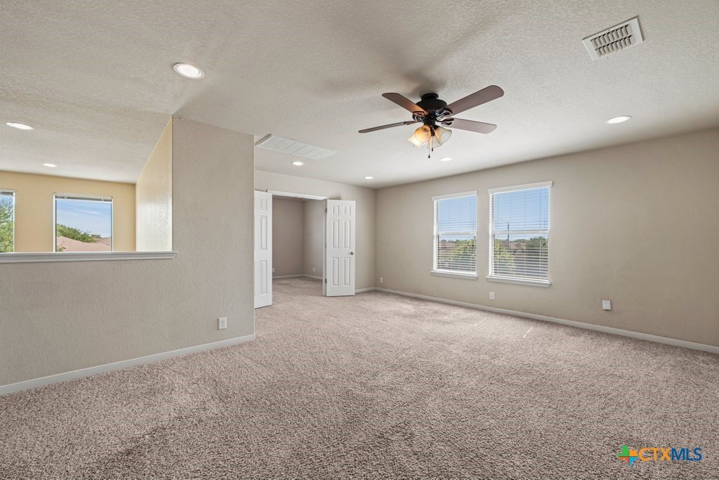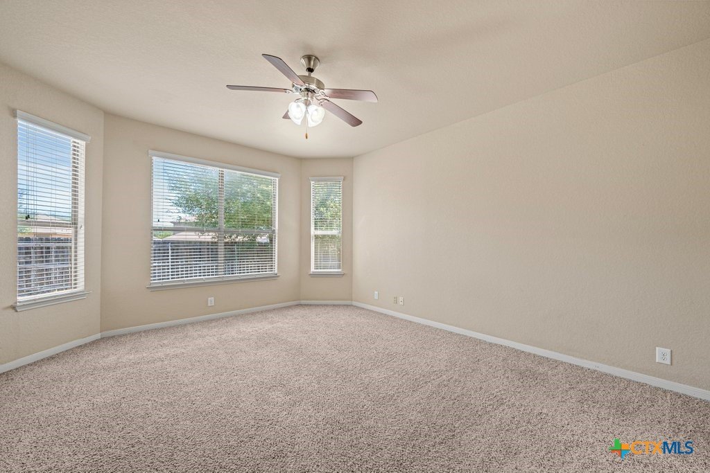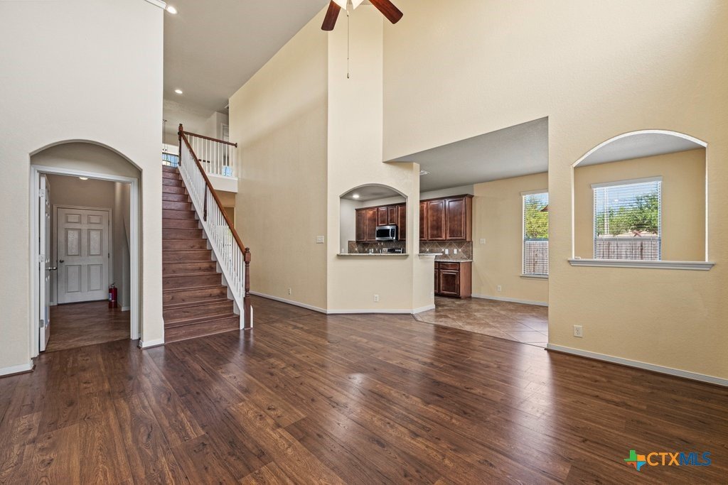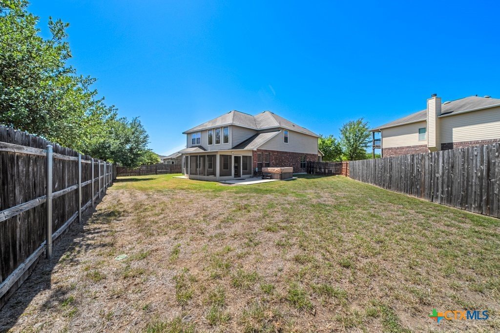Located in the Mockingbird Heights neighborhood of New Braunfels, 647 Osprey Ln is a spacious two-story home built in 2012. This residence offers 3,469 square feet of living space, featuring five bedrooms and four bathrooms (three full and one half). The main floor includes a primary suite, complete with an en-suite bathroom equipped with a separate tub and shower, as well as a double vanity. The kitchen is outfitted with modern appliances such as a microwave, range, and dishwasher, and opens to a dining area and two living spaces. Additional interior features include high ceilings, ceiling fans, Nest thermostats, and an owned reverse osmosis system. Situated on 0.25 acre lot, the property also boasts a three-car garage, now enhanced with an EV charging port. Outdoor living is elevated with a screened patio and a hot tub, ideal for both relaxation and entertaining. The home is also equipped with AT&T fiber internet, ensuring high-speed connectivity for work or streaming. Conveniently located near Walnut Springs Elementary School, New Braunfels Middle School, and New Braunfels High School, this home blends comfort, technology, and functionality in a sought-after community.