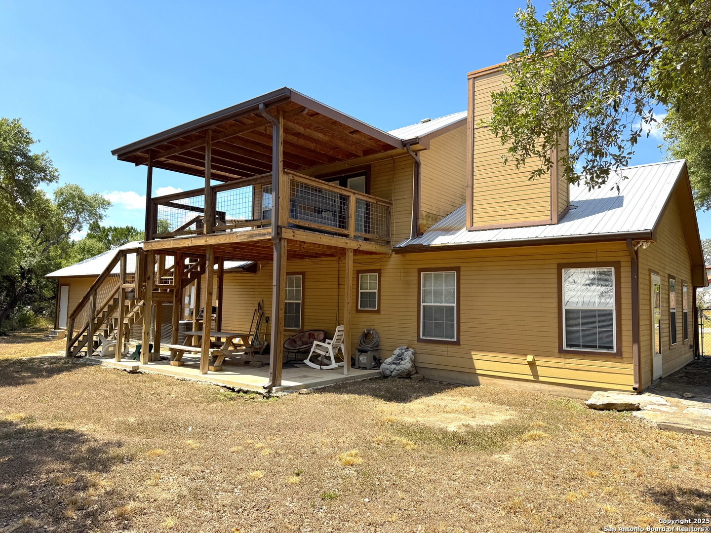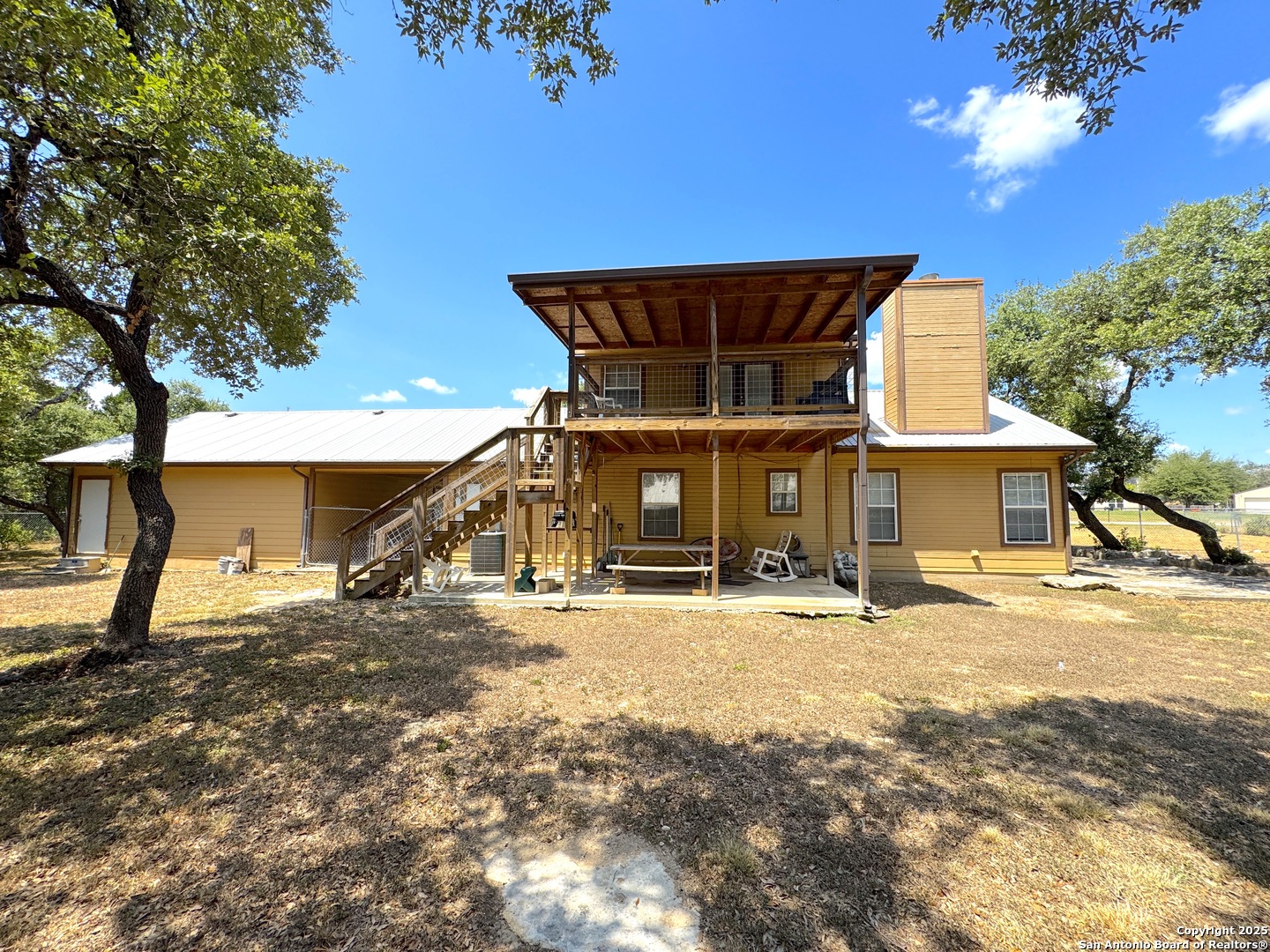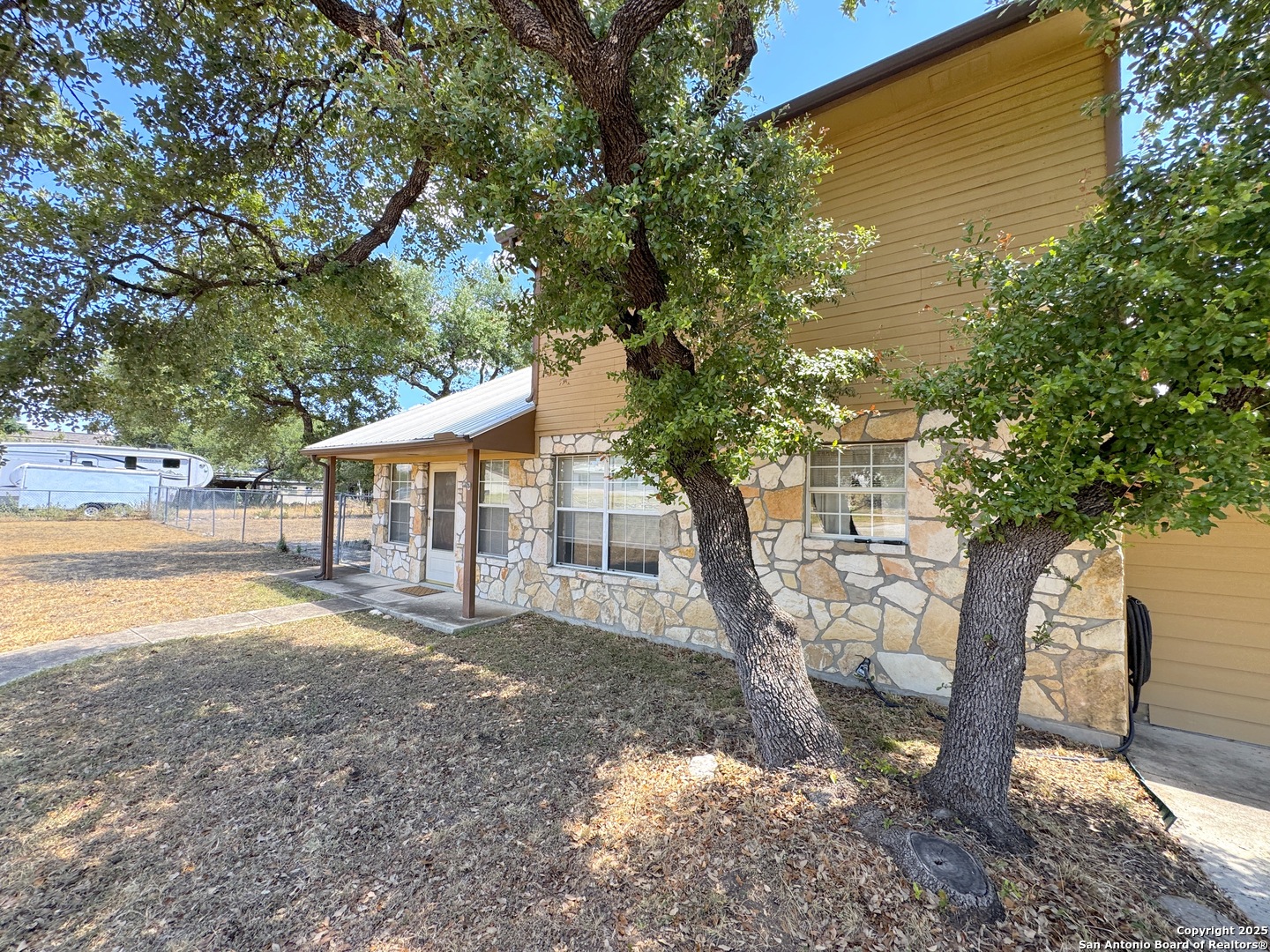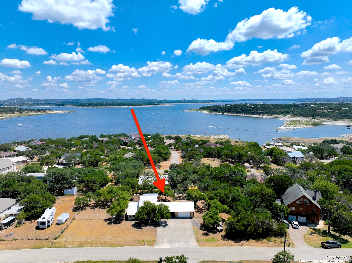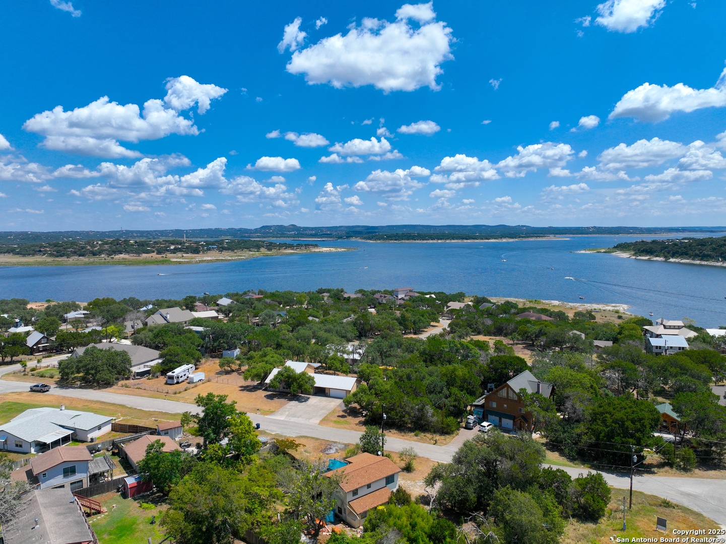 Settled in the heart of Canyon Lake, this charming home sits on a rare double lot, spanning over half an acre with an impressive 120 feet of width. This spacious property offers not only extra room for parking and outdoor enjoyment but also a detached two-car garage, a carport and a storage shed for all your lake toys and tools. With 3 bedrooms, 2 bathrooms, and an attached bonus room that can be easily transformed into a game room, office, or media space, this home offers versatility for every lifestyle. Step inside to find an inviting open floorplan highlighted by a cozy fireplace in the living room, perfect for gathering with family and friends. The downstairs layout includes a comfortable bedroom and a full bathroom, ideal for guests or multi-generational living. Upstairs, two additional bedrooms share a convenient Jack and Jill bathroom. One of the upstairs bedrooms features direct access to a private balcony where you can relax and soak in beautiful Hill Country views. The generous lot provides ample outdoor space, whether you envision entertaining on the deck, enjoying morning coffee with a view, or simply appreciating the peace and privacy that comes with extra room to spread out. Mature trees and a quiet setting make this property a true retreat, while still being just minutes away from all the fun that Canyon Lake has to offer. Located close to multiple boat ramps and with easy access to the shoreline, this home is perfect for anyone who loves the water. Whether you're looking for a full-time residence, a weekend getaway, or an investment property, this Canyon Lake gem checks all the boxes for space, comfort, and location.