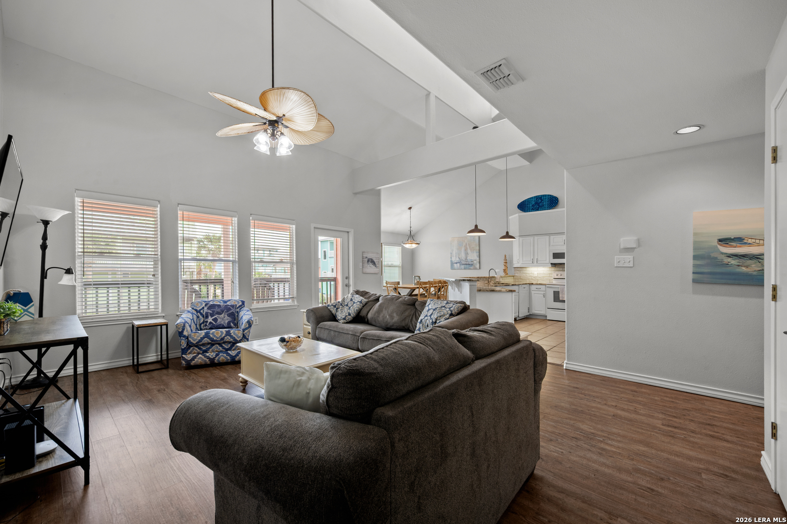 Turnkey Coastal Investment Steps From Beach - Exceptional opportunity to own a spacious, fully furnished townhome just one block from the beach in Port Aransas. Designed for comfort, capacity, and strong rental performance, this impressive 4-bedroom, 3-bath residence offers 2,645 square feet of thoughtfully planned living space ideal for personal enjoyment or income-producing use. The main living level features an open-concept design with a large dining area, abundant counter space, generous cabinetry, walk-in pantry, and seamless flow for entertaining. The primary living spaces feel bright and inviting, while several well-sized walk-in closet enhances storage and everyday functionality. Step onto the covered front porch and enjoy coastal breezes while listening to the soothing crash of ocean waves. The flexible floor plan includes two bedrooms with king beds on the lower level connected by a Jack-and-Jill bath, offering access to a private fenced backyard. Upstairs, two expansive primary suites with king beds each enjoy their own full bath, providing ideal comfort and privacy. A spacious loft serves as a second living/ tv/ game area and additional sleeping space with custom 2 bunk beds featuring full-bed under-twin configurations. Recent updates include fresh interior paint and new countertops. The home is being sold fully furnished for immediate enjoyment or rental readiness. The lower level also features a convenient laundry room closet plus an additional sink, mini fridge, and microwave for added guest convenience. Exterior features are equally impressive with a three-car garage, dedicated golf cart parking, and driveway space for four additional vehicles. With no HOA, proven short-term rental history, and golf cart access to beaches, dining, and shopping, this property delivers the complete coastal lifestyle buyers are searching for. "Come Live Your Beach Life"