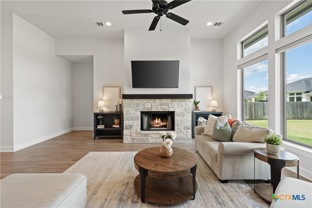 The one you’ve been waiting for! This immaculate 5-bedroom, 3-bath home in the heart of Temple offers soaring ceilings, wood-look tile, and a bright, open-concept great room with a striking limestone fireplace. The floor plan offers tons of flexibility with a bonus room with a walk-in closet perfect for a playroom, office, or guest suite. Storage won't be a problem with 3 hall closets, 4 walk-in closets, and the third car garage. Outside, enjoy a large covered patio with an outdoor fireplace and a massive, pool-ready backyard. Zoned for Belton ISD and minutes from Temple's shopping, dining, and Baylor Scott & White — this home truly gives you the best of both worlds! Set up a time to see it today.