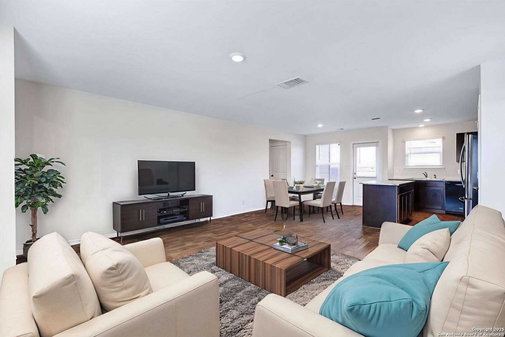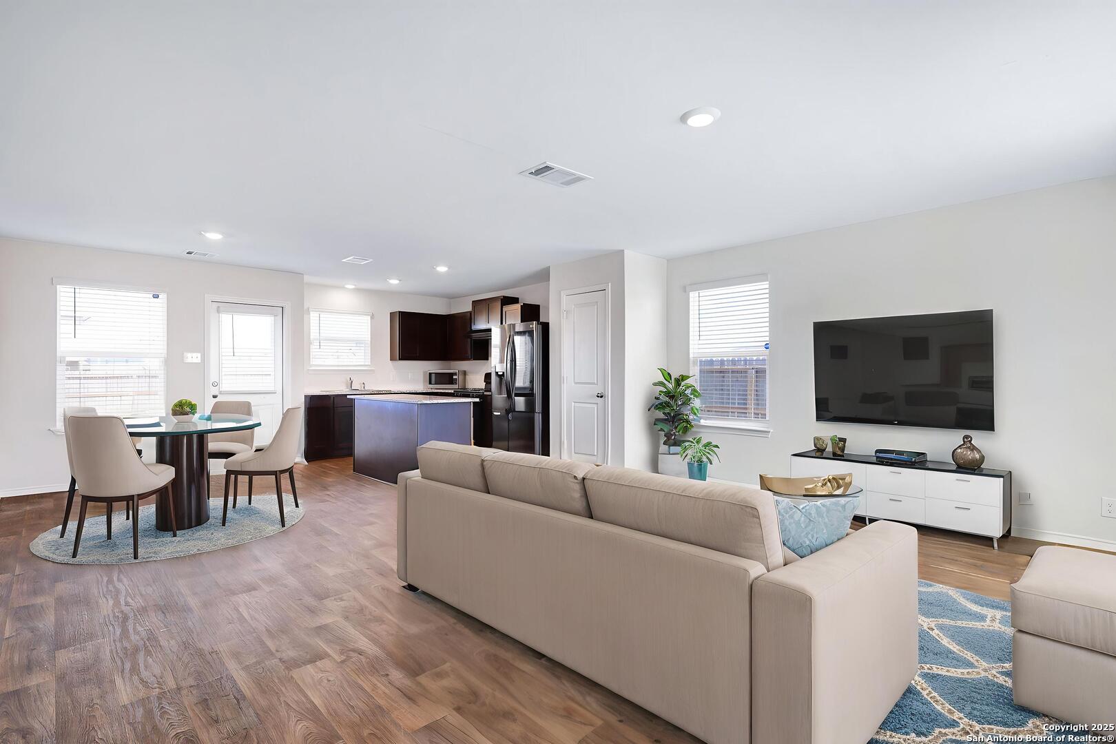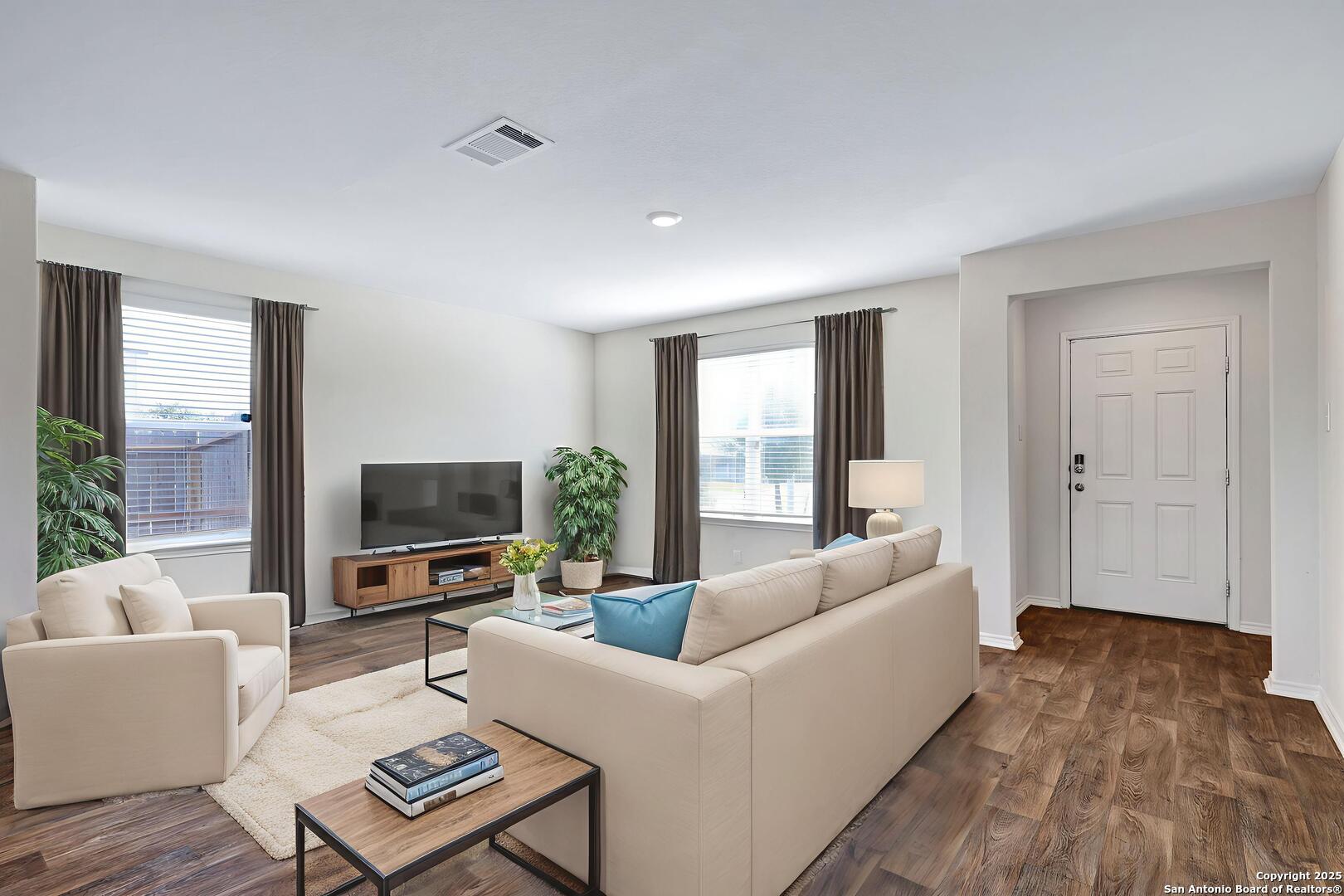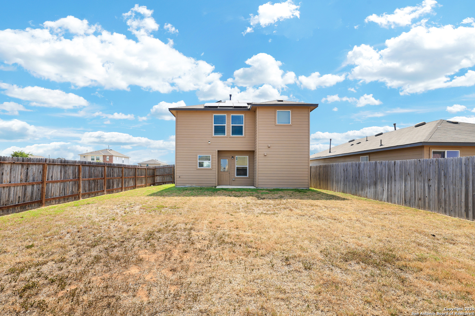 ***MOVE-IN SPECIAL: ONE WEEK FREE***Nestled on a corner lot in the sought-after Whisper Falls community, this two-story home blends style, comfort, and energy efficiency with its modern solar panel system. Step inside to a bright, open-concept living area adorned with sleek vinyl flooring, setting the stage for effortless entertaining. The kitchen is a true highlight, featuring a spacious center island with bar seating and a refrigerator already in place. Upstairs, each of the three bedrooms offers its own walk-in closet, creating a sense of space and organization. Outside, unwind beneath the covered patio or make the most of the generously sized backyard. Whisper Falls residents enjoy exceptional amenities, including a sparkling pool, playground, scenic jogging trails, and more.