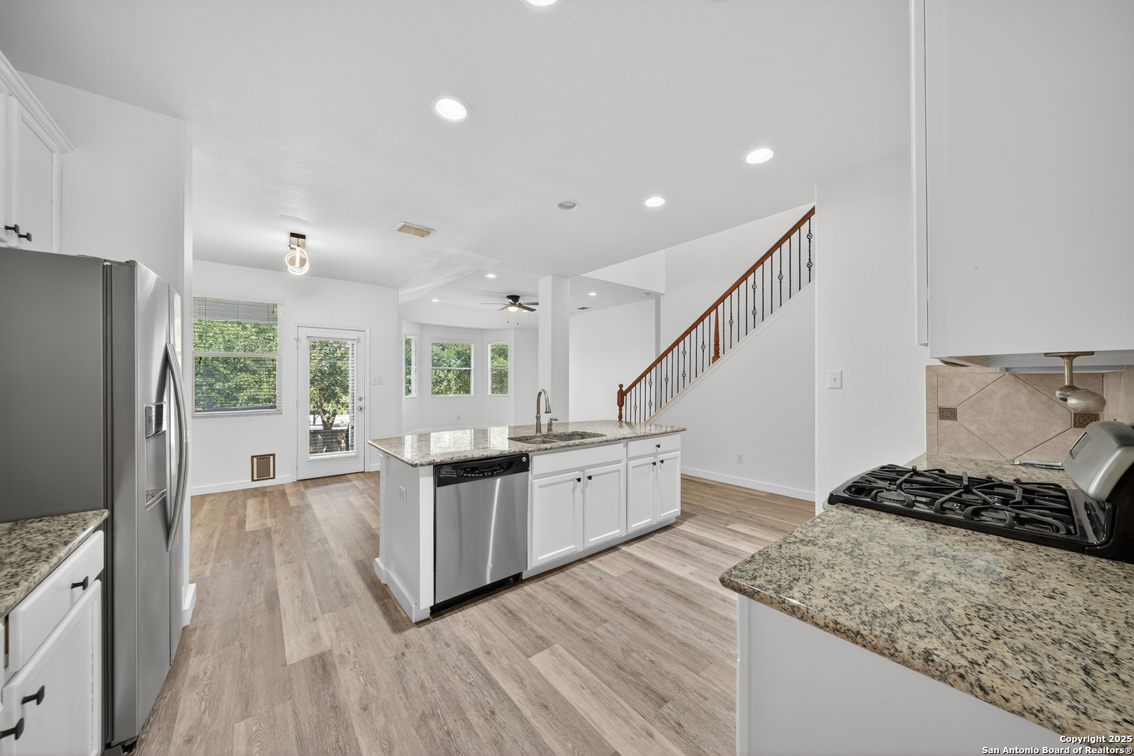 Welcome to 6511 Diego Lane - Move-In Ready in the Heart of Alamo Ranch! Experience comfort, style, and convenience in this beautifully updated 4-bedroom, 2.5-bath home offering 2,524 sq. ft. of thoughtfully designed living space in one of San Antonio's most desirable communities. From the moment you step inside, you'll notice the brand-new Luxury Vinyl Plank and plush carpet flooring, a fresh coat of paint, and an open layout filled with natural light that instantly feels like home. The spacious kitchen features gas cooking and overlooks a bright living area-perfect for family gatherings or entertaining guests. Upstairs, you'll find a very large game room ideal for movie nights, a play area, or a secondary lounge space. The home also includes a dedicated media room pre-wired for surround sound, offering endless possibilities-it can easily serve as a bedroom, office, flex space, or private retreat to fit your lifestyle. Step outside to enjoy the covered patio, perfect for BBQs and relaxing evenings under the Texas sky. With a two-car garage, plenty of storage, and a recently cleaned and serviced HVAC system, this home is truly move-in ready with peace of mind built in. Located in Alamo Ranch, you'll enjoy access to top-notch community amenities-pools, parks, walking trails, and sports courts-along with proximity to major shopping, dining, and top-rated Northside ISD schools. Plus, you're just minutes from major thoroughfares for an easy commute anywhere in the city. Beautifully updated, freshly serviced, and packed with flexible living spaces-this Alamo Ranch gem has it all! Don't miss this neighborhood gem!!